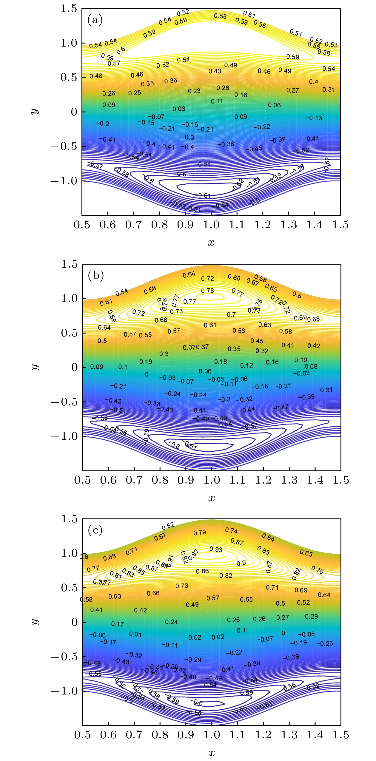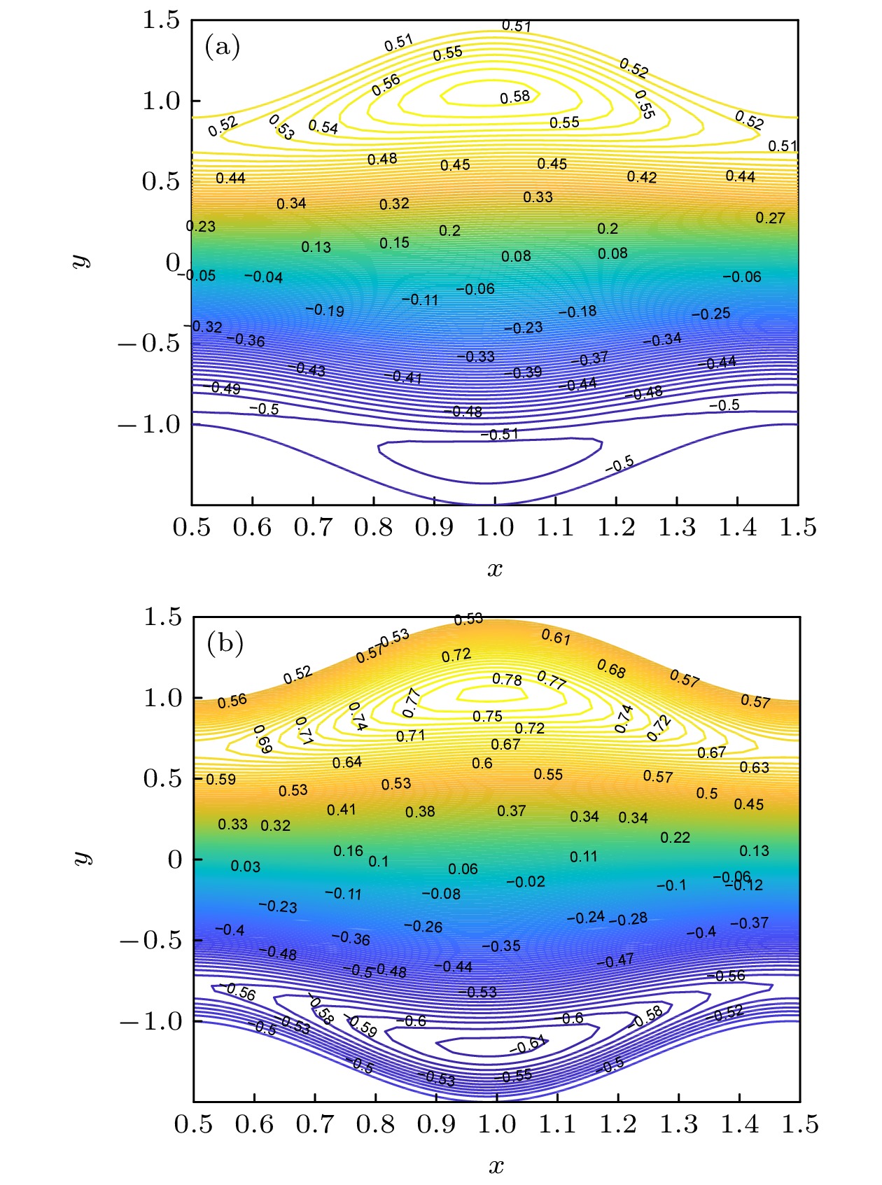 hinders the flow of fluid; 3) these flow behaviors exhibit opposite trends near the channel walls; 4) the number of streamlines captured by peristaltic transport decreases with Hartmann number