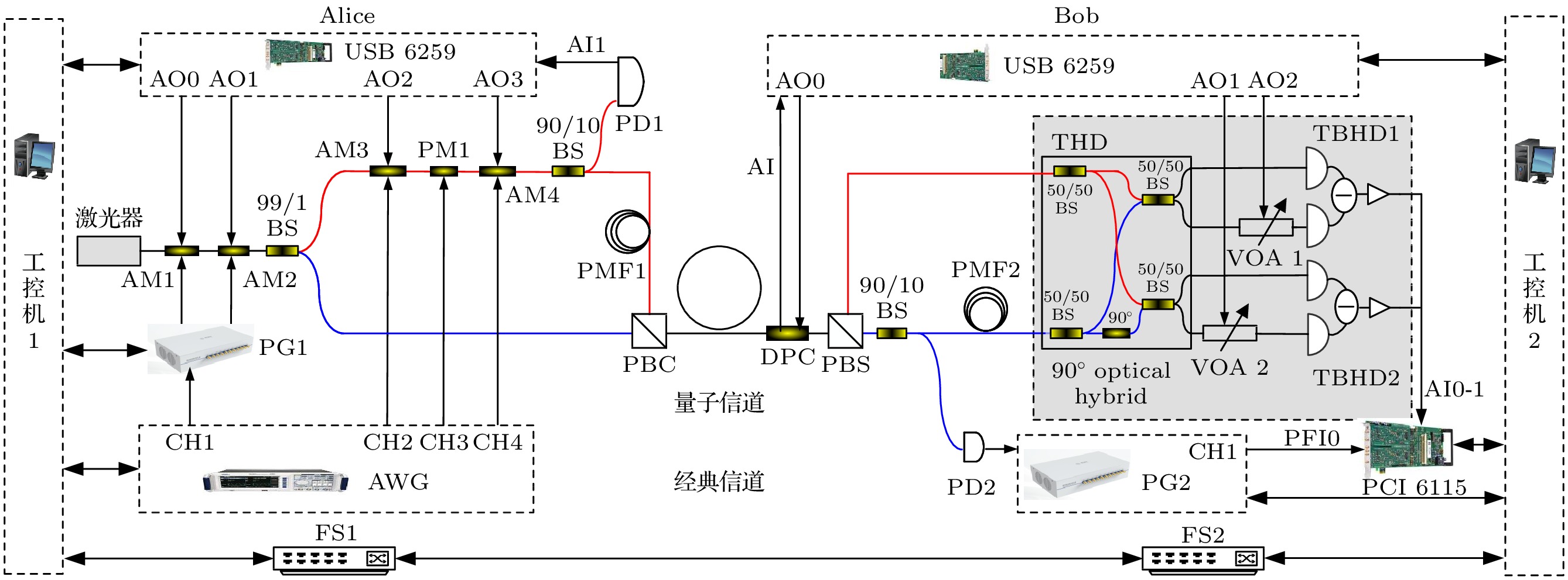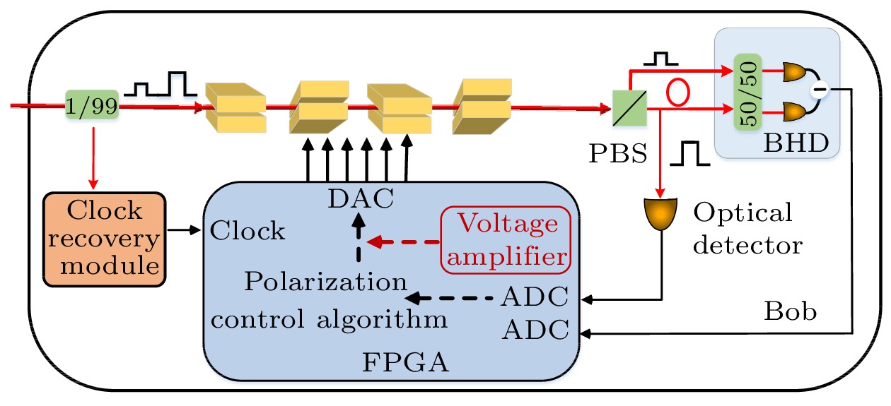 In conclusion, four-state discrete modulation CV-QKD based on hardware synchronization is designed and demonstrated. The proposed hardware synchronization method can effectively reduce the cost, size, and power consumption. In the future, the finite-size effect will be investigated theoretically and experimentally to improve the performance of system.