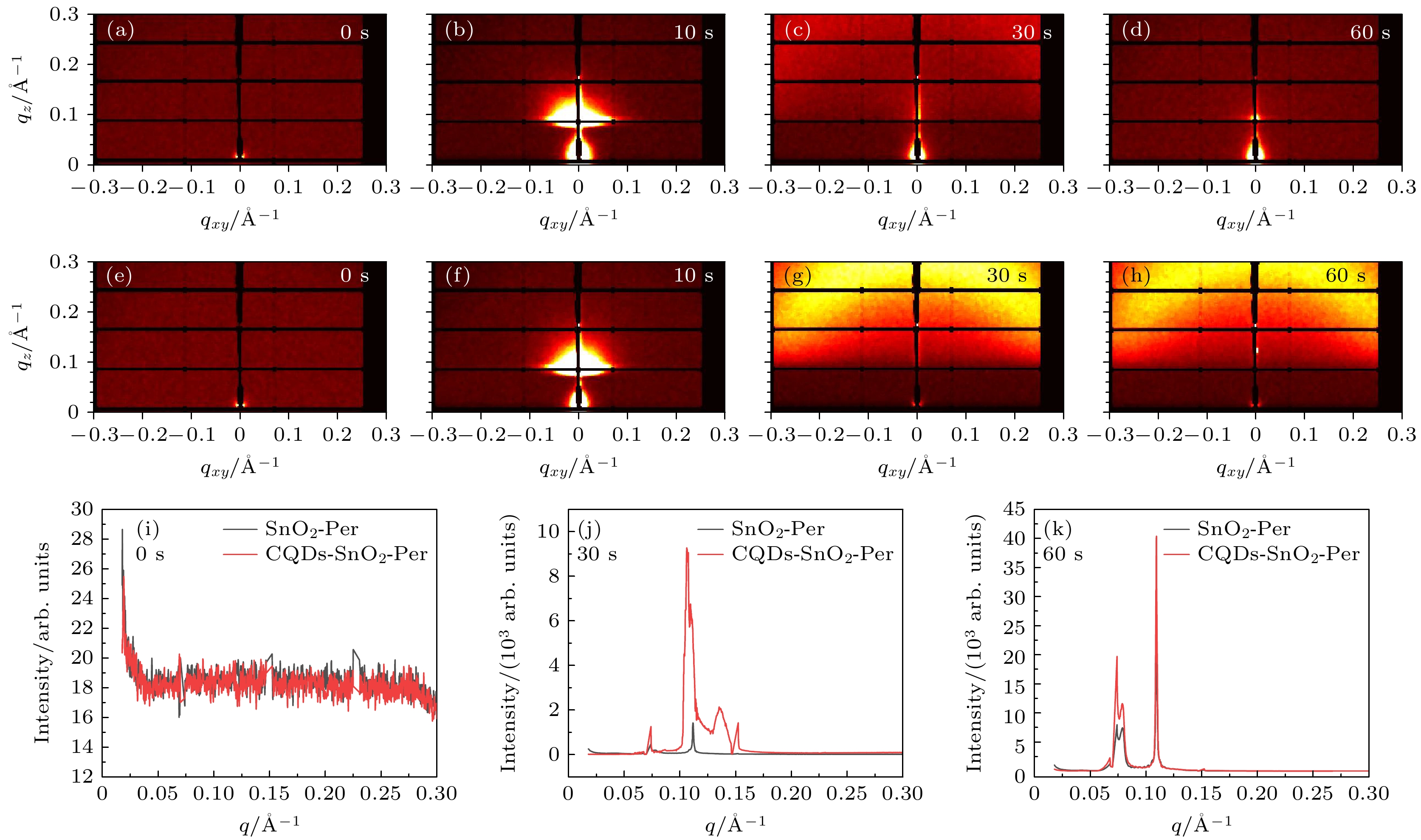 Solution method is an important means of fabricating optoelectronic devices. During the thin film sample preparation, organic or inorganic perovskite semiconductor material usually needs to be finished in a glove box. However, most of the traditional experimental characterizations under the air environment, it is hard to reflect the reality of the structure and performance between film and device, therefore it is urgently needed to solve the microstructure evolutions of these semiconductor films based onin situreal-time representation technique. In this work, we report a synchrotron-based grazing incidence wide and small-angle scattering (GIWAXS and GISAXS)in situreal-time observation technique combined with a mini glove box, thereby realizing the standard glove box environment (H2O, O2content all reached below 1×10–6) under remote control film spin coating or slot-die preparation and various sample post-processing. Meanwhile, this technique can real-time monitor the microstructure and morphology evolution of semiconductor film during fabrication. Based on thein situdevice and GIWAXS, SnO2ETL interface induced perovskite growth crystallization process shows that CQDs additive can result in three-dimensional perovskite, with the random orientation growth changing into highly ordered vertical orientation, meanwhile can effectively restrain the low-dimensional perovskite domain formation, helping to reveal the film microstructure transformation of inner driving force and providing the perovskite device preparation process optimized with experimental and theoretical basis. The conversion efficiency of large-area fully flexible three-dimensional perovskite thin film solar cells prepared by the roll-to-roll total solution slit coating method is increased to 5.23% (the area of a single device is ~15 cm2). Therefore, using thein situsynchrotron-based glove box device, the microstructure evolution and the associated device preparation conditions of perovskite and organic semiconductor thin films can be controlled, and the thin film growth interface characteristics and film quality can be further controlled, which is the key technology to control the optimization process conditions of semiconductor thin films and devices.