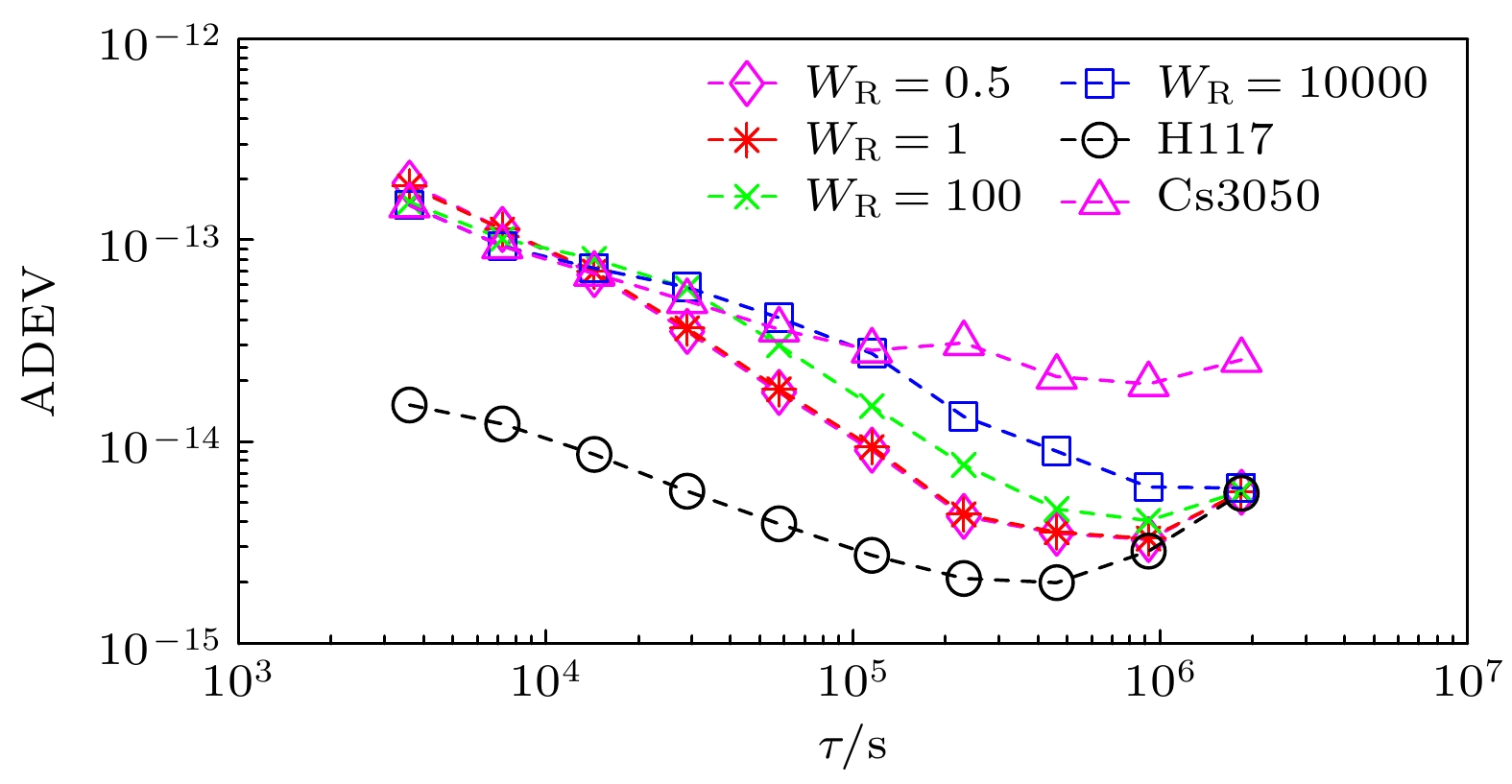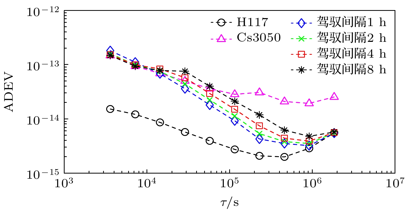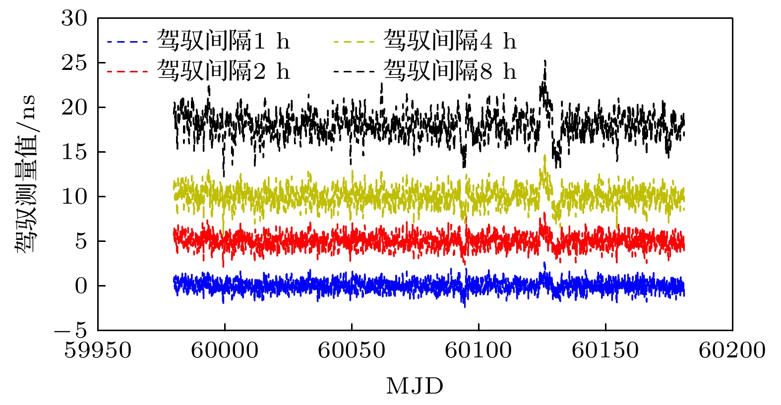 , the synchronization time with control interval of 1 h is 5 h, the control accuracy is 1.83 ns, and the Allan deviation of 1 hour is 1.81×10–13. When the control interval is 8 h, the synchronization time is 28 h, the control accuracy is 4.48 ns, and the Allan deviation of 1 h is 1.48×10–13. The medium-term stability and long-term stability of domestic optically pumped small cesium clock are both improved.