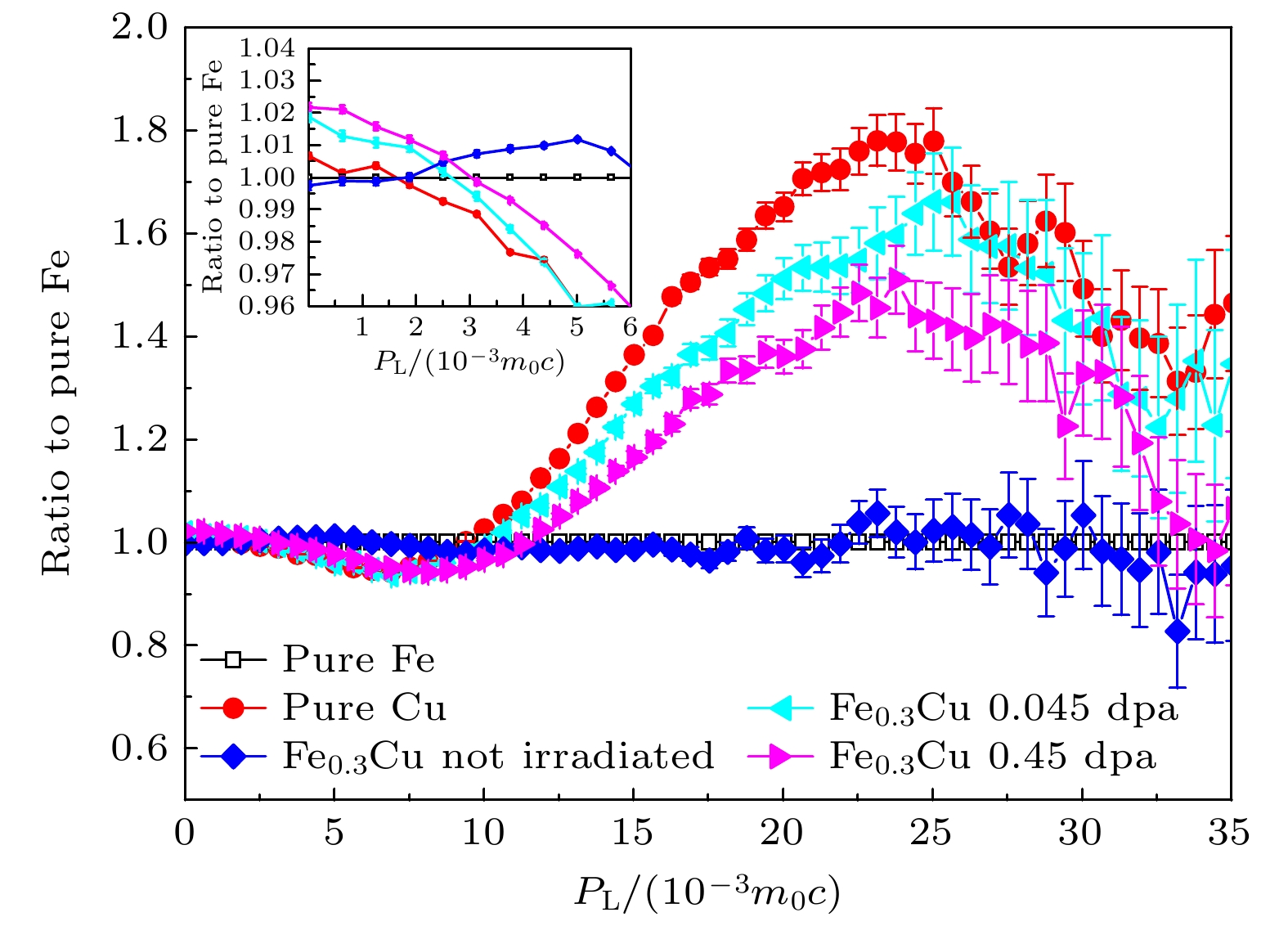 Positron annihilation technique is an atomic-scale characterization method used to analyze the defects and microstructure of materials, which is extremely sensitive to open volume defects. By examining the annihilation behaviour of positrons and electrons in open volume defects, local electron density and atomic structure information around the annihilation site can be obtained, such as the size and concentration of vacancies, and vacancy clusters. In recent years, positron annihilation spectroscopy has evolved into a superior tool for characterizing features of material compared with conventional methods. The coincident Doppler broadening technique provides unique advantages for examining the local electronic structure and chemical environment (elemental composition) information about defects due to its effectiveness describing high momentum electronic information. The low momentum portion of the quotient spectrum indicates the Doppler shift generated by the annihilation of valence electrons near the vacancy defect. Changes in the peak amplitudes and positions of the characteristic peaks in the high momentum region can reveal elemental information about the positron annihilation point. The physical mechanism of element segregation, the structural features of open volume defects and the interaction between interstitial atoms and vacancy defects are well investigated by using the coincidence Doppler broadening technology. In recent years, based on the development of Doppler broadening technology, the sensitivity of slow positron beam coincidence Doppler broadening technology with adjustable energy has been significantly enhanced at a certain depth. It is notable that slow positron beam techniques can offer surface, defect, and interface microstructural information as a function of material depth. It compensates for the fact that the traditional coincidence Doppler broadening technique can only determine the overall defect information. Positron annihilation technology has been applied to the fields of second phase evolution in irradiated materials, hydrogen/helium effect, and free volume in thin films, as a result of the continuous development of slow positron beam and the improvement of various experimental test methods based on slow positron beam. In this paper, the basic principles of the coincidence Doppler broadening technique are briefly discussed, and the application research progress of the coincidence Doppler broadening technique in various materials is reviewed by combining the reported developments: 1) the evolution behaviour of nanoscale precipitation in alloys; 2) the interaction between lattice vacancies and impurity atoms in semiconductors; 3) the changes of oxygen vacancy and metal cation concentration in oxide material. In addition, coincident Doppler broadening technology has been steadily used to estimate and quantify the sizes, quantities, and distributions of free volume holes in polymers.