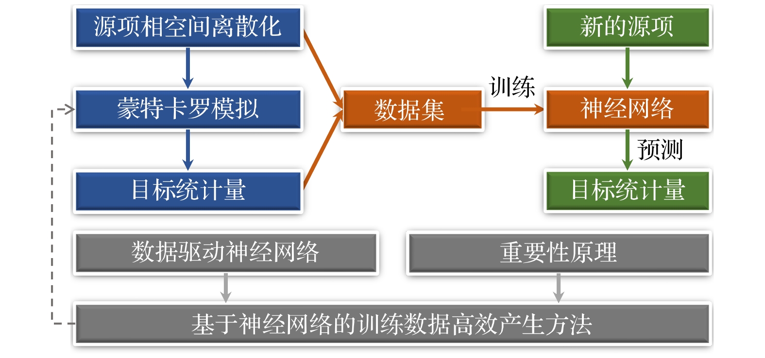 Monte Carlo (MC) method is a powerful tool for solving particle transport problems. However, it is extremely time-consuming to obtain results that meet the specified statistical error requirements, especially for large-scale refined models. This paper focuses on improving the computational efficiency of neutron transport simulations. Specifically, this study presents a novel method of efficiently calculating neutron fixed source problems, which has many applications. This type of particle transport problem aims at obtaining a fixed target tally corresponding to different source distributions for fixed geometry and material. First, an efficient simulation is achieved by treating the source distribution as the input to a neural network, with the estimated target tally as the output. This neural network is trained with data from MC simulations of diverse source distributions, ensuring its reusability. Second, since the data acquisition is time consuming, the importance principle of MC method is utilized to efficiently generate training data. This method has been tested on several benchmark models. The relative errors resulting from neural networks are less than 5% and the times needed to obtain these results are negligible compared with those for original Monte Carlo simulations. In conclusion, in this work we propose a method to train neural networks, with MC simulation results containing importance data and we also use this network to accelerate the computation of neutron fixed source problems.