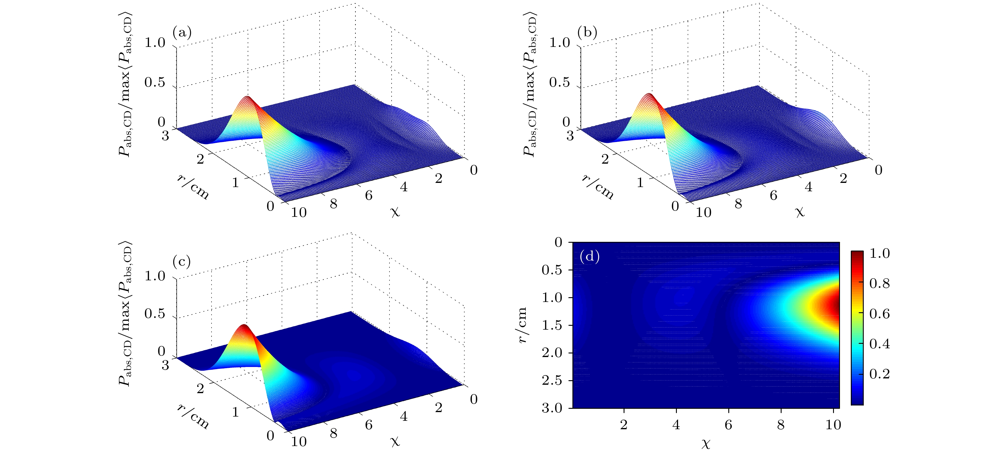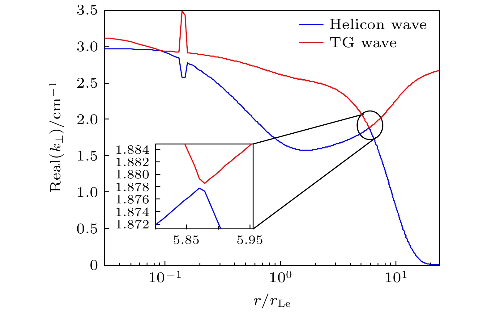 harmonics in the calculation of plasma dielectric tensor elements can be ignored due to low magnetic field conditions. For the propagation constant, detailed investigation indicates that the phase constant has a maximum value at a certain radial position, near the same position mode coupling between helicon wave and TG wave happens. Full analysis shows that the power deposition of them= 1 helicon mode peaks at a certain radial position and increases gradually with the increase of the axial electron temperature. Besides, compared with the Landau damping, the collisional damping plays a dominant role in the power deposition under current parameter conditions; importantly, the electron temperature anisotropy exerts a significant influence on the power deposition characteristic, both the increase and decrease of electron temperature anisotropy factor (χ=Te,⊥/Te,z) can lead the power deposition intensity to change drastically. All these conclusions are very important for us to understand the discharge mechanism of helicon plasma.