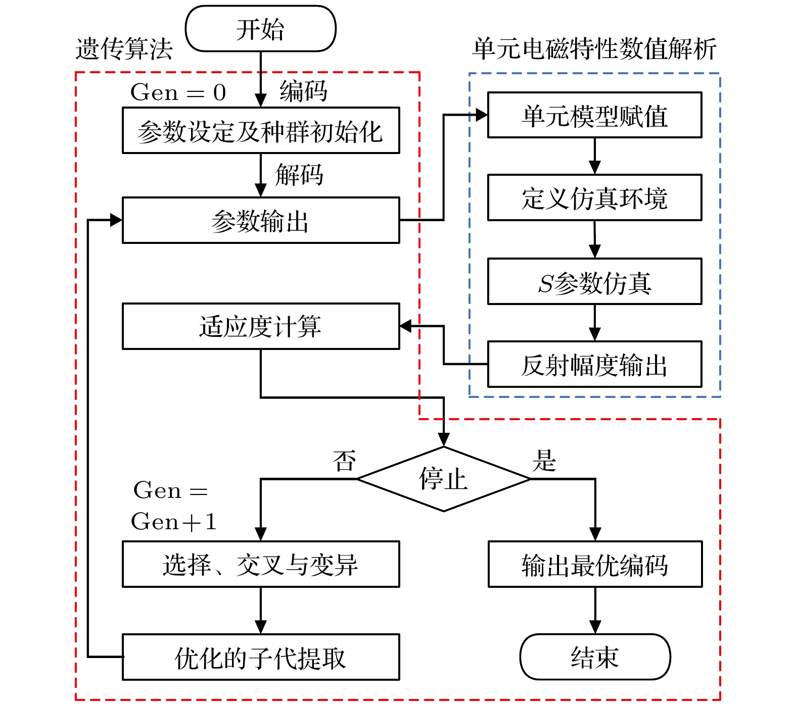 . To begin with, we introduce the structural design of the initial element, and based on this, the transmission line theory and impedance matching principle are used to analyze the strong wave absorption conditions of the absorber element. In terms of the element structure optimization, the genetic algorithm is adopted to globally search for the optimal solution in the multi-variable domain, resulting in the rapid determination of metamaterial elements’ configurations and resistance parameters that meet the design goals. In the simulation, the wave absorption performance and mechanism of the designed absorbing element are also investigated in an in-depth manner. Simulation results show that the designed metamaterial absorber can achieve more than 90% EM wave absorption in a frequency range of 1.62–19.16 GHz (with a relative bandwidth of 168.8%) under normal incidence of linearly polarized plane waves, which effectively expands the absorption bandwidth to the L band and K band. In addition, the simulations for oblique incidence at different polarizations provide strong evidence for the device’s insensitivity to both polarization and angle. The radar cross section (RCS) curves obtained by the time domain (TD) simulation illustrate that the novel structure can achieve more than 10 dB RCS reduction in a frequency range of 1.7–20 GHz. In the device's performance verification process, a metamaterial absorber with 20 × 20 elements and dimensions of 1.566
