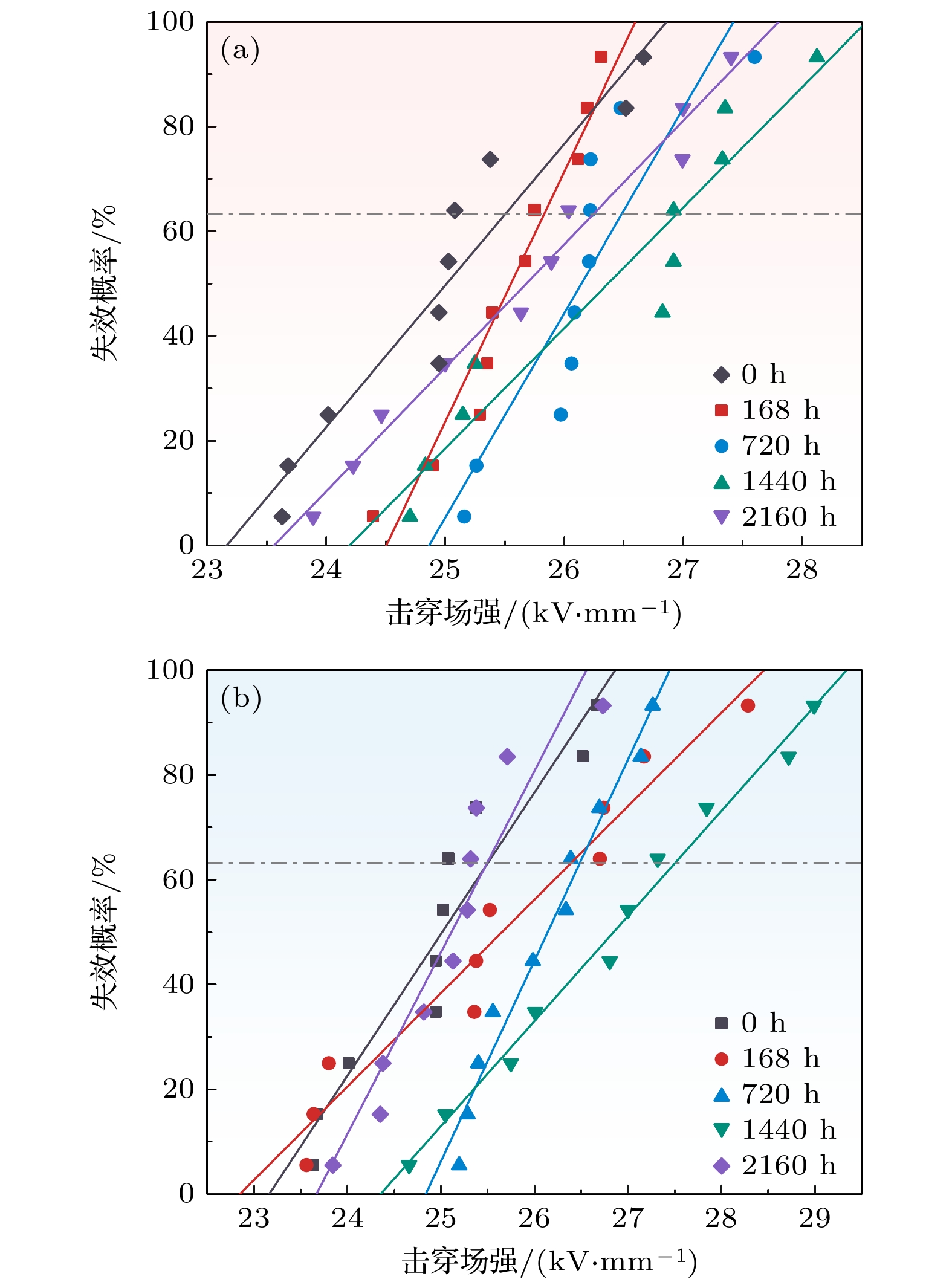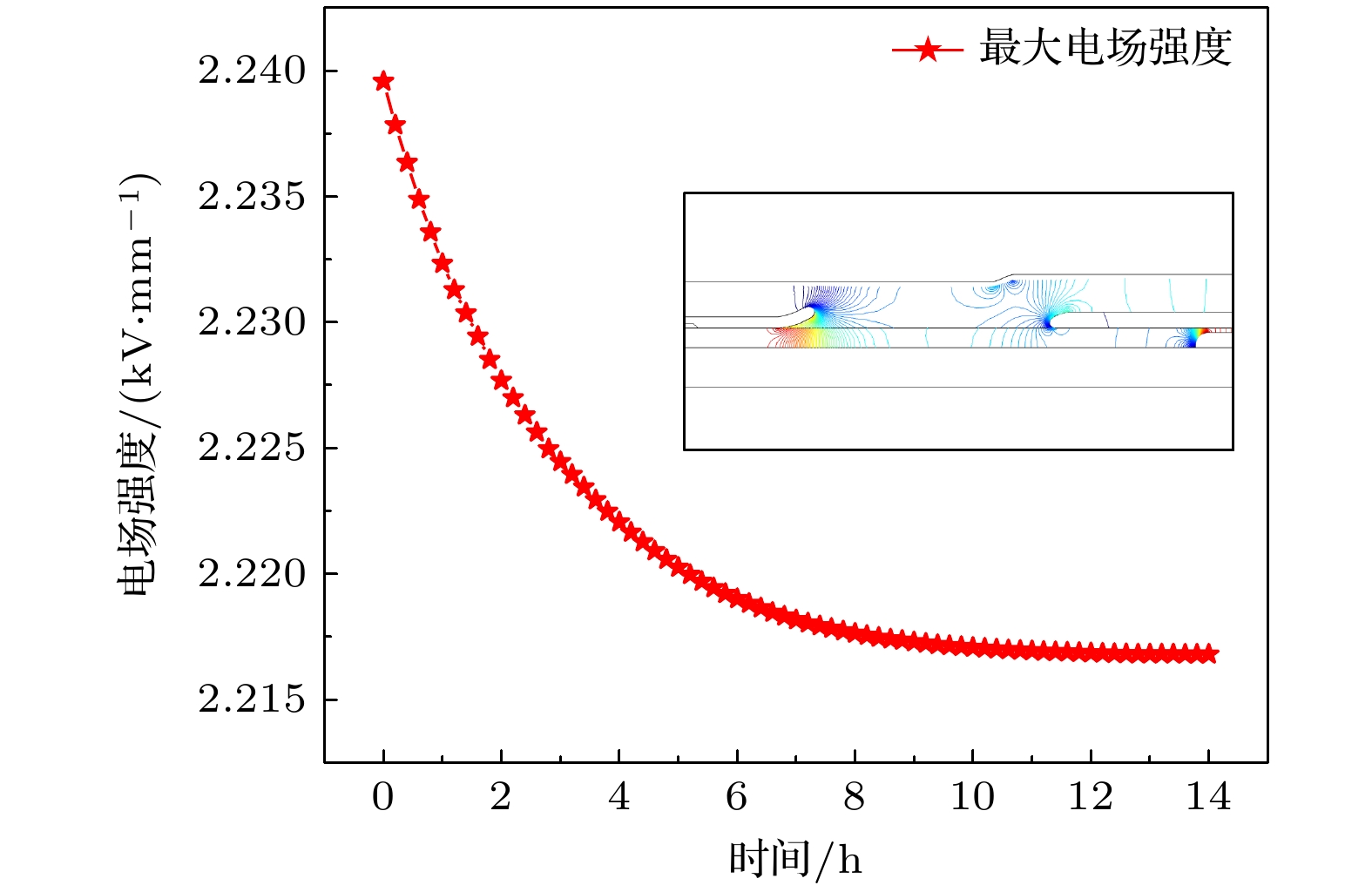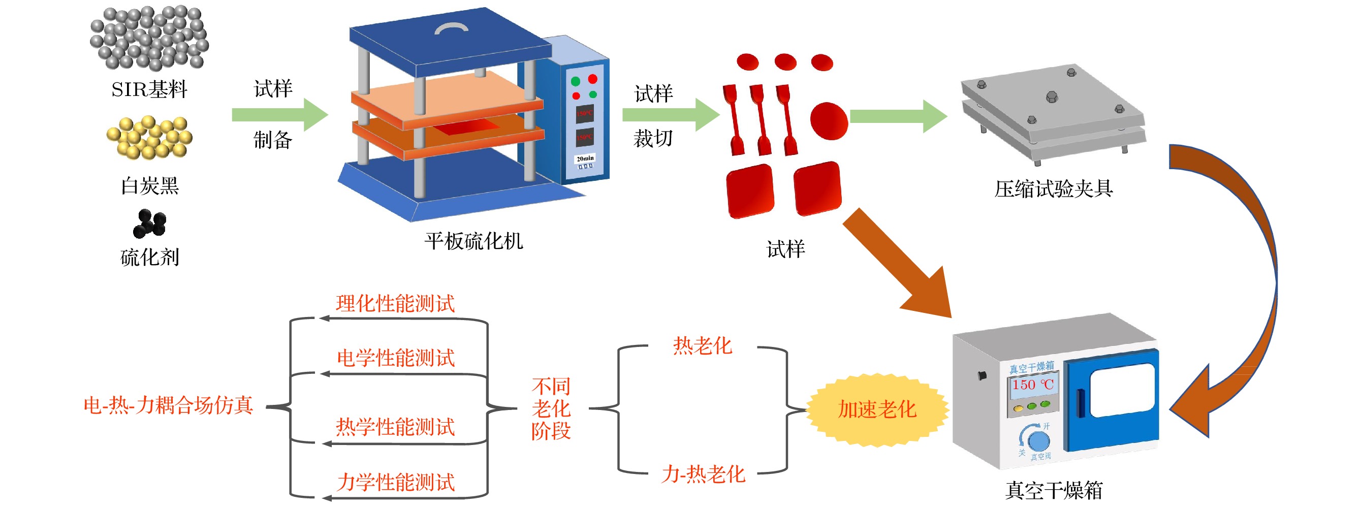 During the long-term operation of a cable, the electrical field, high temperature, and interface stress may age or deteriorate the silicon rubber (SIR) insulation of the cable accessories, affecting the combined electrical-thermal-force performance of the accessories, and easily causing discharge faults. In this work, the electrical-thermal-force properties of silicone rubber for cable accessories under thermal aging and combined force-thermal aging are studied experimentally and numerically. The changes and mechanisms of physical and chemical properties, electrical properties, thermal properties and mechanical properties of silicone rubber are tested and compared before and after aging. The changes of electric, thermal and force field of cable accessories, caused by the change of SIR material parameters under different aging time and aging form, are further simulated. The experimental results show that the crosslinking degree and molecular motion system of SIR will change with the deepening of the aging degree, which will change the electrical-thermal-force properties of the material to different degree. After aging, large agglomeration protrudes and small cavities appear in SIR section, and the damage is more serious under force-thermal aging. The relative dielectric constant first decreases and then increases with the aging time increasing. The volume resistivity, breakdown strength and flashover voltage all first increase and then decrease. The thermal conductivity first increases and then decreases with aging time increasing. In addition, with the increase of aging time, the tensile strength and elongation at break decrease gradually. Considering the change of properties after aging, the destruction of SIR material by force-thermal aging is more serious. The simulation results show that under the two aging modes, the maximum electric field strength at the stress cone root of the cable accessories first increases and then decreases with the increase of time. The electric field strength at the stress cone root of the cable accessories, caused by the force-thermal aging, changes little, maintaining about 2.2 kV/mm. The difference in temperature between the inside and the outside of the insulation layer is obvious under different aging degree, and the temperature difference shows a first decreasing and then increasing trend under both aging modes, and the maximum temperature gradient is 9.15 ℃. The interface stress at the stress cone root decreases from 0.263 to 0.230 MPa, which is about 12.5% lower. This work has guiding significance in evaluating the insulation performance and analyzing the fault of distribution cable accessories.