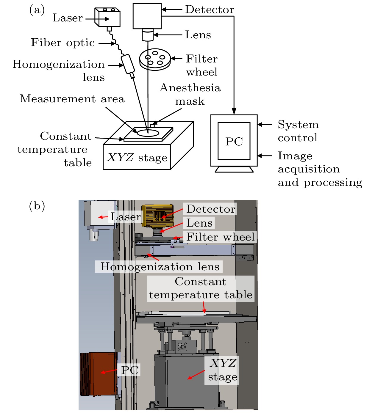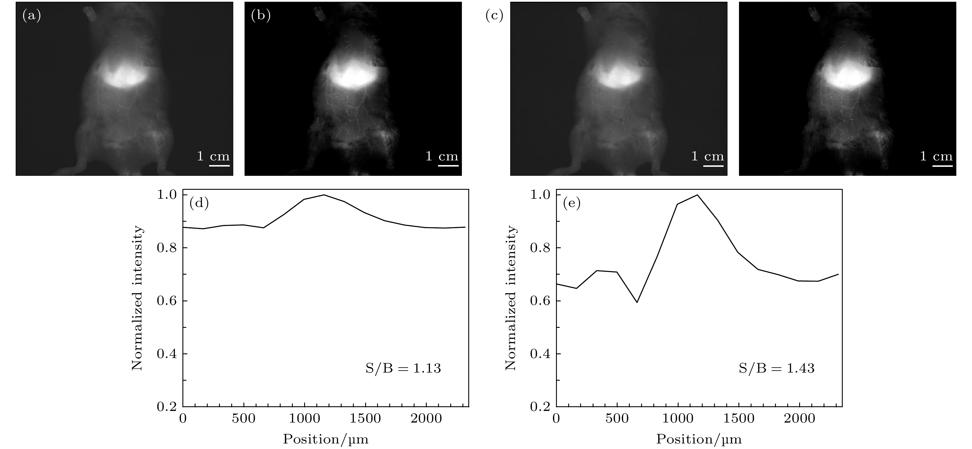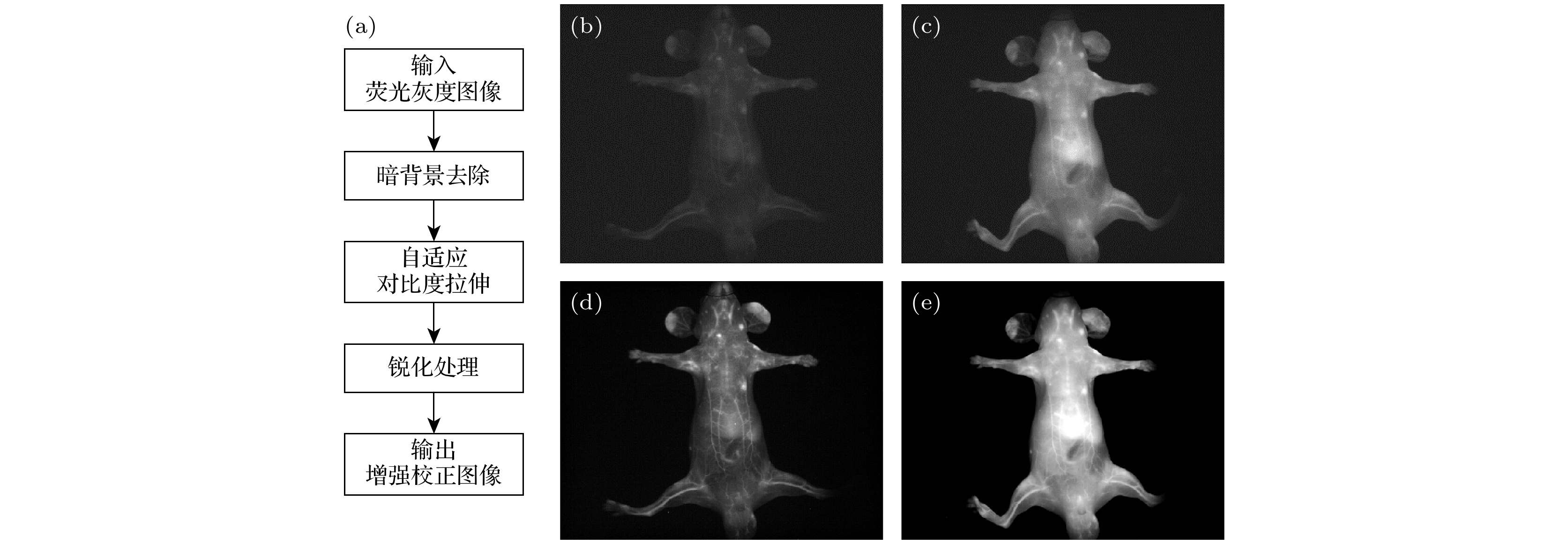 Fluorescence imaging technology can dynamically monitor gene and cell changing in live animals in real-time, with advantages such as high sensitivity, high resolution, and non-invasion. In recent years, it has been widely used in tumor research, gene expression research, drug development research, etc. The imaging wavelength of traditional fluorescence imaging technology falls in the visible and near-infrared-I region. Due to the absorption and scattering effects of light propagation in biological tissues, and the inherent fluorescence of biological tissues, traditional fluorescence imaging techniques still have significant limitations in penetration depth and image signal-to-noise ratio. In this work, a highly integrated near-infrared-II (NIR-II, 900—1880 nm) small animal living fluorescence imaging system is developed by taking the advantages of NIR-II fluorescence imaging technology, such as low absorption, low scattering, and deep penetration depth in biological tissues. And a method of enhancing and correcting fluorescence image is proposed to optimize fluorescence images. In this work, the biological tissue simulation experiments and live animal experiments are conducted to test the performance and imaging effect of the system. The experimental results show that the system has the advantages of deep penetration depth, high signal-to-noise ratio, and high sensitivity. Combined with commercial indocyanine green reagents and aggregation-induced emission dyes, this system can monitor the distribution of blood vessels in real time and continuously monitor deep tissues and organs in mice, and conduct the dynamically monitoring research in living mice in a conscious state. This helps to promote tumor research and drug development research in the field of biomedical imaging to enter a new stage.