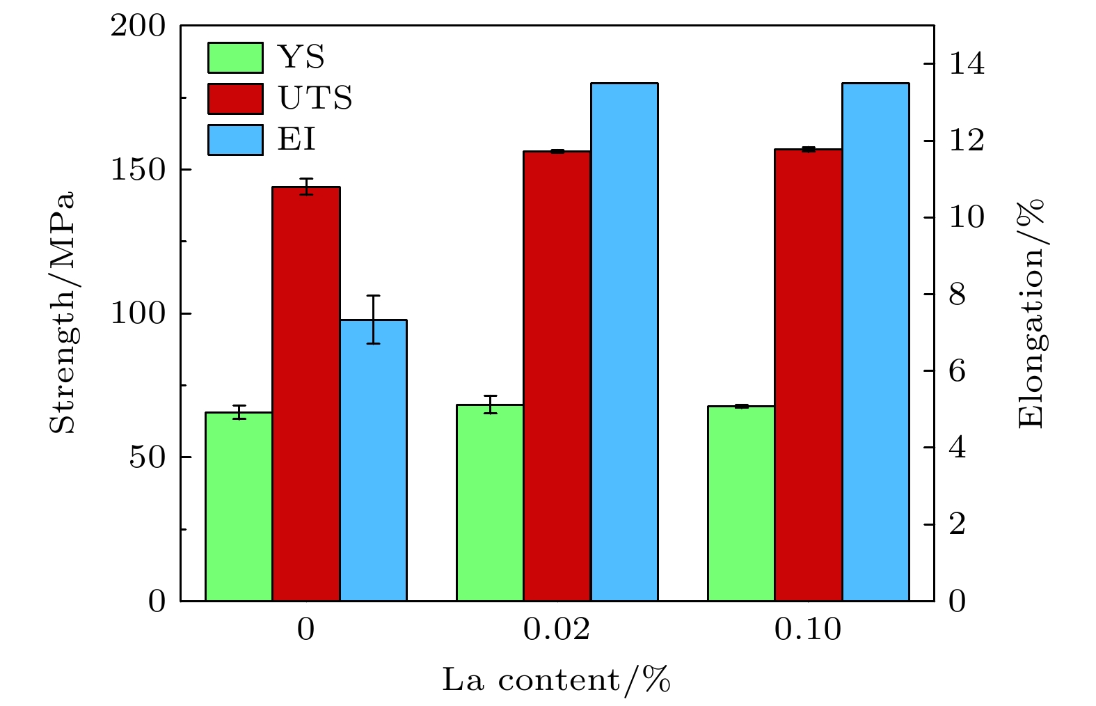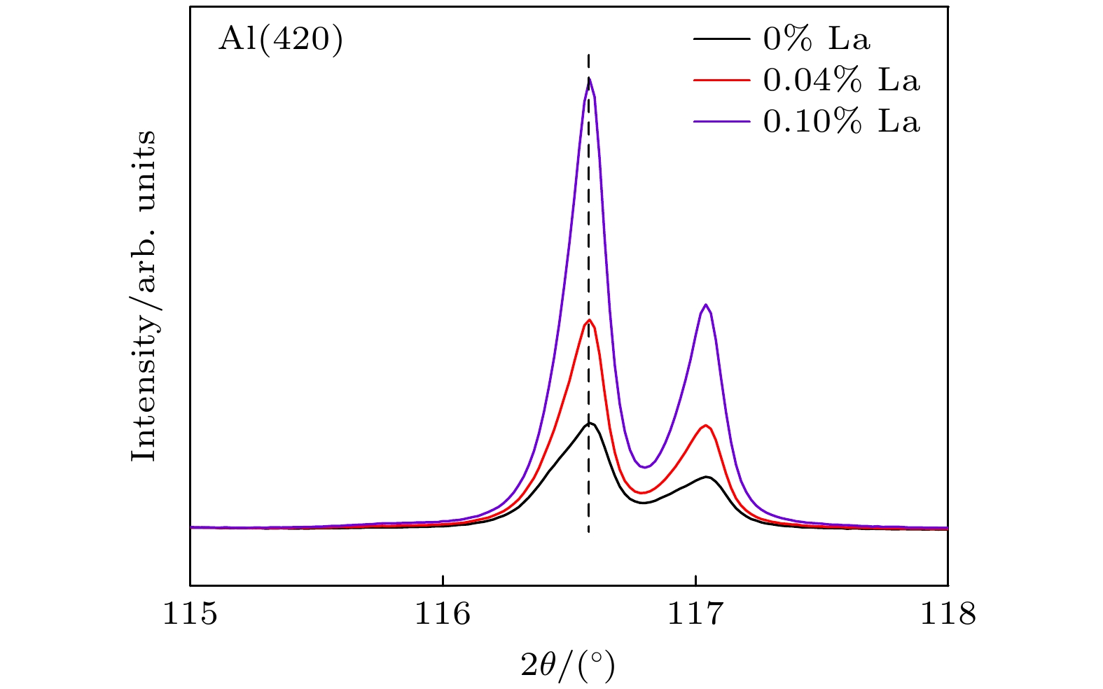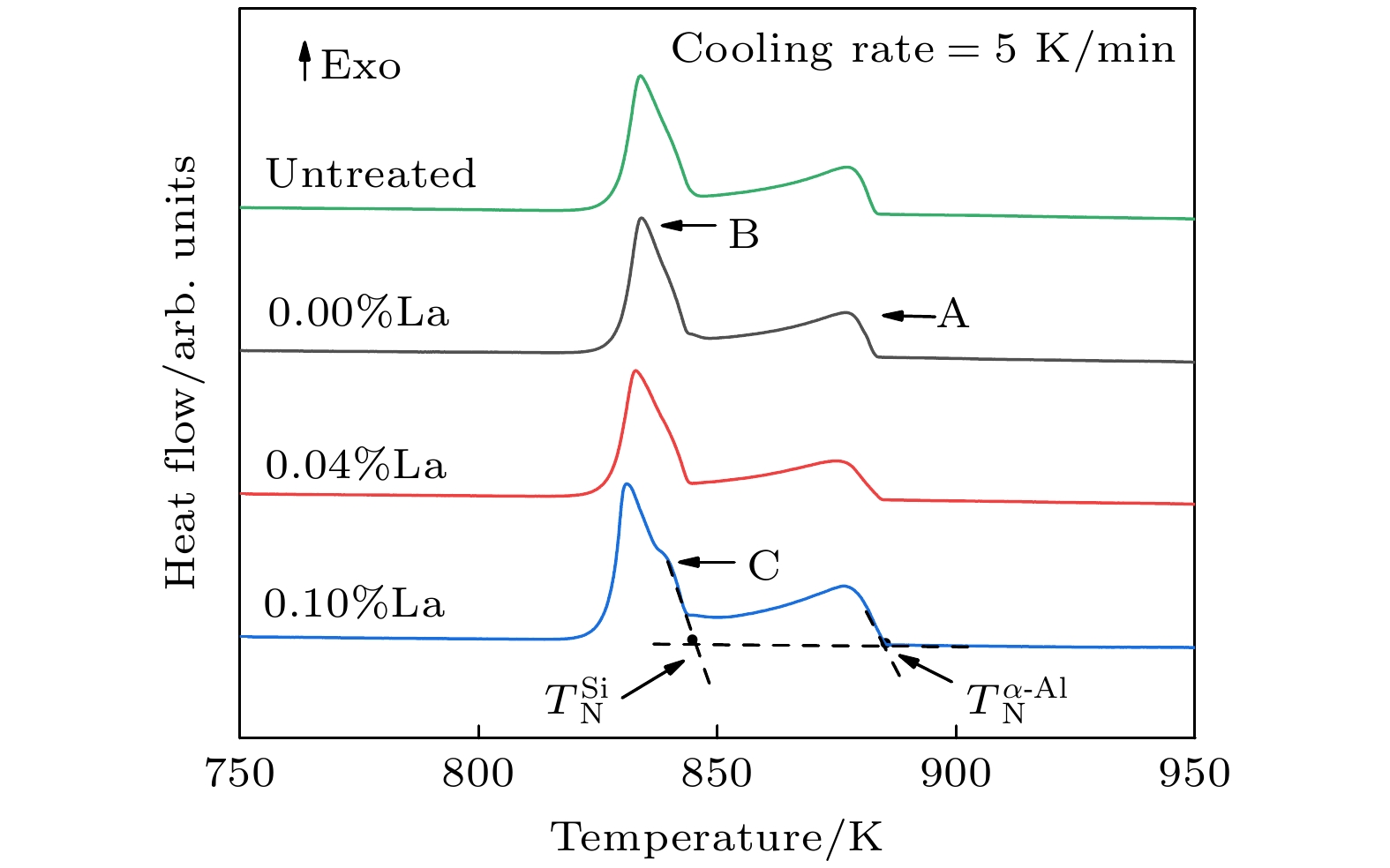 α-Al grains. The thermal conductivity of the alloy is significantly improved when the addition of La ranges from 0.02% to 0.06%; with the further increase of La addition, LaAlSi intermetallic compounds are formed in the alloy, leading the thermal conductivity of the alloy to decrease.