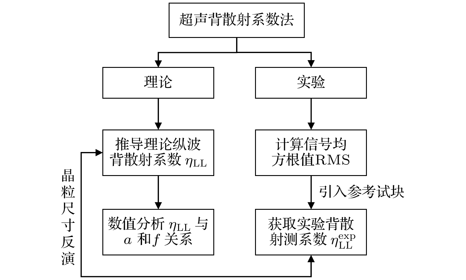 The independent scattering model is employed to derive the backscattering coefficient, which solely pertains to the material itself. The relationship between grain size and backscattering coefficient is described by using a spatial correlation function. To consider the irrelevant factors, an experimental measurement method is developed by using the reference signals. Through numerical calculation and analysis, it has been observed that the backscattering coefficient is closely related to the frequency. When the product of the wavenumber and the grain size is significantly greater than 1 (