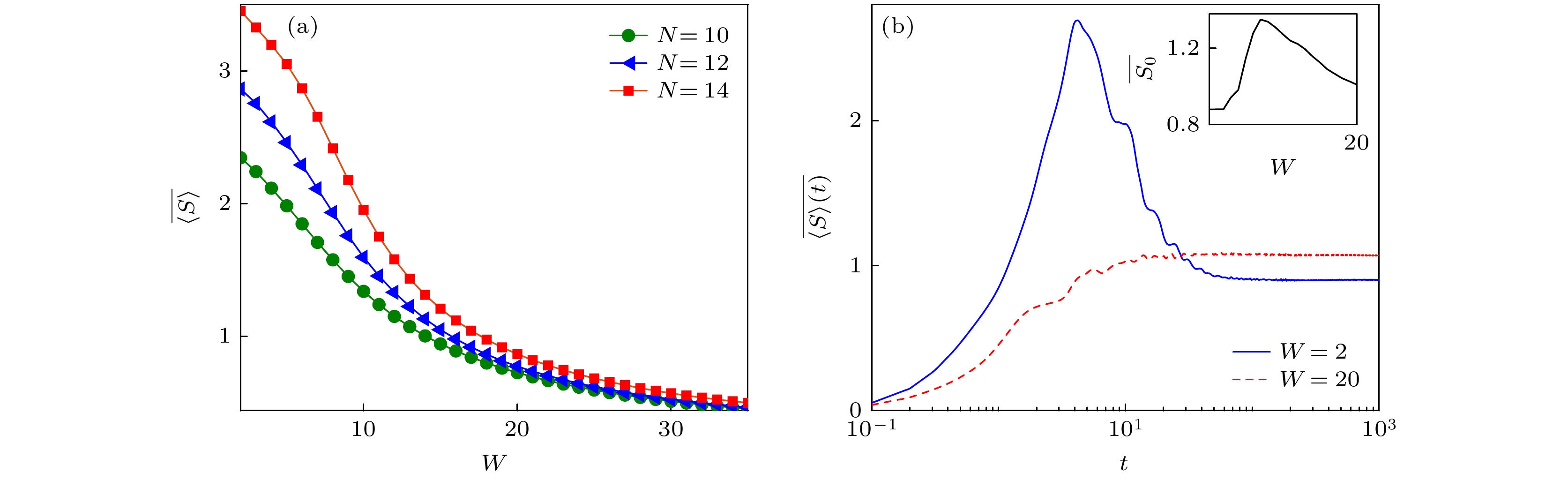 Lin the deep non-Hermitian MBL phase, adhering to an area law. These results indicate that the ergodic phase and non-Hermitian MBL phase can be distinguished by the half-chain entanglement entropy, even in non-Hermitian system, which is similar to the scenario in Hermitian system. Finally, for a short time, the dynamic evolution of the entanglement entropy exhibits linear growth with the weak disorder. In strong disorder case, the short-time evolution of