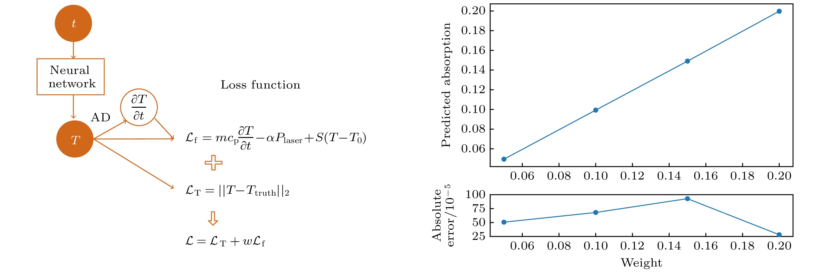 Characterizing the absorptivity of a rough metal surface is a difficult but important task. The uncertainty will be enlarged by using the indirect method, i.e. 1 – reflectance measurement. In contrast, the calorimetric method is of high fidelity. However, it is difficult to extract the absorptivity. The variation of temperature follows the heat conduction equation which is a differential equation. Therefore, a method based on physics-informed neural networks (PINNs) is proposed. In this method, the temperature rising curve is fitted to the differential equation by the neural network. The differential equation is incorporated into the network through the loss function. When the training is done, the absorptivity can be extracted. For demonstration, the numerical test and experimental test are performed. A set of temperature profiles with different absorptivity values is generated numerically. Then the absorptivity is extracted by PINN. The numerical results show that this method is able to determine the absorptivity and possesses the advantages of strong anti-interference capability and high accuracy. The maximum absolute error is 0.00092 in the range of 0.05 to 0.2. In the experiment, sand-blasted gold coated aluminum plates are used as the test objects, and they are heated by a continuous wave infrared laser. The temperature is measured by a K thermocouple. Then the absorptivity values of different samples are determined by the PINN, ranging from 2% to 10% because of the differences in roughness and electroplating process. The measurement repeatability is < 1%. The proposed method is very promising to become a powerful tool for measuring the absorptivity of rough metal surface.