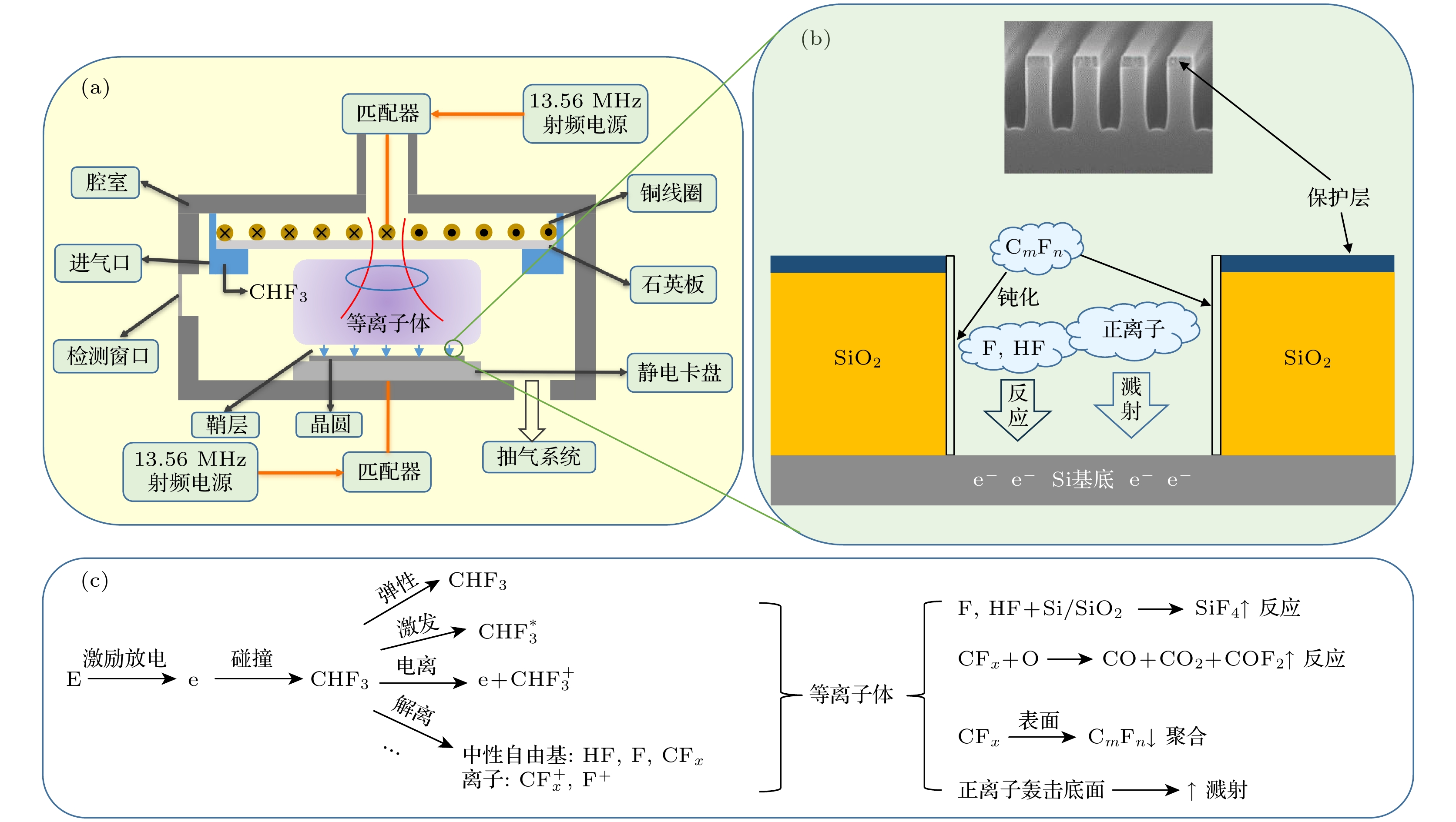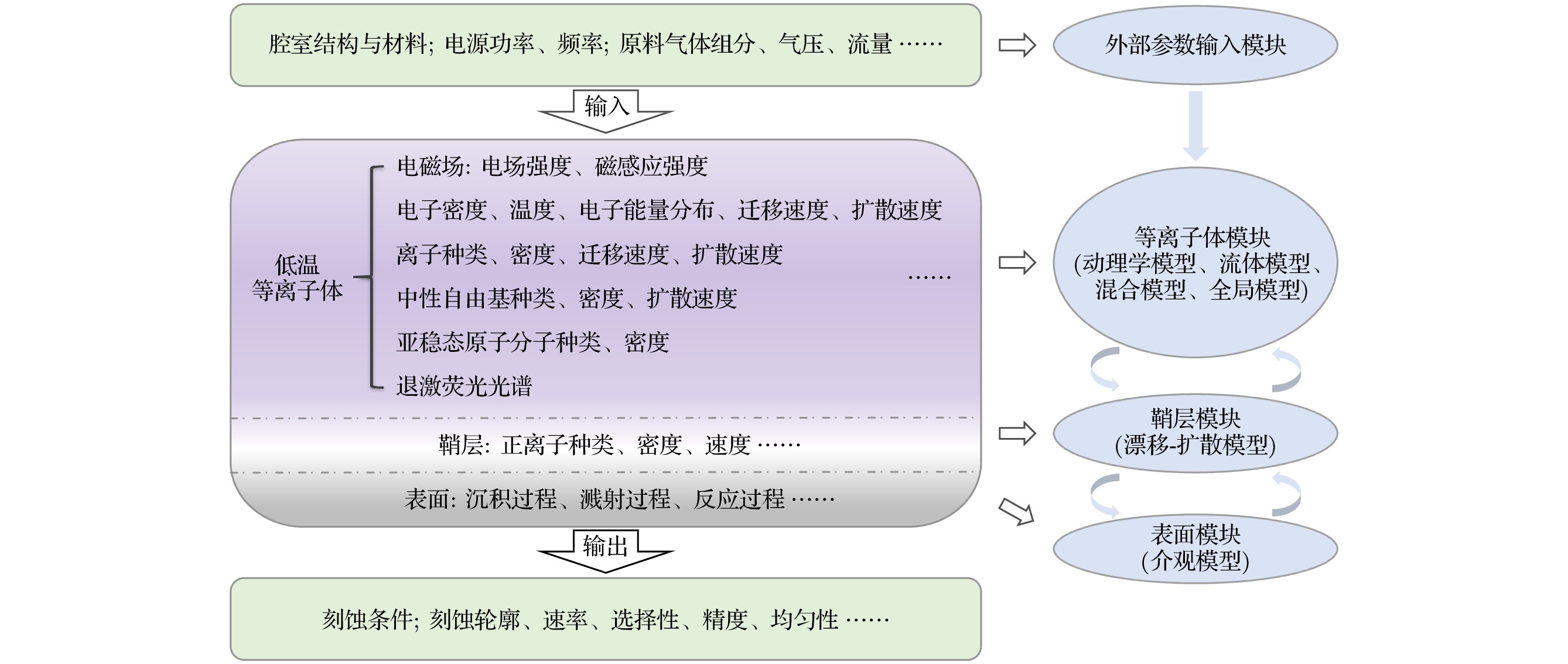 Semiconductor chips are the cornerstone of the information age, which play a vital role in the rapid development of emerging technologies such as big data, machine learning, and artificial intelligence. Driven by the growing demand for computing power, the chip manufacturing industry has been committed to pursuing higher level of integration and smaller device volumes. As a critical step in the chip manufacturing processes, the etching process therefore faces great challenges. Dry etching (or plasma etching) process based on the low-temperature plasma science and technology is the preferred solution for etching the high-precision circuit pattern. In the low-temperature plasma, electrons obtain energy from the external electromagnetic field and transfer the energy to other particles through collision process. After a series of complex physical and chemical reactions, a large number of active particles such as electrons, ions, atoms and molecules in excited states, and radicals are finally generated, providing the material conditions for etching the substrate. Dry etching chamber is a nonlinear system with multiple space-time dimensions, multiple reaction levels and high complexity. Facing such a complex system, only by fully understanding the basic physical and chemical reaction of the etching process can we optimize the process parameters and improve the etching conditions, so as to achieve precision machining of the semiconductor and meet the growing demand of the chip industry for etching rate and yield. In the early days, the process conditions of dry etching were determined through the trial-and-error method, which is characterized by high cost and low yield. However, with the help of plasma simulation, nowadays people have been able to narrow the scope of experiment to a large extent, and find out efficiently the optimal process conditions in a large number of parameters. In this review, we first introduce the basic theory of the mostly used models for plasma simulation including kinetic, fluid dynamic, hybrid and global models, in which the electron collision cross sections are the key input parameters. Since the formation of the low-temperature plasma is driven by the electron-heavy particle collision processes, and the active species for plasma etching are generated in the reactions induced by electron impact, the accuracy and completeness of the cross-section data greatly affect the reliability of the simulation results. Then, the theoretical and experimental methods of obtaining the cross-section data of etching gases are summarized. Finally, the research status of the electron collision cross sections of etching atoms and molecules is summarized, and the future research prospect is discussed.