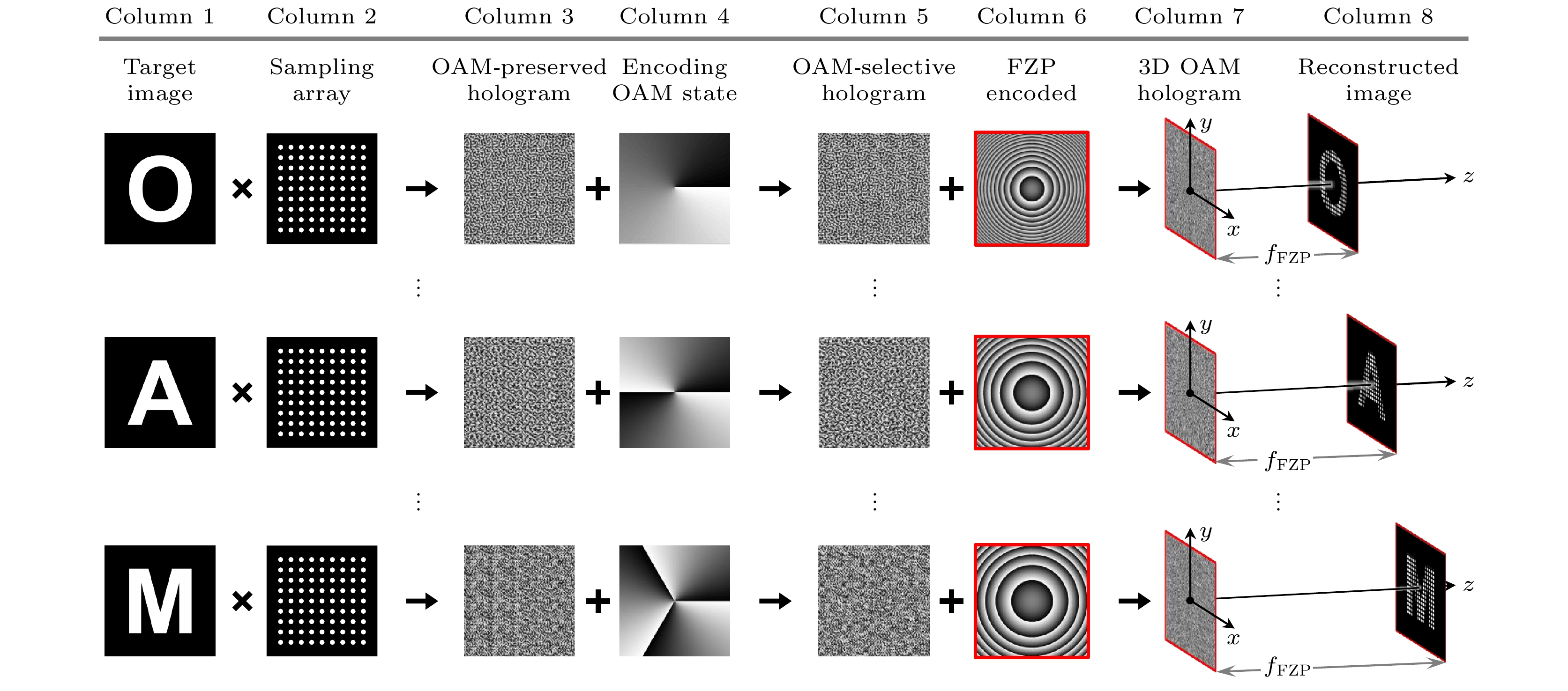 The degree of freedom of orbital angular momentum of light has been used as a new information carrier in optical holographic information processing technology. However, current research on orbital angular momentum holography mainly focuses on two-dimensional orbital angular momentum holography, where the reconstructed two-dimensional holographic image is located in a certain plane in three-dimensional space. How to further implement three-dimensional spatial orbital angular momentum holographic technology and use it to increase the information capacity of holographic communication is still a blank. Here, we implement three-dimensional spatial orbital angular momentum holographic technology based on the degrees of freedom of orbital angular momentum and the positional degrees of freedom of reconstructed two-dimensional images in three-dimensional space. In other words, in the three-dimensional spatial orbital angular momentum holography, the acquisition of the target object image requires not only the correct orbital angular momentum state used for decoding, but also the correct spatial position where the object’s image is detected. In addition, we further investigate the three-dimensional spatial orbit angular momentum holographic multiplexing technology and point out that this multiplexing technology can be used for information encryption. Compared with traditional two-dimensional orbital angular momentum holography, three-dimensional spatial orbital angular momentum holography uses an additional degree of freedom. Therefore, the encryption scheme based on three-dimensional spatial orbital angular momentum holographic technology can further improve the security level of information. Our simulation results and experimental results have verified the feasibility of three-dimensional spatial orbit angular momentum holographic technology and three-dimensional spatial orbit angular momentum holographic encryption technology.