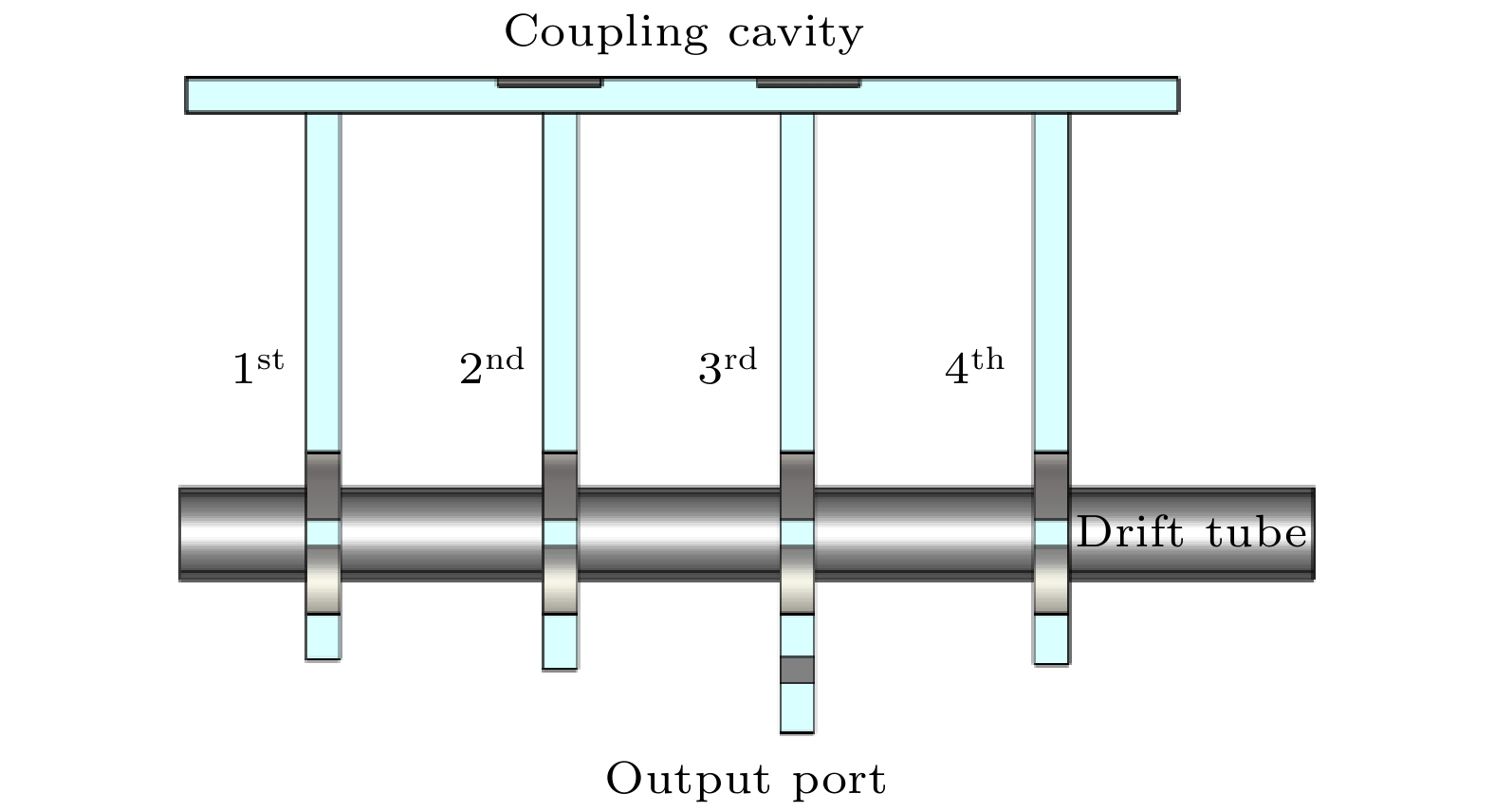 In this study, a T-shaped, four-period resonant slow-wave structure is optimally designed, and its high-frequency performance is comprehensively analyzed in theory. By using the image theory, the T-shaped waveguide unit is transformed into an equivalent ridge waveguide configuration. The high-frequency characteristics of the equivalent ridge waveguide, such as resonant frequency and structure of the T-shaped waveguide are analyzed by using equivalent circuit theory. The analysis has confirmed that in the ridge waveguide, starting from the second-highest order mode, the frequency points of the even-order modes are very consistent with those of the T-shaped waveguide; however, the odd-order modes have no such corresponding mode in the T-shaped waveguide, for they do not fulfill the electric boundary conditions required by the image method. On this basis, a T-shaped four-period resonant slow-wave structure is constructed, and its dispersion characteristics are analyzed to determine the resonant modes and frequencies, as well as the range of mode synchronization voltages. Simulations are subsequently performed to validate the effectiveness of the relativistic extended interaction radiation source, which includes the novel T-shaped periodic resonant slow-wave structure. Advanced three-dimensional particle simulations, in conjunction with optimization techniques show that a high-power microwave output at a frequency of 9.8 GHz, is achieved, which can delivers an average power of 71.4 MW. This output is attained under the conditions of a 448 kV beam voltage, 400 A beam current, and a 0.4 T uniform axial magnetic field, with an electron efficiency reaching 39.8%. This structure, characterized by the T-shaped waveguide, is demonstrated to be capable of producing high-efficiency, high-power microwaves with fewer periods, presenting a compact and efficient solution for generating high-power microwaves in advanced scientific applications.
