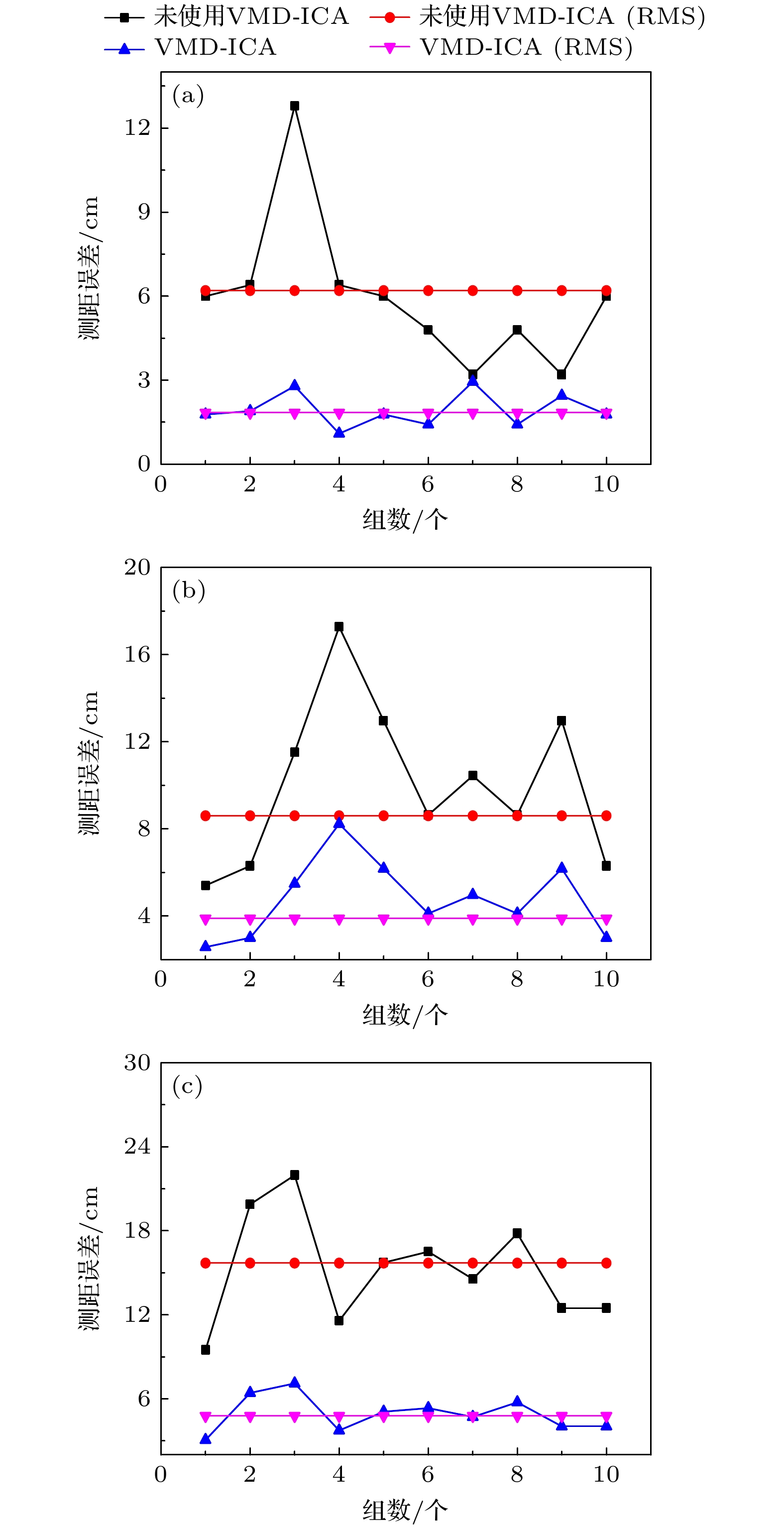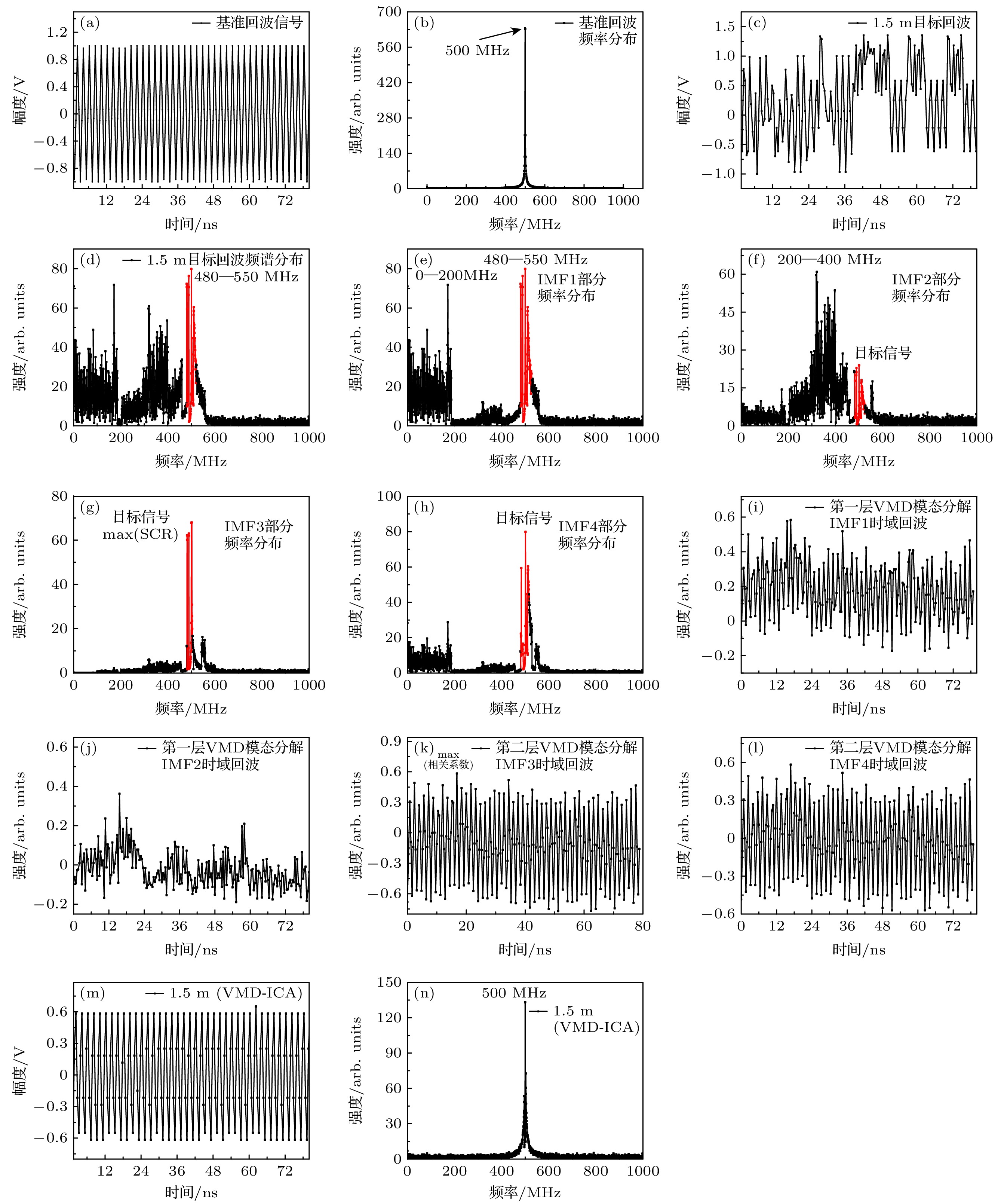 This paper proposes an underwater signal processing method based on the combination of variational mode decomposition (VMD) and independent component analysis (ICA). In this method, the VMD is used to decompose a set of echo signals into groups of eigenmodal signals arranged according to the order of their frequencies. These modal signals are then used as an observation matrix for ICA to ensure the integrity of the separated target echo signals. In this method, the correlation between the decomposed modal signals and the original signal is used to select the signals which are used as input matrix rows for ICA. The signal-to-clutter ratio is used to determine the number of decomposed layers. The ICA is used to separate the scattering and target echoes, so as to recover the weak target echoes in the strongly scattered water and greatly improve the ranging accuracy. A 532 nm intensity-modulated continuous wave (CW) laser is used in the underwater ranging experiments. The attenuation coefficient of the water is changed by adding Mg(OH)2, ranging experiments are carried out at different attenuation lengths. The experimental results show that the signal processing method can be used to successfully measure the target within 9 AL (attenuation length) when the laser output power is 2.3 W, and the ranging accuracy is improved from 16 cm to less than 5 cm by using the algorithm. The proposed method can be applied to underwater lidar application in turbid water and long distance ranging underwater where the scattering dominates the echoes.