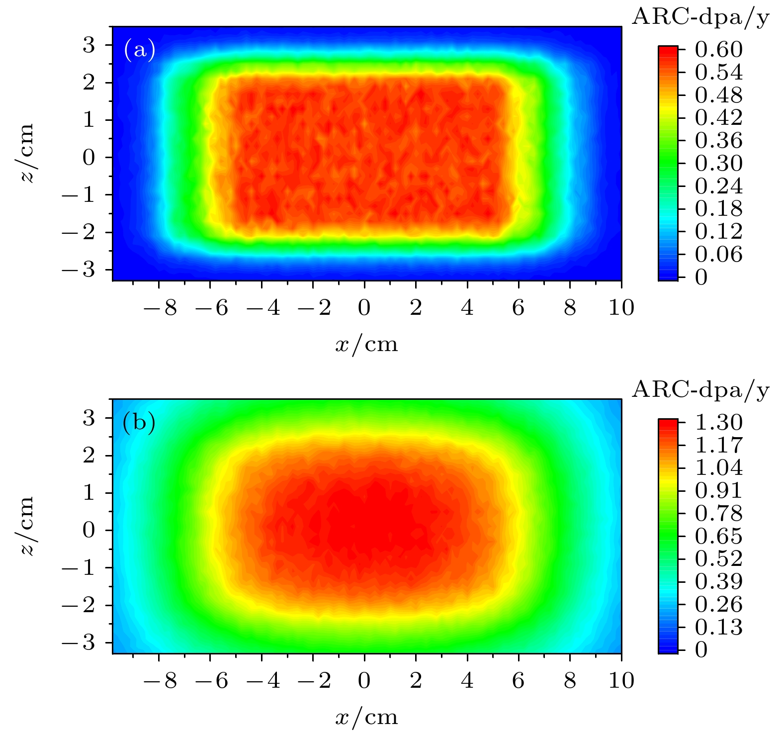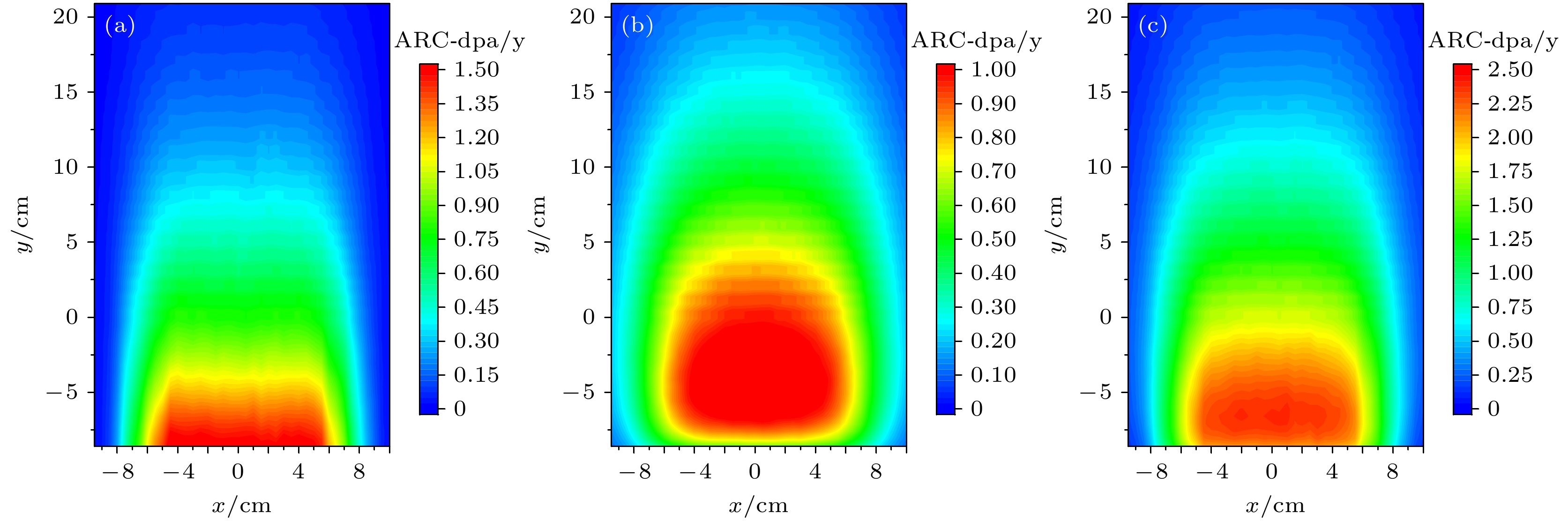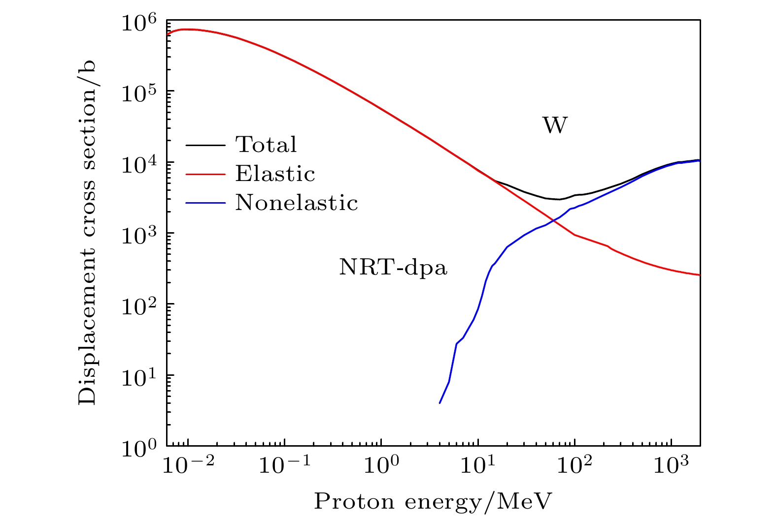 China Spallation Neutron Source (CSNS) I project passed the national acceptance in 2018, and current beam power has reached 140 kW. In order to further improve the output neutron strength of the target station moderator, a 500 kW power upgrade plan has been proposed for CSNS II. The target station is an important part of the spallation neutron source. In the target station, a large number of neutrons are produced by the spallation reaction between high energy protons and the target, these neutrons are moderated by the moderator and become neutrons for neutron scattering experiments. During operation, the target and other key components such as the target container, the moderator reflector container, and the proton beam window are irradiated by high-flux and high-energy particles for a long time, which will result in serious radiation damage. It is important to assess the accumulated radiation damage during operation to determine the service life of each component. At present, the physical quantities used to evaluate the radiation damage degree of materials include displacement per atom (DPA), H and He production. In this work, the displacement damage cross sections of protons and neutrons and the H, He production cross sections for W, SS316 and Al-6061 materials are obtained by using PHITS. The effects of the Norgett-Robinson-Torrens (NRT) model and athermal recombination corrected (ARC) model on the calculation of displacement damage are analyzed. The results show that the cross section calculated based on ARC model is lower than that based on NRT model, because the NRT model does not take into account the resetting of the atoms before reaching thermodynamic equilibrium. On this basis, DPA, H and He production of the key components of the target station operating for 5000 h at a power of 500 kW are calculated by combining the baseline model of the second phase target station of the spallation neutron source in China. The results show that the yields of NRT-dpa, ARC-dpa, H and He produced by irradiation are 8.01 dpa/y (in this paper, 1 y = 2500 MW·h), 2.39 dpa/y, 5110 appm/y and 884 appm/y, respectively. The radiation damage values of the target vessel are 5.34 dpa/y, 1.92 dpa/y, 2180 appm/y and 334 appm/y, respectively. The radiation damage values of the moderators and reflectors are 3.78 dpa/y, 1.77 dpa/y, 124 appm/y, and 36.7 appm/y. The radiation damage values of the proton beam window are 0.35 dpa/y, 0.19 dpa/y, 962 appm/y, and 216 appm/y. Subsequently, the life of each component is estimated by analyzing the radiation damage. These results are very important for analyzing the radiation damage of these parts, and constructing reasonable maintenance programs.