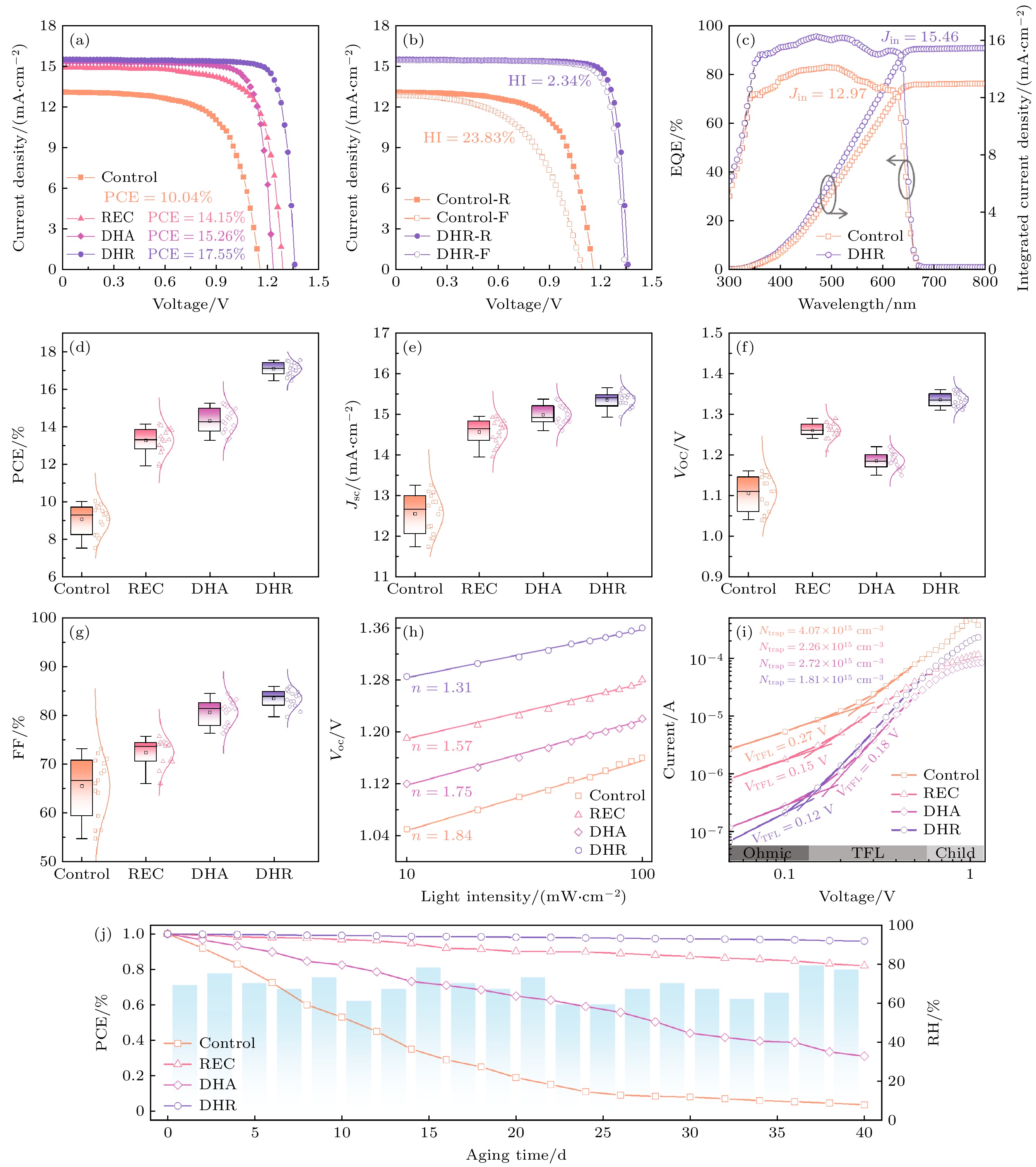 CsPbI2Br thin films prepared in ambient air are susceptible to humidity, resulting in low coverage, poor crystallization quality, numerous pinholes, and easy transformation into non perovskite phases. To overcome the troubles of pervoksite fabrication in ambient air, a feasible way is to reduce the moisture around the films as much as possible according to dynamic hot-air assisted strategy. However, the hot air accelerates the evaporation rate of solvent, resulting in the decrease of grain size. In order to improve the crystal growth and long-term stability in dynamic hot-air assisted strategy, in this work, we present a dynamic hot-air assisted recrystallization (DHR) strategy to prepare high-quality CsPbI2Br thin films in ambient air (i.e. the CsPbI2Br thin films prepared via dynamic hot-air strategy are recrystallized by using a green solvent (methylamine acetate) with high viscosity coefficient). Under ambient air with high humidity (RH>60%), the CsPbI2Br thin film with high coverage, (100) preferred orientation, large average grain size, and stable structure is prepared via DHR strategy. The dynamic hot-air process can effectively reduce the moisture around the film and increase the nucleation sites in the precursor solution, thereby improving the coverage of the film. However, this process inevitably results in the significant decrease of grain size (Rave= 0.32 μm) (i.e. more grain boundaries), exacerbating non-radiative recombination of carriers associated with trap states at these boundaries. The high coverage increases the grain-to-grain contact area, facilitating complete recrystallization. Thus, the recrystallization process can significantly increase the grain size (Rave= 2.63 μm) and obtain a (100) preferred orientation (I(110)/I(200)= 0.006), resulting in high photoluminescence intensity and long fluorescence lifetime (118 ns). The unencapsulated CsPbI2Br perovskite solar cell (PSC) optimized via DHR strategy with low hysterescence factor (2.34%) and high repeatability exhibits a high power conversion efficiency (PCE = 17.55%), which is higher than those of most CsPbI2Br PSCs prepared in ambient air and gloveboxes previously reported. Moreover, the unencapsulated CsPbI2Br PSC possesses an excellent storage stability under ambient air with high humidity (RH > 60%), remaining 96% of the original PCE after aging 40 days. This provides a promising approach for achieving high-performance and long-term stable CsPbI2Br films under ambient air with high humidity, which is expected to promote the commercialization process of perovskite/silicon tandem cells and semi-transparent devices.