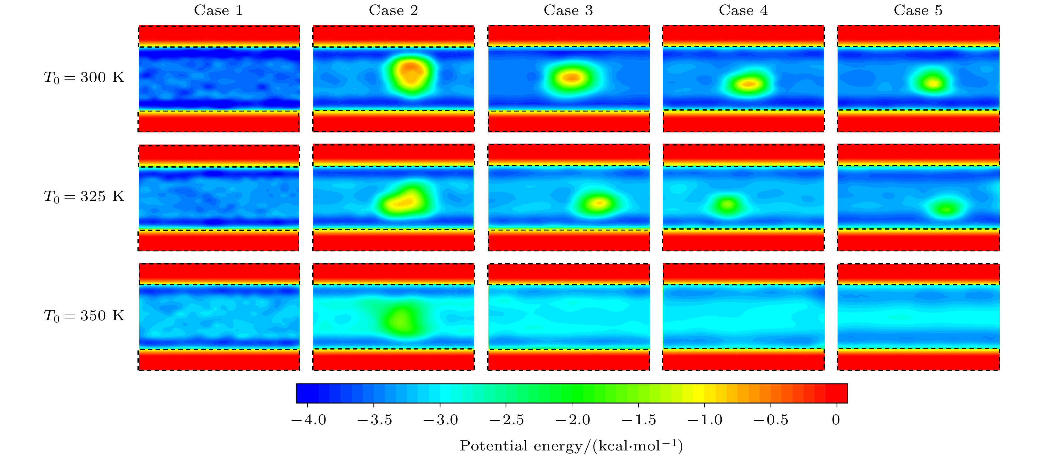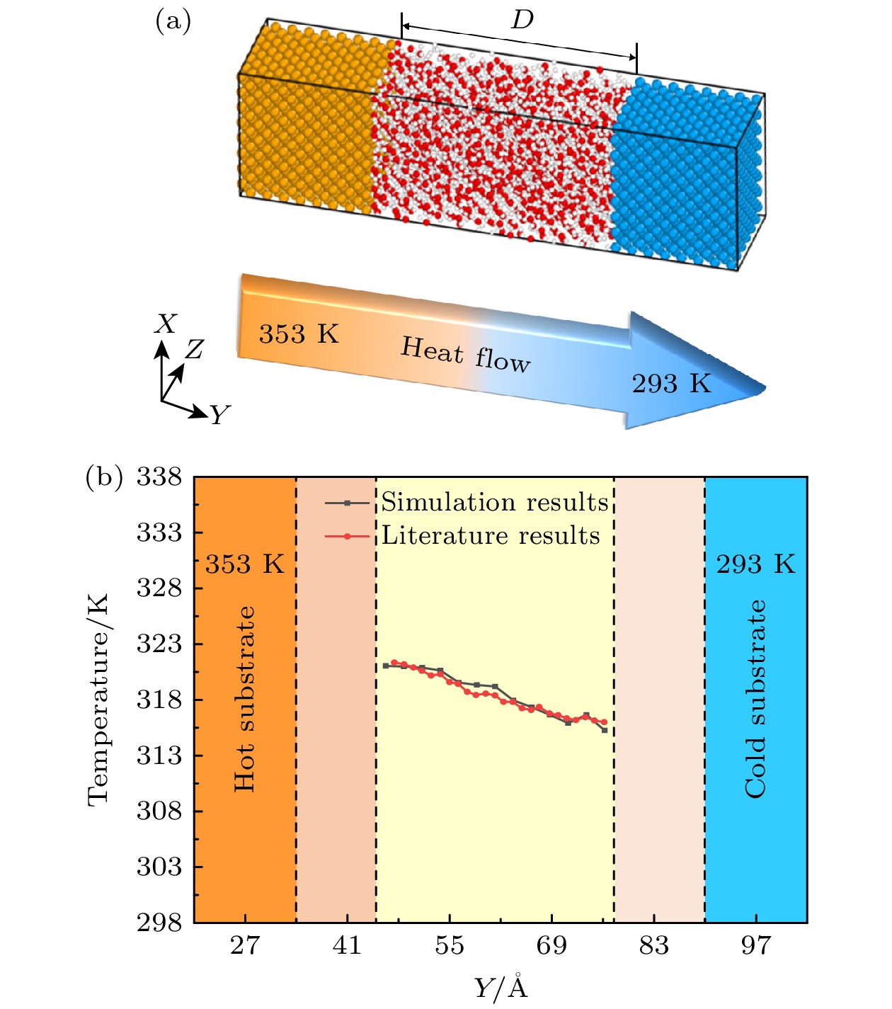 With the development of higher performance and miniaturization of electronic components, the flow heat transfer of working fluids in nanochannels has received more attention. To elucidate this phenomenon, molecular dynamics simulations are used to simulate the behaviors of fluids within nanochannels at temperatures of 300 K, 325 K, and 350 K. Water serves as a flow medium, with argon substituted for any non-condensable gases. In the flow process, argon atoms aggregate into clusters that are characterized by high potential energy. As the temperature rises, the concomitant increases in the fluid’s potential energy, which leads to the gradual diminution or complete dissipation of these clusters. A minor presence of gas atoms can facilitate fluid movement; however, an excess of argon promotes the formation of larger gaseous clusters in the central region of the channel, thereby impeding fluid flow. Concurrently, the application of heat to the fluid appreciably diminishes the coefficient of flow resistance. The temperature of the fluid in the near-wall region exceeds that of the central area. In the clusters, the atoms exhibit heightened activity, leading to an increase in the average molecular kinetic energy and a concomitant rise in temperature. The inherent hydrogen-bonding structure of water enhances heat transfer within the nanochannels. Argon atoms exert an influence on the number of hydrogen bonds, and rising temperatures disrupts the hydrogen-bond network established by water molecules, ultimately leading to a decrease of the Nusselt number. This investigation offers insights into the heat transfer dynamics of water molecular flow within microchannels under the perturbation of non-condensable gases, thereby furnishing theoretical guidance for enhancing heat transfer within electronic devices.