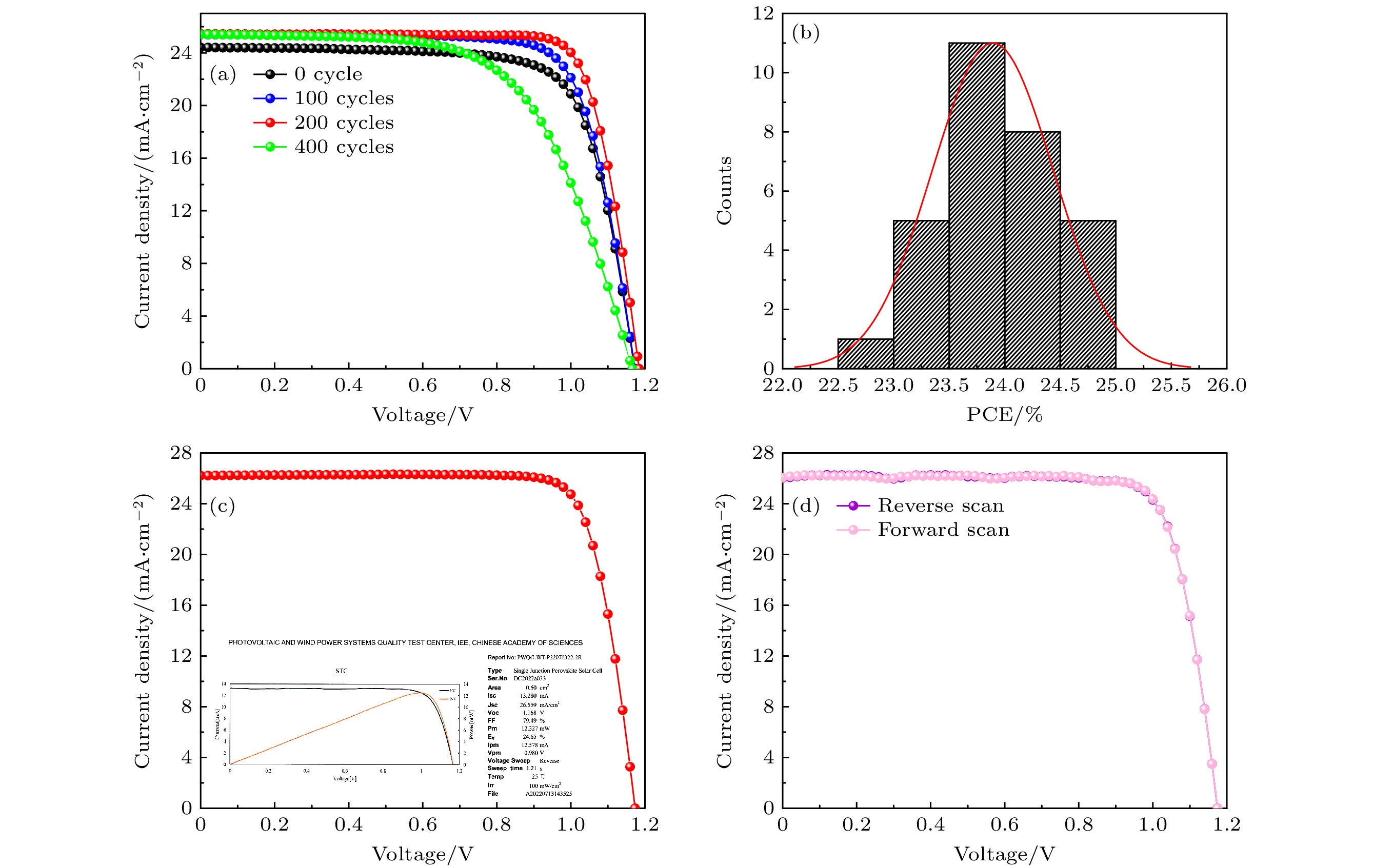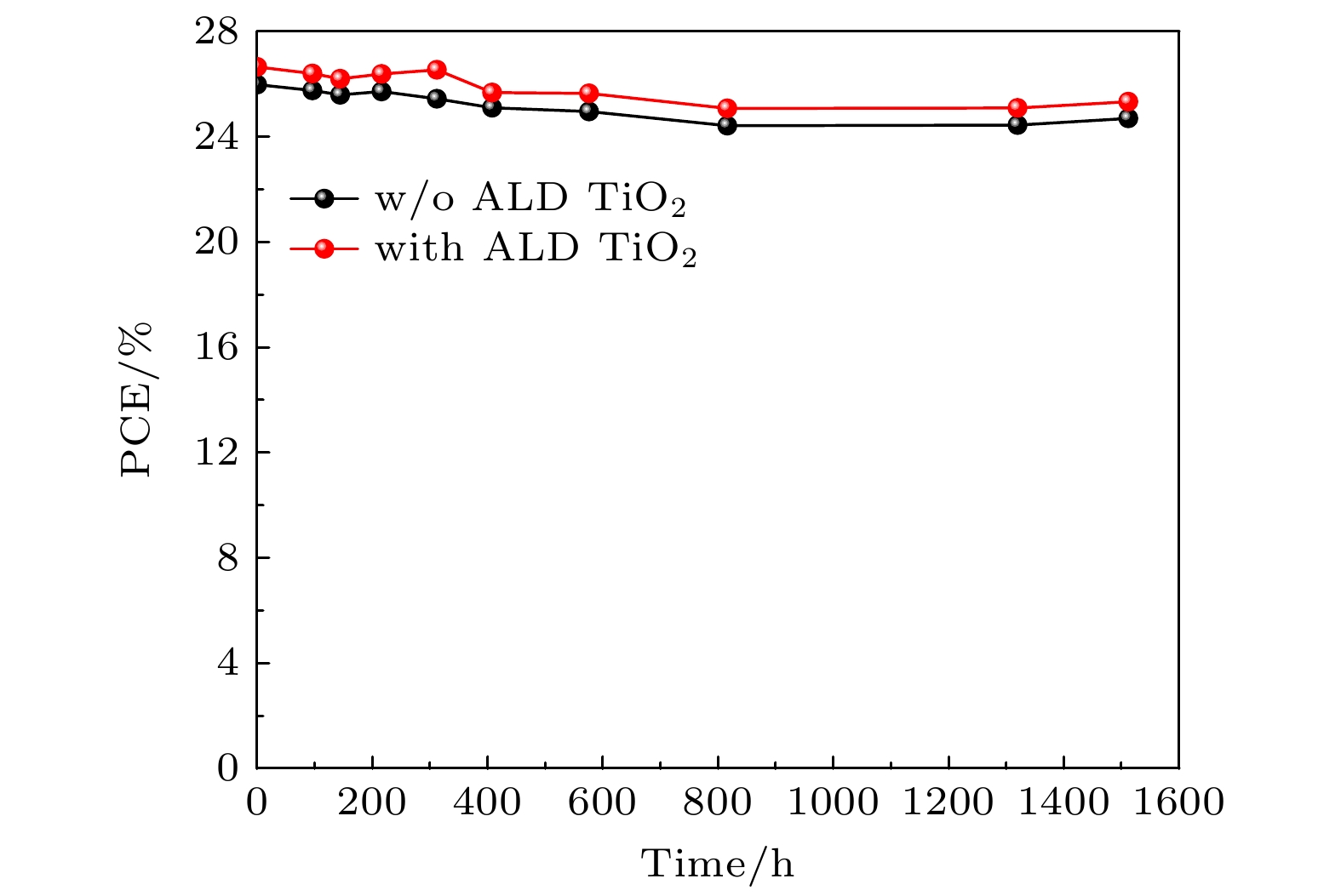 Perovskite solar cells have been widely recognized as the most promising new-type photovoltaic device due to its power conversion efficiency rapidly increasing from 3.8% to over 26% in merely fifteen years. However, the high performances are achieved mainly on small area cells with an active area lower than 0.1 cm2. When enlarging the active area of perovskite solar cells, the efficiency falls dramatically. So, how to reduce the gap between performances of small area cells and large area cells gradually becomes a critical point in the path towards the commercialization of perovskite photovoltaic technology. Herein, a strategy of pre-growing thin layer of TiO2on a rough FTO substrate by atomic layer deposition method before spin-coating SnO2nanoparticles is proposed. Due to the inherent conformal film growth mode of atomic layer deposition, the FTO substrate can be completely covered by TiO2, thus preventing the direct contact between local protrusions of FTO and perovskite layer and impeding the current leakage phenomenon, which can be verified by the measurements from X-ray photoelectron spectroscopy, scanning electron microscopy, and atomic force microscopy, and further proved by the dark current measurement. By using this method, the repeatability and consistency of the small area cell fabrication technology on the same substrate are improved obviously. The improved electron transport process revealed by photoluminescence results and incident light management process revealed by external quantum efficiency results also brings about better solar cell performances. More importantly, highly efficient 0.5 cm2large area perovskite solar cells are fabricated through optimization of TiO2thickness. When growing 200 cycles TiO2(~9 nm in thickness) by using atomic layer deposition technology, the champion large area perovskite solar cell possesses a power conversion efficiency as high as 24.8% (certified 24.65%). The device performances also show excellent repeatability between different fabrication batches. The perovskite solar cell with TiO2buffer layer grown by the atomic layer deposition method can still retain over 95% of its initial efficiency after having been stored in a nitrogen atmosphere for 1500 h. The technique proposed in this paper can be helpful in manufacturing perovskite solar cell modules in the realistic photovoltaic market and can be extended to the large area fabrication of other perovskite optoelectronic devices such as light emitting diode, laser and detector.