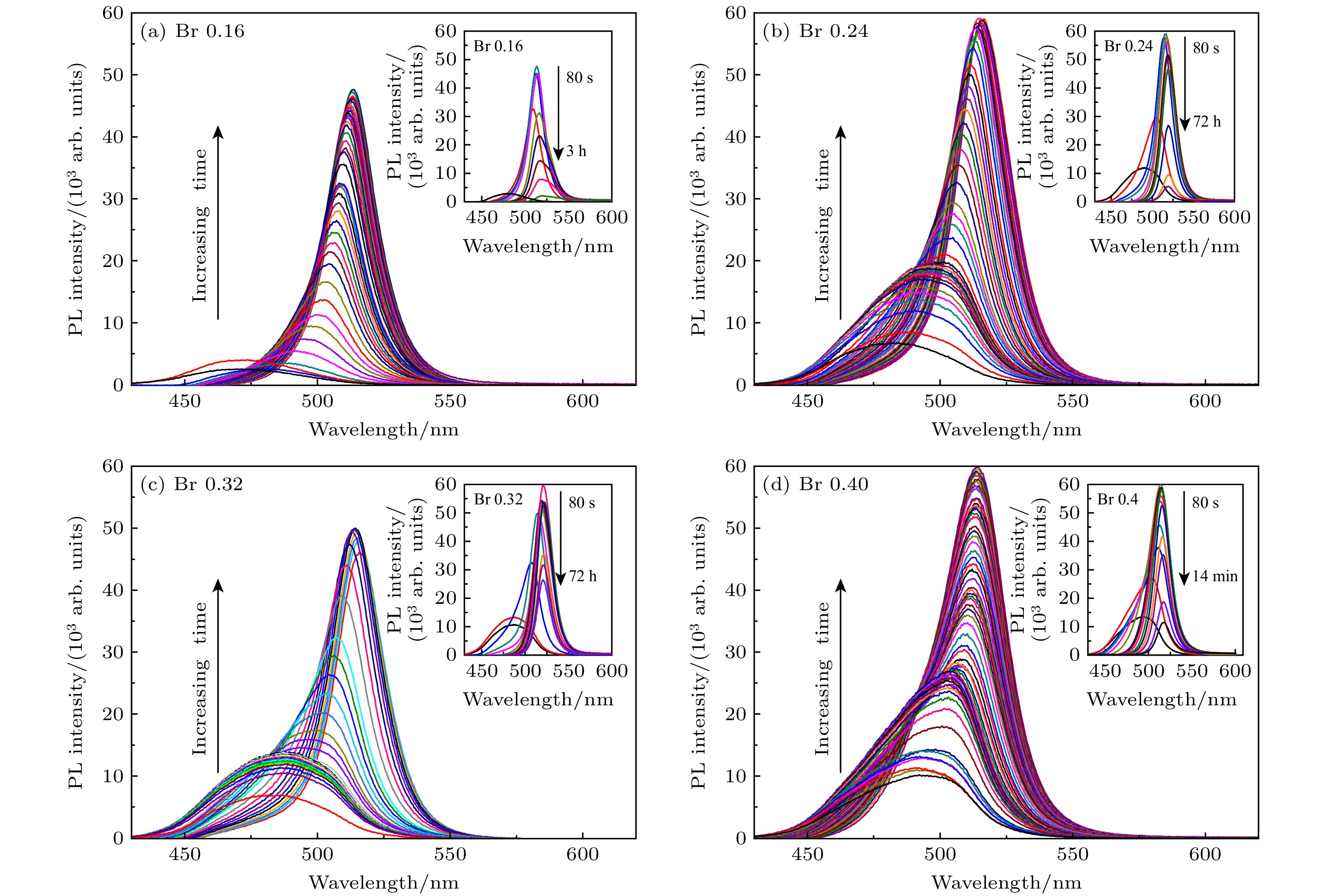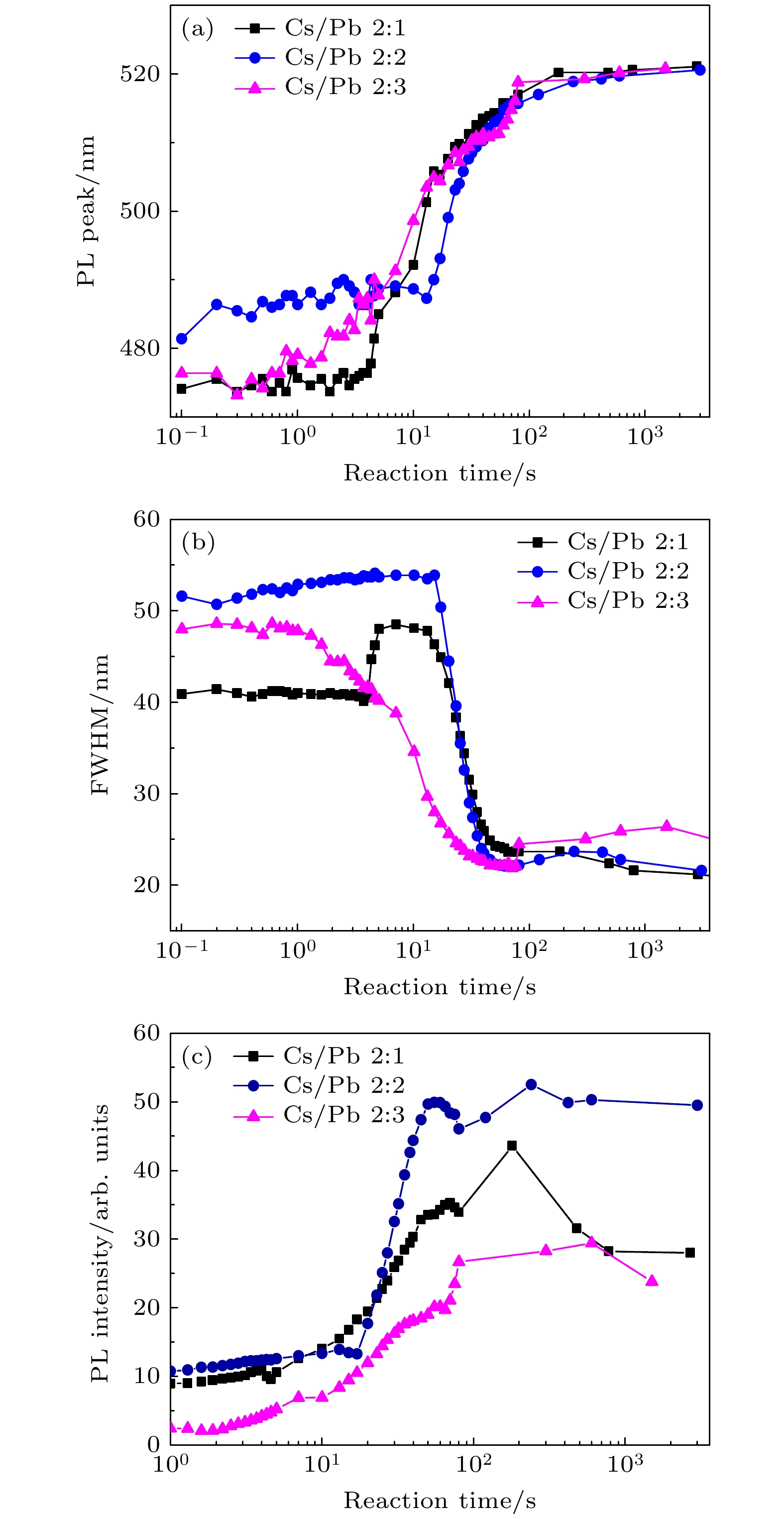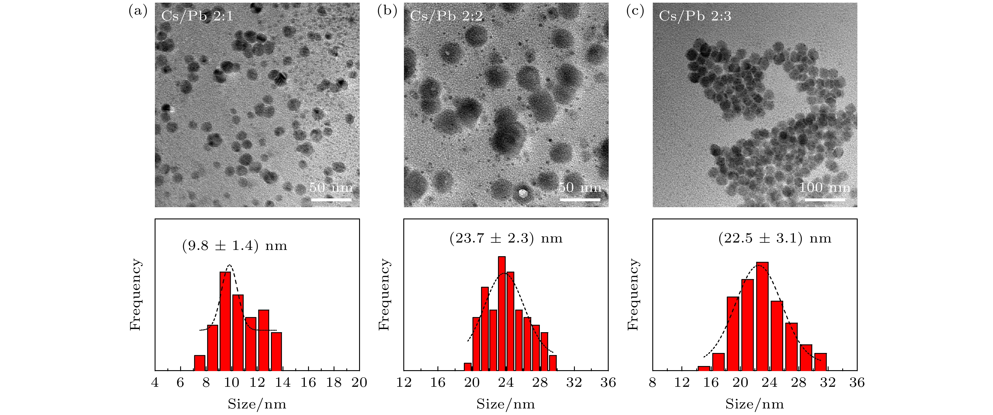 All-inorganic cesium lead halide perovskites have shown great potential applications in optoelectronic field due to their fascinating optical properties. Although perovskite materials have achieved great success in various fields, their inherent ionic properties and high dynamic surface properties have led to their poor stability, hindering their applications. The preparation of CsPbBr3-Cs4PbBr6nanocrystals has proven to be an effective strategy to enhance their photoluminescence properties and stability. Herein, we report an easy synthesis of CsPbBr3-Cs4PbBr6nanocrystals with a diphase structure at room temperature by using Cs-OA, Pb-OA and TOABr as precursors in toluene. It is found that the phase transformation and the relative composition between CsPbBr3and Cs4PbBr6are dependent on the concentration of TOABr and the ratio of Cs/Pb. Thein-situPL experiments reveal that the formation of ~12 nm CsPbBr3nanocubes experiences the fast nucleation, the focusing growth of size-distribution in early growth stage and Ostwald ripening growth in the later stage at a TOABr concentration of 0.16 mmol. With the increase of concentration of TOABr or molar ratio of Cs/Pb > 1 (Cs/Pb < 1), [PbBr4]2–complex and [PbBr3]–complex can coexist and compete with each other in toluene, and the CsPbBr3nucleations dominate in the early stage, then CsPbBr3-Cs4PbBr6nanocomposites are gradually formed on CsPbBr3nucleations as photoluminescence centers due to the continuous generation of [PbBr4]2–complex between TOABr and Pb2+. The relative composition of Cs4PbBr6in CsPbBr3-Cs4PbBr6nanocomposites can be improved from 4% to 85% with the concentration of TOABr increasing or Cs/Pb < 1. The optimized CsPbBr3-Cs4PbBr6composite nanocrystals possess high PLQY and stability. Our work provides an understanding of the mechanism of phase transformation in cesium lead halide perovskite materials.
