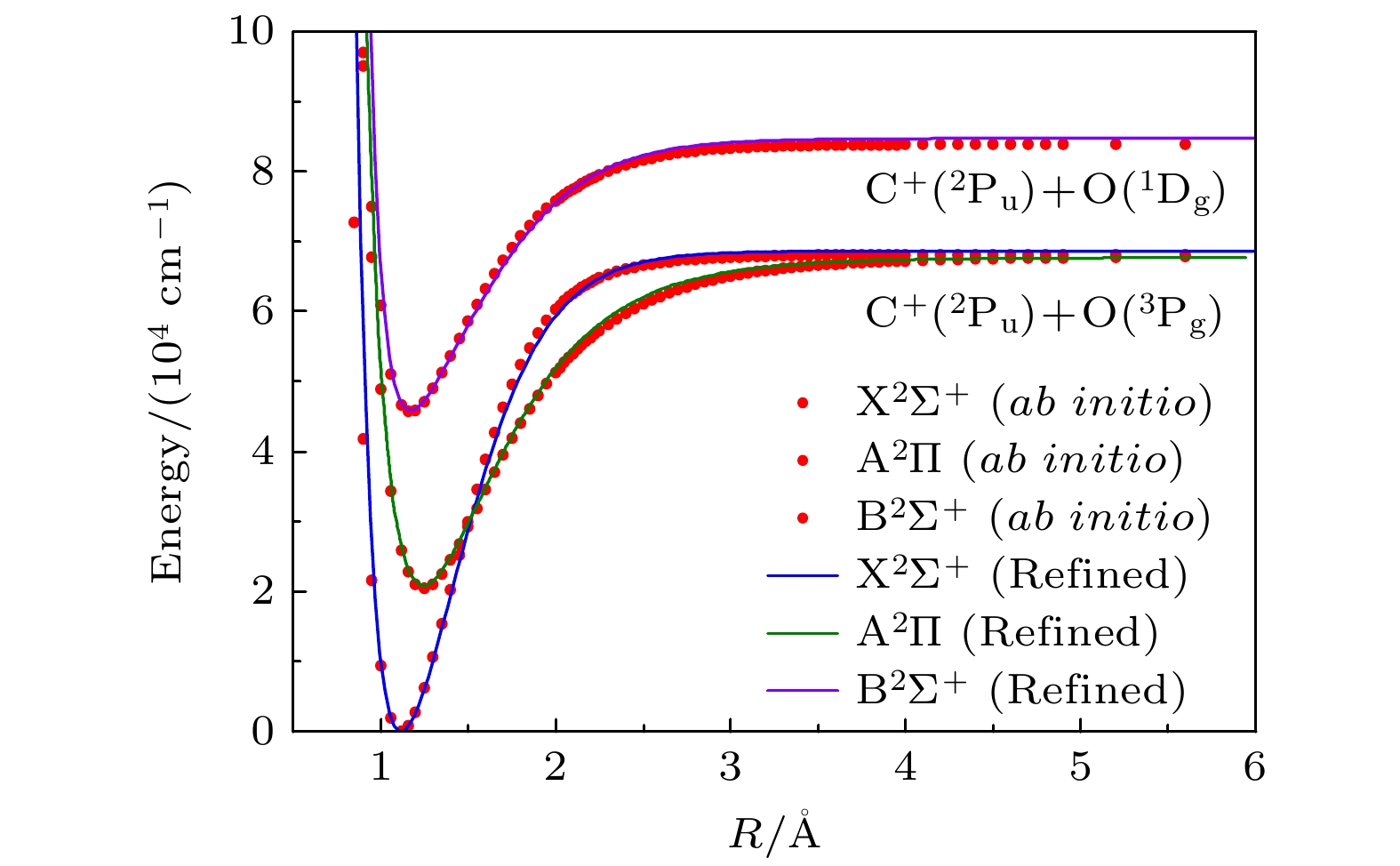 Carbon monoxide cation (CO+) plays a dominant role in some astrophysical atmosphere environments, and theoretical research on its opacity is crucial for modeling radiative transport. In this work, based on experimentally observed vibrational energy levels of the X2Σ+, A2Π, and B2Σ+ electronic states of CO+, the potential energy curves are improved and constructed using a modified Morse (MMorse) potential function, then the vibrational energy levels and spectroscopic constants are extracted. In the meantime, the internally contracted multireference configuration interaction (MRCI) method with Davison size-extensivity correction (+Q) is used to calculate the potential energy curves and transition dipole moments. The refined MMorse potential shows excellent agreement with the computed potential energy curves, while the spectroscopic constants and vibrational levels indicate strong consistency with existing theoretical and experimental data. The opacities of the CO+ molecule is computed at different temperatures under the pressure of 100 atm. The result shows that as temperature rises, the opacities of transitions in the long-wavelength range increases because of the larger population on excited electronic states at higher temperatures. All the data presented in this paper are openly available athttps://doi.org/10.57760/sciencedb.j00213.00136 .