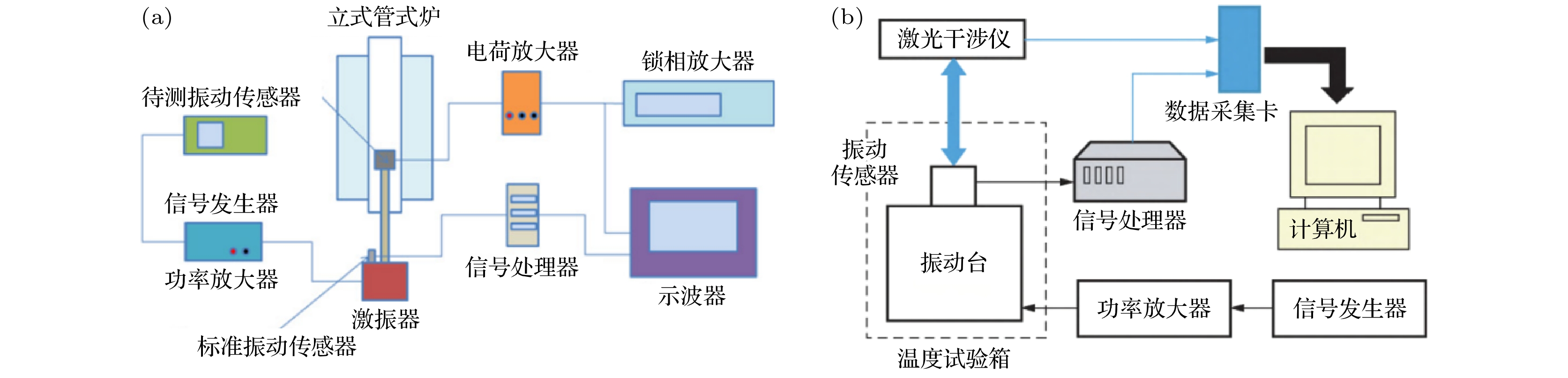 Vibration sensor technology, especially piezoelectric vibration sensor, has been widely applied in various fields. This type of sensor has excellent dynamic response, linearity, wide bandwidth, high sensitivity, large temperature range, simple structure, and stable performance, so it can be applied in many cases such as nuclear power, aerospace, rail transportation, and defense industries. However, most of piezoelectric vibration sensors are limited to operating temperatures below 500 ℃, which restricts their applications in extreme high-temperature environments encountered in nuclear reactors, aircraft engines, missile systems, and internal combustion engines. How to improve the operating temperature of piezoelectric vibration sensors to meet their application requirements in extreme environments is an urgent problem that needs to be solved. High-temperature piezoelectric materials, as the core components of piezoelectric vibration sensors, play a decisive role in determining the overall performance of the sensor. Common high-temperature piezoelectric materials include piezoelectric ceramics and single crystals. To ensure stable operation and excellent sensitivity in extreme environments, it is essential to select piezoelectric materials with high Curie temperature, high piezoelectric coefficient, high resistivity, and low dielectric loss as the sensing elements of the sensor. There are usually three main types of piezoelectric vibration sensors: bending, compression, and shear. In addition to selecting the suitable piezoelectric material, it is also crucial to choose the optimal sensor structure suitable to the specific application scenarios. In view of the urgent demand for ultrahigh-temperature vibration sensors, this paper mainly reviews the current research progress of high-temperature piezoelectric materials and high-temperature piezoelectric vibration sensors, summarizes the structures, advantages and disadvantages, and application scenarios of different types of high-temperature piezoelectric vibration sensors, explores the current problems and future development trends of high-temperature piezoelectric vibration sensors, and provides ideas for developing the next-generation ultrahigh temperature vibration sensors for extreme environmental applications, which is expected to promote the further development of high-temperature piezoelectric vibration sensing technology.