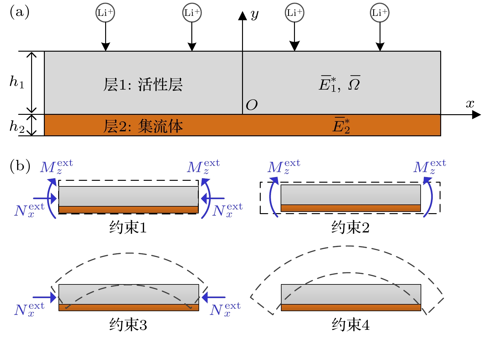 Lithium-ion batteries (LIBs) are widely used in portable electronic devices, electric vehicles, and other fields. With the rapid development of its application fields, there is an urgent need to further improve its energy density and safety. In the charging/discharging process of the LIBs, the diffusion of Li will cause local volumetric change in the electrode material. The degradation and damage of the electrode material structure caused by diffusion-induced deformation is a major obstacle to the development of LIBs. Generally speaking, the electrode materials in LIBs are always subject to specific external constraints, including both inevitable passive structural constraints within the battery and external active constraints that may be imposed by emerging technology application scenarios, which can also affect the mechanical properties of the electrode materials. Therefore, a more in-depth understanding of the diffusion-induced stress and Li concentration changes in the electrode material is an engineering requirement for developing new material design paradigms to improve the overall performance of LIBs. In this work, a two-way diffusion-stress coupling model is used to discuss the effects of the four different levels of idealized deformation constraints on the Li concentration and stress in the bilayer plate electrode in the charging process through the numerical solution. From a mechanical perspective, the bilayer plate electrode structure has two degrees of freedom: lateral expansion and bending deformation. Weakened constraint conditions can partially or completely activate these stress release mechanisms, thereby reducing the overall stress level of the electrode structure and improving its mechanical stability. However, from an electrochemical perspective, the stress gradient generated by the forward bending deformation of the electrode structure can hinder the Li intercalation process. Enhanced constraints can partially or completely suppress the forward bending of the electrode, making the Li concentration in the active layer more uniform and thus improving the capacity utilization efficiency of the active layer. These results not only provide theoretical references for further understanding the chemical-mechanical response of the bilayer electrodes under more realistic or extreme service conditions, but also indicate from a design perspective that compromised external constraints are beneficial for balancing the structural durability and electrochemical performance of electrodes.