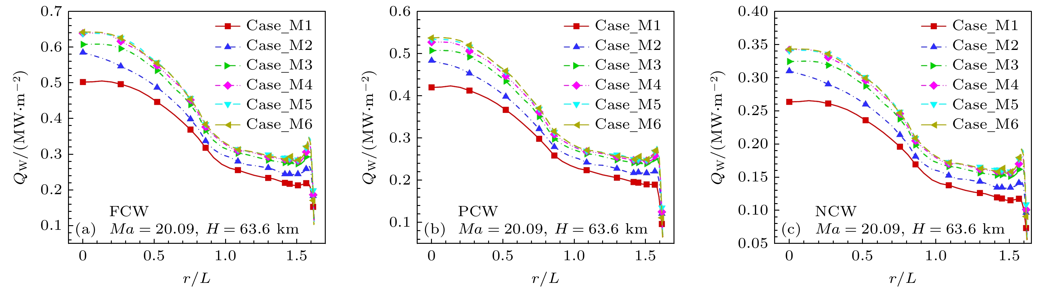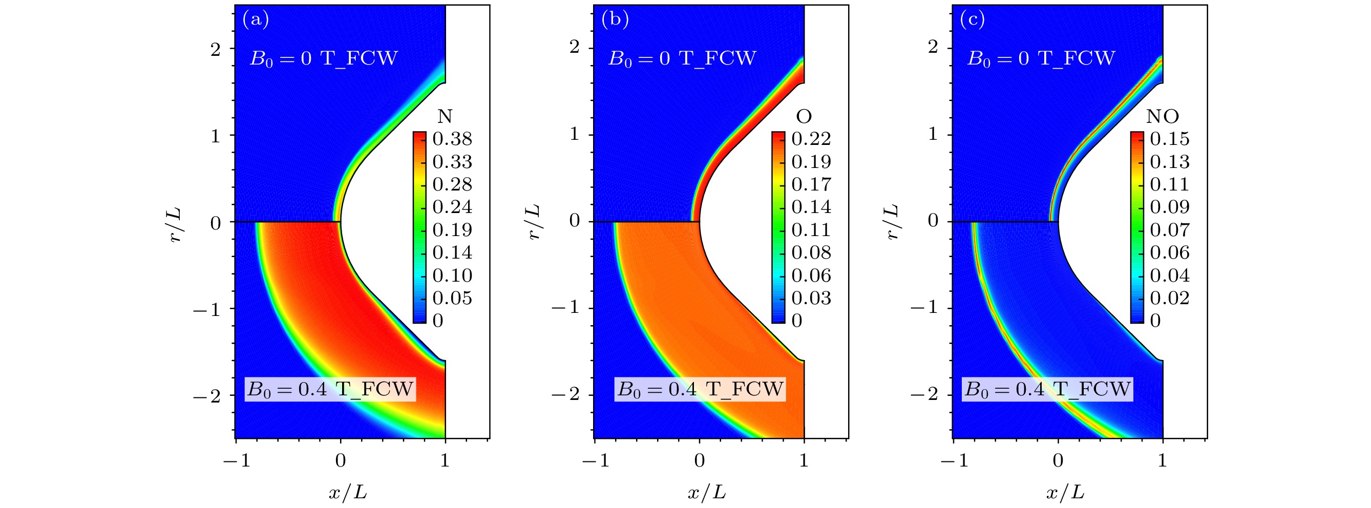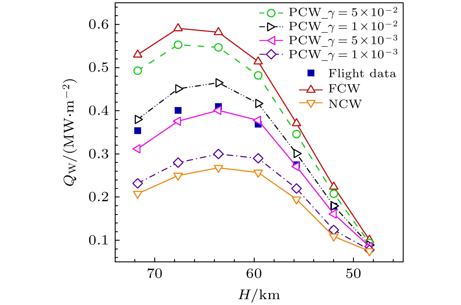 In the re-entry process of the vehicle into the atmosphere, the high-temperature environment, induced by the compression of the strong shock wave and viscous retardation, is created around the head of a vehicle. These generate a conductive plasma flow field, which provides a direct working environment for the application of magnetohydrodynaimic (MHD) control technology. Numerical simulations based on thermochemical non-equilibrium MHD model are adopted to analyze the surface heat flux of an orbital reentry experiment (OREX) vehicle. The influences of wall catalytic conditions on the aerothermal environment under different flight conditions are discussed. In addition, the control mechanism of an external magnetic field on high-temperature thermochemical non-equilibrium flow field is analyzed. The results show that the distribution of surface heat flux monotonically increases with the catalytic recombination coefficient increasing, and the surface heat flux rises and then drops with the flight altitude decreasing. Moreover, the wall catalytic properties significantly affect the efficiency of MHD control technology, and the total heat flux is closely related to the accumulation of atomic components, diffusion gradient and temperature gradient near the wall region. With an external magnetic field applied, the accumulation of oxygen atoms and nitrogen atoms near the wall can be reduced. Moreover, the Lorentz force can increase the shock standoff distance, and then reduce the component diffusion gradient and wall temperature gradient. Under three different wall catalytic conditions, the ability to control the surface heat flux MHD is ranked from strong to weak as fully catalyzed, partially catalyzed and non-catalyzed.