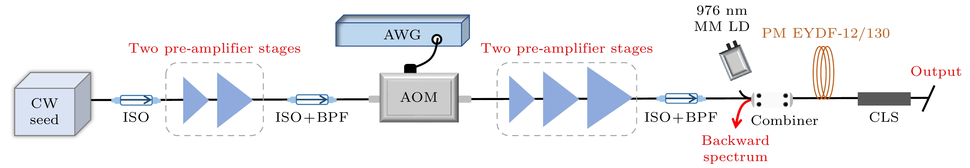 Stimulated Brillouin scattering (SBS) is the major barrier in the process of energy scaling for pulsed single-frequency fiber master oscillator power amplifier (MOPA). Due to gain saturation effect, the laser pulse profile will be gradually distorted with the increase of pump power, which induces steep leading edge and narrower width for the amplified pulses. The resulting laser peak power would increase rapidly and thus the SBS threshold is reached earlier to limit the amplification of pulse energy. A method to obtain high-energy pulsed single-frequency laser by pulse pre-shaping is demonstrated in this work. By designing the leading edge of the triangular pulse, optimizing its rising trend and the duration of the low-intensity rising part, the pulse width compression phenomenon caused by gain saturation is alleviated effectively. Thereafter, the laser peak power increase process can be retarded to reach the SBS threshold so that higher energy can be amplified for the pulsed single-frequency fiber laser. In the experiment, when the seed pulse is optimized to be a triangular pulse with a low-intensity rising edge of 401 ns and a pulse width of 520 ns, a linear-polarized pulse single-frequency fiber laser of 130.9 μJ is obtained in a 12-μm-core Er/Yb co-doped polarization-maintaining fiber. The pulse width is broadened to 608 ns at the maximum energy. When it is compared with the triangular pulse seed with a rapidly rising leading edge, its maximum energy is increased by about 25%. The optical signal-to-noise ratio and polarization extinction ratio are measured to be 42 dB and 16 dB at the maximum pulse energy, respectively. The corresponding spectral linewidth measured by a delayed self-heterodyne system is 542 kHz. Higher pulse energy can be anticipated by further optimizing the pulse profile and using large-mode-are gain fibers.