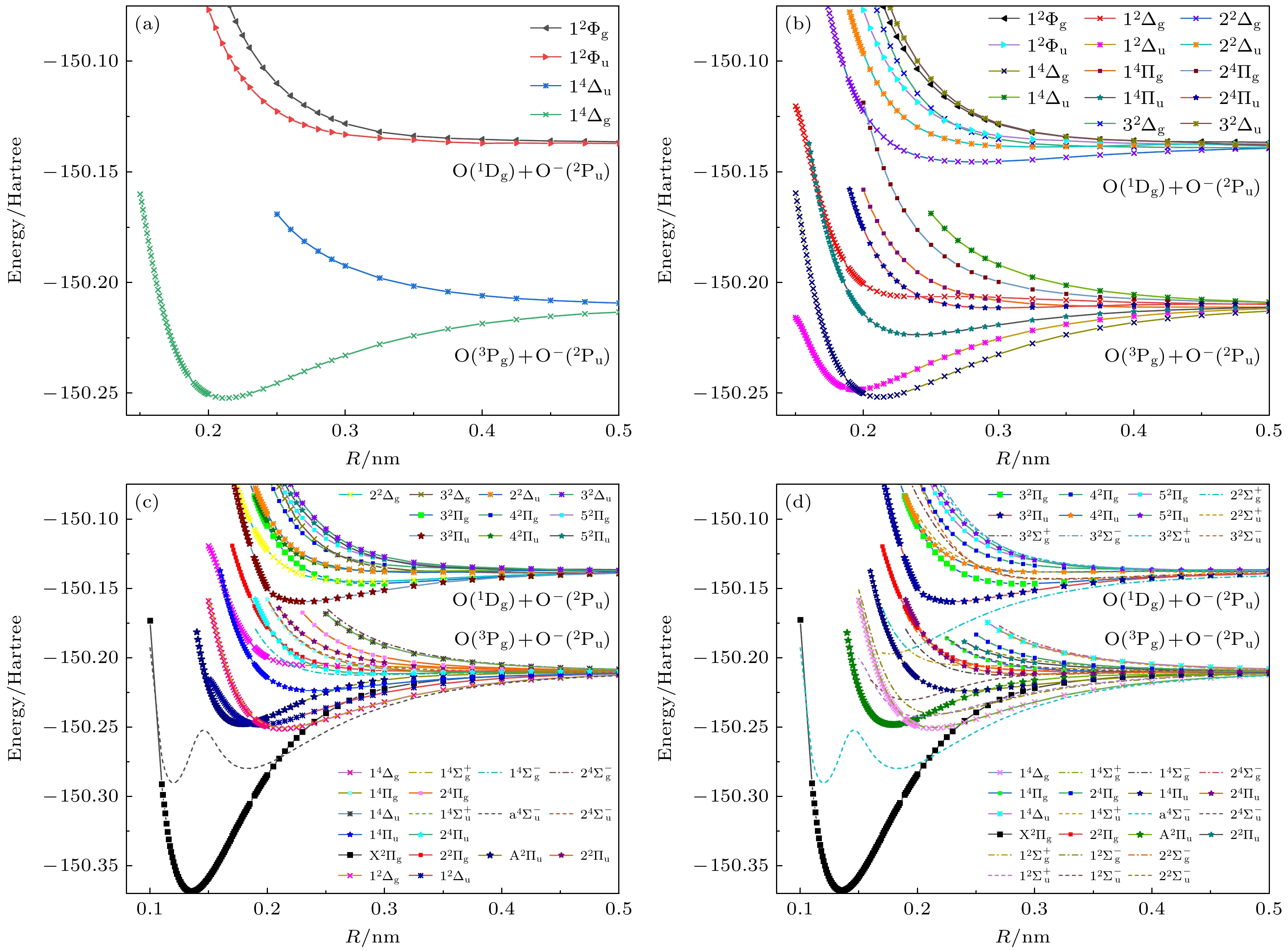 A comprehensive theoretical study on the low-energy electronic states of superoxide anion (\begin{document}${\text{O}}_{2}^{{ - }}$\end{document} ) is carried out, focusing on the influence of spin-orbit coupling (SOC) on these states. Utilizing the complete active space self-consistent field (CASSCF) method combined with the multireference configuration interaction method with Davidson correction (MRCI+Q) and employing the aug-cc-pV5Z-dk basis set that includes Douglas-Kroll relativistic corrections, the electron correlation and relativistic effects are accurately considered in this work. This work concentrates on the first and second dissociation limits of \begin{document}${\text{O}}_{2}^{{ - }}$\end{document} , calculating the potential energy curves (PECs) and spectroscopic constants of 42 Λ-S states. After introducing SOC, 84 Ω states are obtained through splitting, and their PECs and spectroscopic constants are calculated. Detailed data of the electronic states related to the second dissociation limit are provided. The results show excellent agreement with those in the existing literature, thus validating the reliability of the method. This work confirms through calculations with different basis sets that the double-well structure of the \begin{document}${{\text{a}}^{4}}{{\Sigma }}_{\text{u}}^{{ - }}$\end{document} state originates from avoiding crossing with the \begin{document}${{2}^{4}}{{\Sigma }}_{\text{u}}^{{ - }}$\end{document} state, and finds that the size of the basis set can significantly affect the depth of its potential well. After considering SOC, the total energy of the system decreases, especially for the states with high orbital angular momentum (such as the \begin{document}${{1}^{2}}{{\Phi }}_{\text{u}}$\end{document} and \begin{document}${{1}^{4}}{{{\Delta }}_{\text{g}}}$\end{document} states), leading to energy level splitting and energy reduction, while other spectroscopic constants remain essentially unchanged. These findings provide valuable theoretical insights into the electronic structure and spectroscopic properties of \begin{document}${\text{O}}_{2}^{{ - }}$\end{document} , present important reference data for future research in fields such as atmospheric chemistry, plasma physics, and molecular spectroscopy. The datasets provided in this work are available from https://doi.org/10.57760/sciencedb.j00213.00076 .