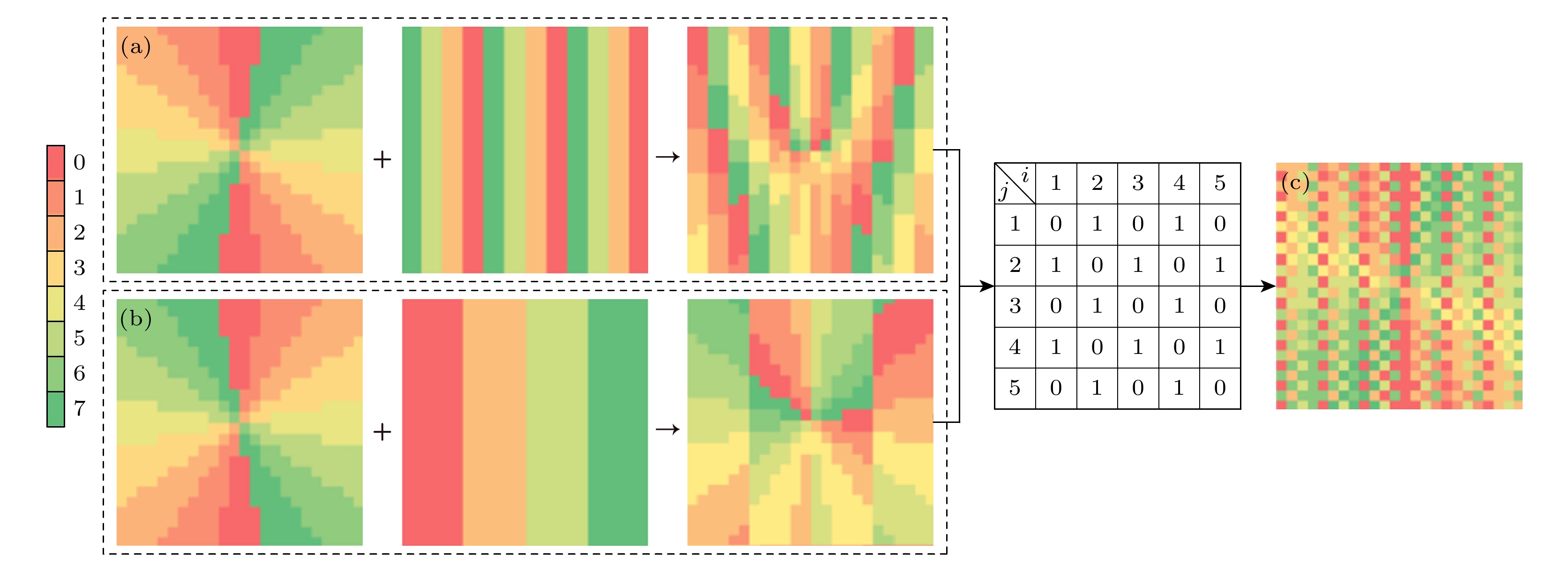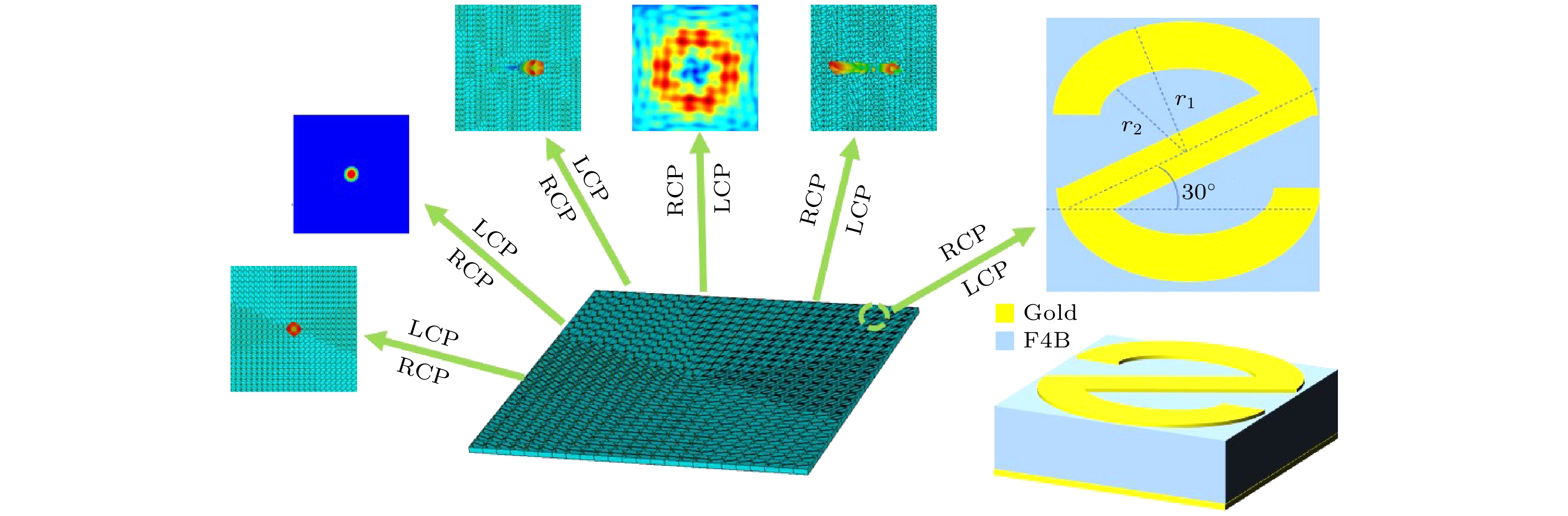 Metasurfaces have the characteristics of simple structure, easy fabrication, easy integration, etc., and can flexibly control electromagnetic waves. They are widely used in terahertz filters, lenses, polarization converters, wavefront adjustment and terahertz imaging and so on. By encoding and arranging unit cells with different amplitudes and phases according to a certain rule, the metasurfaces can achieve various functions such as imaging, focusing, beam splitting, and vortex beam. The reported coding metasurfaces are phase-modulated according to geometric phase or transmission phase theory. However, geometric phase has spin-locking property and transmission phase has single-frequency property, which hinder the applications of a unified metasurface in simultaneously regulating geometric phase and transmission phase. To address the above issues, in this work, we propose an radian and rotation co-induced phase modulation metasurface, whose unit cell independently modulates the cross-polarized reflection phases of LCP wave and RCP wave and has a certain bandwidth, which meets therequirement in a frequency region of 1–1.2 THz. Through the principle of phase convolution and shared aperture, the metasurface realizes the vortex beams with a topological charge of ±1, focusing with a focal length of 1500 μm, the deflected vortex beams with a topological charge of ±2, the quasi-perfect vortex beams, and the multichannel vortex beams. The structure has the advantages of simple structure, flexible and convenient regulation, and compact size, which improves the utilization of the electromagnetic space and has a broad application prospect in the future terahertz communication systems.