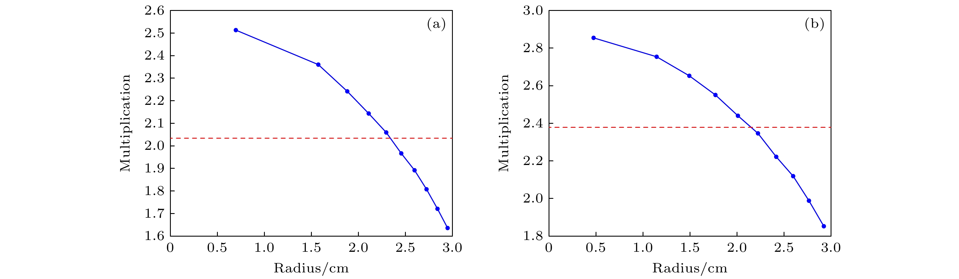 Fast neutron multiplicity measurement technology is an important non-destructive testing technology in the field of arms control verification. In the technique, the liquid scintillation detector is used to detect the fission neutron and combined with the time correlation analysis method to extract multiplicity counting rates from the pulse signals. This technique is commonly used to measure the mass of nuclear materials, however, it is based on the point model that assumes that the neutron multiplication coefficient keeps constant in the whole spatial volume, which will lead to overestimation of the multiplication coefficient and result in system deviation. To correct the deviation and improve the measurement accuracy, the fast neutron multiplicity simulation measurements are carried out on spherical and cylindrical samples in this work. The relationship among the position of neutron generation, absorption and net growth in the space volume of the material is obtained. According to the definition of the leakage multiplication coefficient, the leakage multiplication coefficients at different positions in the space volume of the material are calculated. On this basis, a method based on spatial multiplication coefficient correction is proposed according to the functional relationship between neutron multiplicity factorial moments and the unknown parameters. In this method, the n-order multiplication coefficient is modified by introducing a weight factor\begin{document}$ {g_n} $\end{document} , and the fast neutron multiplicity weighted point model equation is derived. To verify the accuracy of this method, a set of fast neutron multiplicity detection model is built by Geant4, and the fast neutron multiplicity simulation measurement is carried out on the spherical and cylindrical samples. The results show that the solution accuracy of the weighted point model equation is higher than that of the standard point model equation, and the measurement deviation is reduced to less than 6 %. This work provides an optimization method for solving plutonium samples with several kilograms in mass, and promotes the development of the fast neutron multiplicity measurement technology.