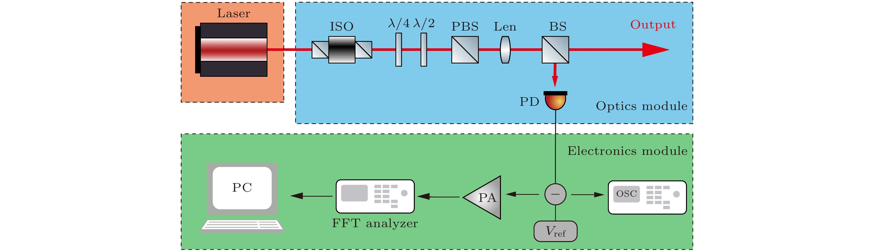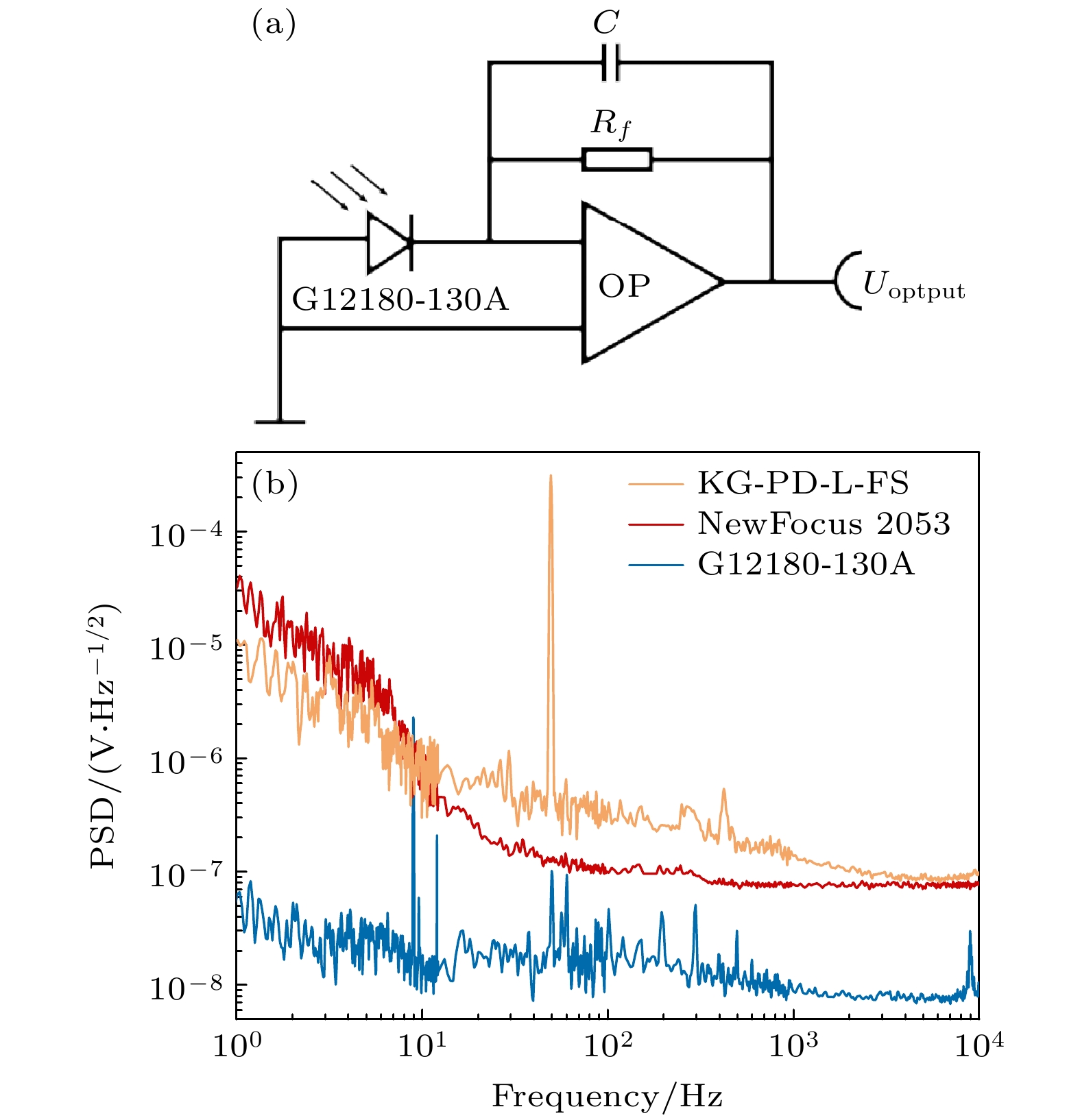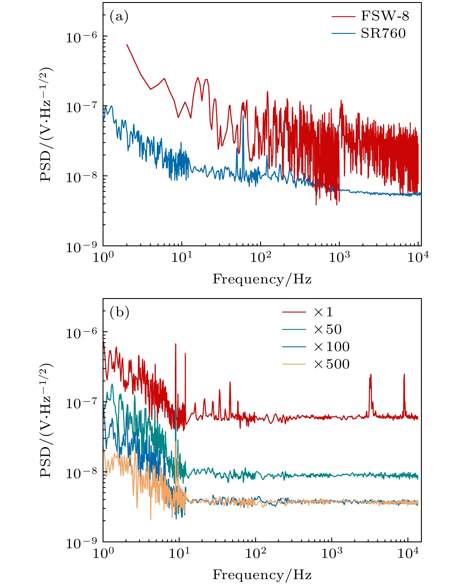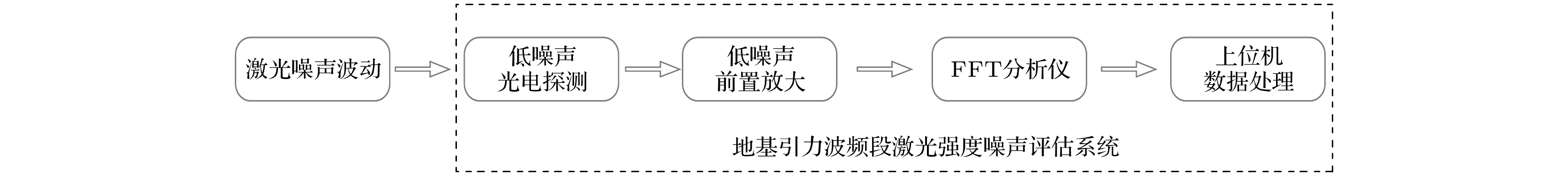 The direct detection of gravitational waves has opened up a new window for understanding the universe and trailblazed multi-messenger astronomy. The frequency bands of gravitational waves generated by various astronomical events can cover a broadband range, and the detection mechanisms and schemes for gravitational waves in different frequency bands are different. For example, the ground-based gravitational wave detection has a frequency band ranging from 10 Hz to 10 kHz, which is based on Michelson interferometer. The space gravitational wave detection has a frequency band in a range of 0.1 mHz–1 Hz , which is based on space interferometer. The pulsar gravitational wave detection has a frequency band ranging from 1×10–9 Hz to 1×10–7 Hz, which is based on pulsar timing array. The next-generation ground-based gravitational wave project requires higher sensitivity to detect faint signals, necessitating an assessment system with minimal background noise to accurately measure the laser relative intensity noise. At present, the detection frequency band of ground-based gravitational wave detection devices in operation is mainly concentrated in a range of 10 Hz–10 kHz. To satisfy the detection sensitivity requirements, the laser relative intensity noise should be accurately evaluated and suppressed to ≤2.0×10–9 Hz–1/2 at 10 Hz and ≤4.0×10–7 Hz–1/2 at 10 kHz by photoelectric feedback. In this work, an evaluation and characterization system is constructed for ground-based gravitational wave band laser intensity noise, which is based on low noise and high sensitivity photoelectric detection device and combined with LabVIEW and MATLAB algorithm programming for instrument control and data processing. This low noise evaluation system is used to test the background noise of fast Fourier transform (FFT) analyzer SR760, preamplifier SR560, photoelectric detector electronic noise and intensity noise of homemade optical fiber amplifier, and then the data extraction and image processing are carried out by LabVIEW and MATLAB algorithms, and finally the ground-based gravitational wave frequency band system is evaluated. The experimental results show that the electronic noises for the preamplifier SR560 and the FFT analyzer SR760 are lower than 3.8×10–9 Hz–1/2@(10 Hz–10 kHz). The electronic noise for the photodetector is lower than\begin{document}$ 1.4 \times {10^{ - 8}}\;{\text{V}}/\sqrt {{\text{Hz}}} $\end{document} at 10 Hz and \begin{document}$ 8.1 \times {10^{ - 9}}\;{\text{V}}/\sqrt {{\text{Hz}}} $\end{document} at 10 kHz, and the accuracy of the system is calibrated and tested by the standard sinusoidal signal. Finally, the noise of commercial laser is evaluated and compared with the factory data to verify the accuracy of the evaluation system. Related research, device and system development provide hardware, software and theoretical basis for preparing high-power low-noise laser light source and gravitational wave detection, and also provide the theoretical basis and evaluation criteria for detecting the ground-based gravitational wave .
