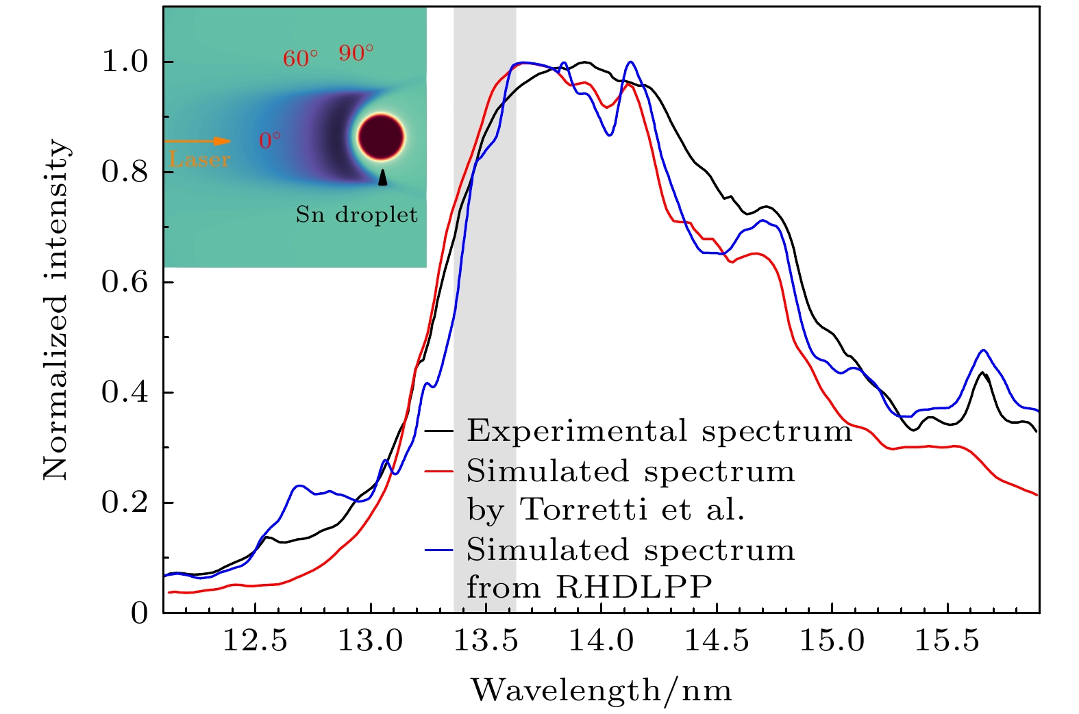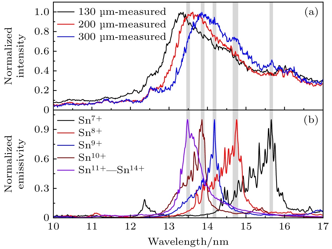 The laser-produced Sn plasma light source is a critical component in advanced extreme ultraviolet (EUV) lithography. The power and stability of EUV radiation within a 2% bandwidth centered at 13.5 nm are key indicators that determine success of the entire lithography process .The plasma state parameter distributions and the EUV radiation spectrum for a laser-produced Sn plasma light source are numerically simulated in this work. The radiative opacity of Sn plasma within the 12–16 nm range is calculated using a detailed-level-accounting model in the local thermodynamic equilibrium approximation. Next, the temperature distribution and the electron density distribution of plasma generated by nanosecond laser pulses interacting with both a Sn planar solid target and a liquid droplet target are simulated using the radiation hydrodynamics code for laser-produced plasma, RHDLPP. By combining the radiative opacity data with the plasma state data, the spectral simulation subroutine SpeIma3D is employed to model the spatially resolved EUV spectra for the planar target plasma and the angle-resolved EUV spectra for the droplet target plasma at a 60-degree observation angle. The variation of in-band radiation intensity at 13.5 nm within the 2% bandwidth as a function of observation angle is also analyzed for the droplet-target plasma. The simulated plasma state parameter distributions and EUV spectral results closely match existing experimental data, demonstrating the ability of RHDLPP code to model laser-produced Sn plasma EUV light sources. These findings provide valuable support for the development of EUV lithography and EUV light sources.