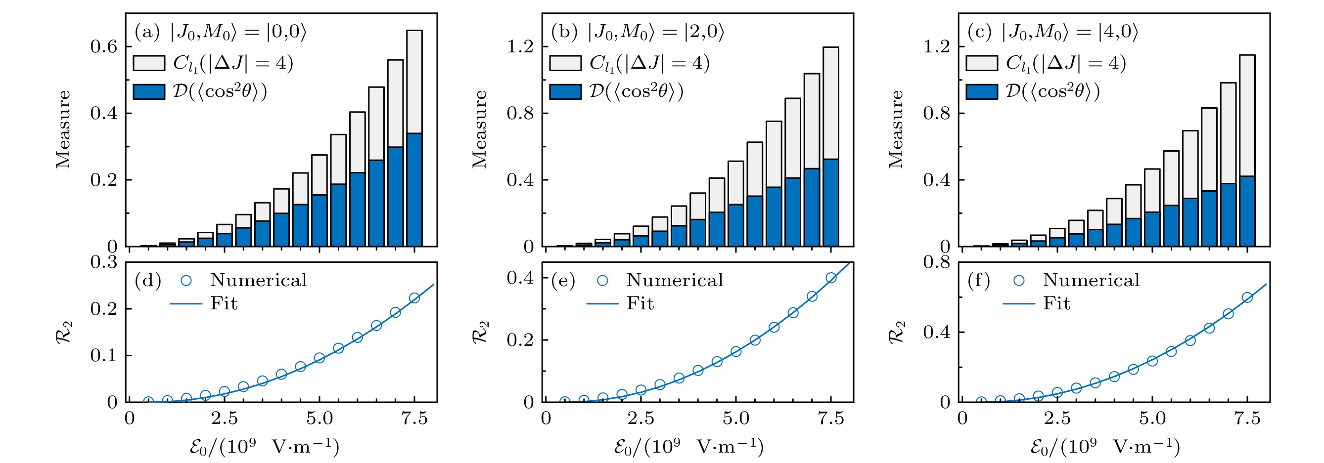 Femtosecond laser-induced excitation of molecular rotational states can lead to phenomena such as alignment and orientation, which fundamentally stem from the coherence between the induced rotational states. In recent years, the quantitative study of coherence in the field of quantum information has received widespread attention. Different kinds of coherence measures have been proposed and investigated. In this work, the quantitative correlation is investigated in detail between the intrinsic coherence measurement and the degree of molecular alignment induced by femtosecond laser pulses at finite temperatures. By examining the molecular alignment induced by ultrafast non-resonant laser pulses, a quantitative relationship is established between the\begin{document}$l_1$\end{document} norm coherence measure \begin{document}$C_{l_1}(\rho)$\end{document} and the alignment amplitude \begin{document}${\cal{D}}\langle \cos^2 \theta \rangle$\end{document} . Here, \begin{document}$C_{l_1}(\rho)$\end{document} represents the sum of the absolute values of all off-diagonal elements of the density matrix ρ, \begin{document}${\cal{D}}\langle \cos^2 \theta \rangle$\end{document} represents the difference between the maximum alignment and the minimum alignment. A quadratic relationship \begin{document}$ C_{l_1} = (a + b{\cal{E}}^2_0)\times $\end{document} \begin{document}$ {\cal{D}}\langle \cos^2 \theta \rangle$\end{document} between the the \begin{document}$l_1$\end{document} norm coherence measure and \begin{document}${\cal{D}}\langle \cos^2 \theta \rangle$\end{document} with respect to the electric field intensity \begin{document}${\cal{E}}_0$\end{document} is obtained. This relationship is validated through numerical simulations of the CO molecule, and the ratio coefficients a and b for different temperatures are obtained. Furthermore, a mapping relationship between this ratio and the pulse intensity area is established. The findings of this study provide an alternative method for experimentally detecting the coherence measure within femtosecond laser-excited rotational systems, thereby extending the potential applicability of molecular rotational states to the study of the coherence measure in the field of quantum resources. This will facilitate the interdisciplinary integration of ultrafast strong-field physics and quantum information.