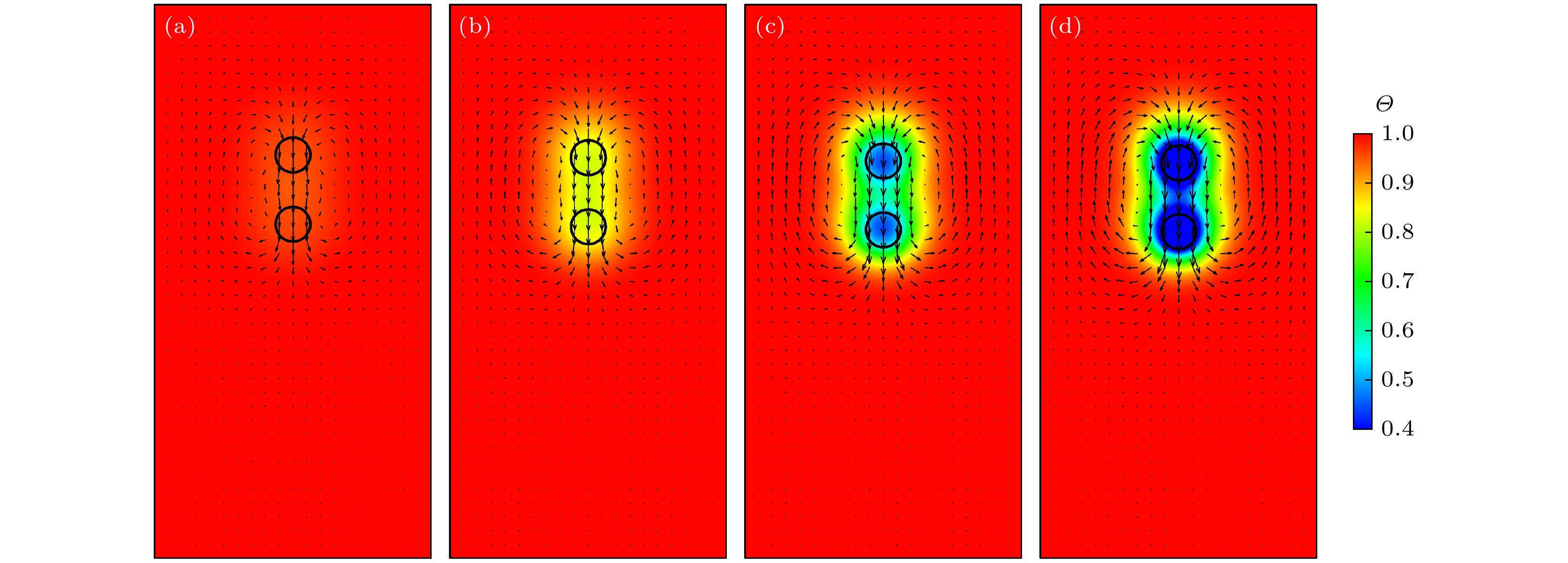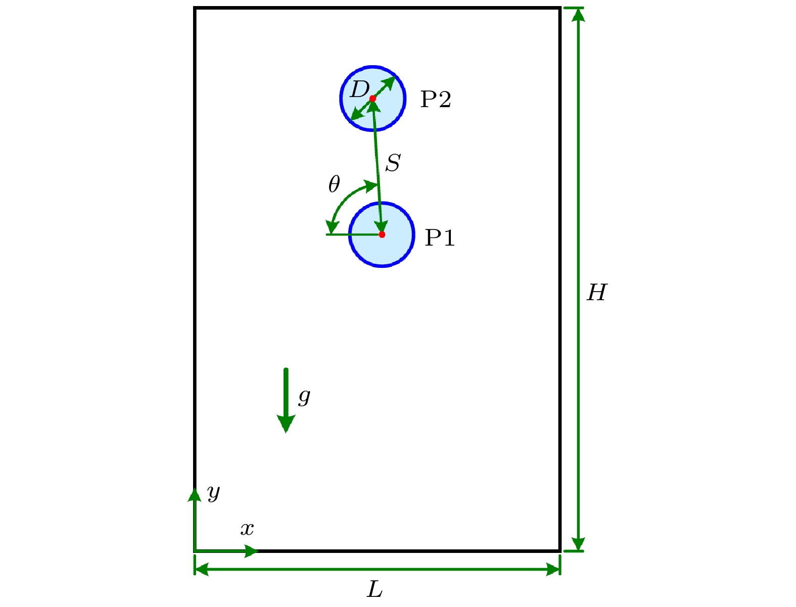 The conjugate heat transfer at the particle-fluid interface and the collision between particles play a crucial role in the sedimentation process of particles. In this work, the recent volumetric lattice Boltzmann method for thermal particulate flows with conjugate heat transfer is adopted to investigate the drafting-kissing-tumbling movement in the sedimentation process of two particles in a closed channel. This volumetric lattice Boltzmann method is based on double distribution functions, with the density distribution function used for the velocity field and the internal energy distribution function used for the temperature field. It is a single-domain approach, and the nonslip velocity condition within the solid domain can be strictly ensured. The difference in thermophysical properties between the solid and fluid can be correctly handled, and the conjugate heat transfer condition can be automatically achieved without any additional treatments. Based on this particle-resolved simulation, the influences of the solid-to-fluid specific heat ratio, the Grashof number, and the particle’s initial temperature on the drafting-kissing-tumbling movement are discussed in detail. It is found that the fluid cooled by the particle and thus subjected to the downward buoyancy force can promote particle sedimentation. As the specific heat ratio increases, the particle’s temperature rises relatively slowly. In the sedimentation of two cold particles, the drafting duration and tumbling duration of the drafting-kissing-tumbling movement decrease when the heat capacity ratio increases. In contrast, the kissing duration increases as the heat capacity ratio increases. When the Grashof number increases, the heat transfer between the particle and fluid is enhanced, and the drafting duration significantly decreases while the kissing duration and tumbling duration remain almost unchanged in the sedimentation of two cold particles. The particle’s initial temperature greatly affects the occurrence moment of the drafting-kissing-tumbling movement. To be specific, the drafting-kissing-tumbling movement occurs at the earliest moment for the sedimentation of two cold particles, followed by the sedimentation of one cold and one hot particle, and the latest for the sedimentation of two hot particles. The promoting effect of the low particle’s initial temperature on the drafting-kissing-tumbling movement mainly takes place in the dragging stage and kissing stage. The particle’s initial temperature has almost no influence on the tumbling duration.