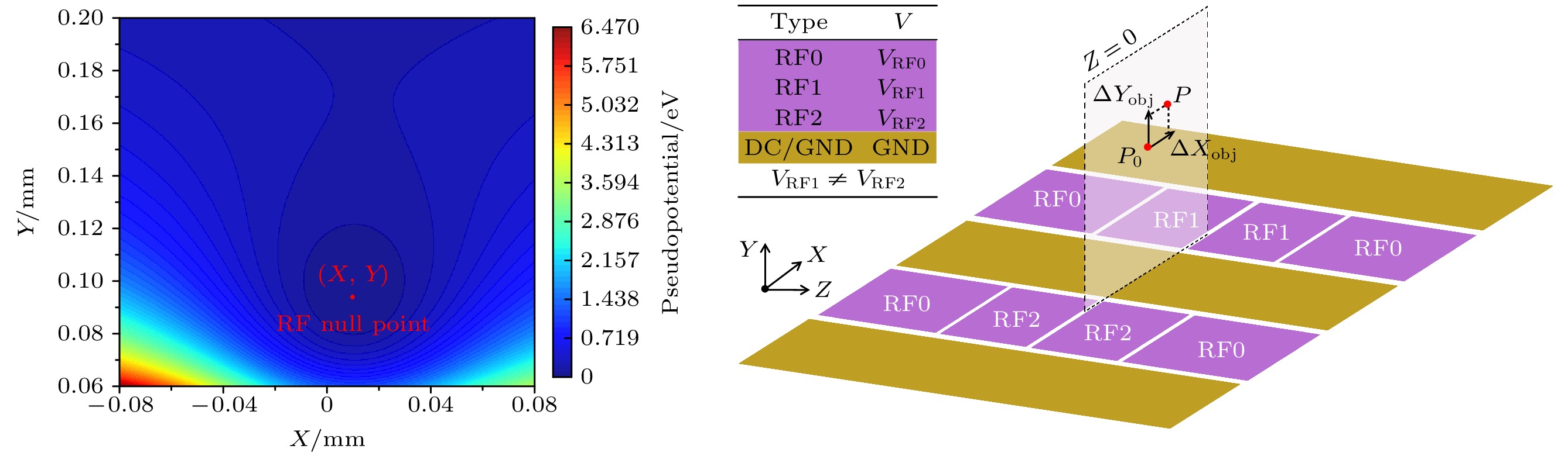 In an integrated ion trap with integrated optical modules, the problem of misalignment between the optical focus and the trapped ion saddle point is very likely to occur, which seriously hinders the practicality of the experimental method. To solve this problem, the multi-RF field method can be used to compensate for and move the ion saddle point position. However, in the actual experimental process, the application of the multi-RF method requires the knowledge of the amplitude of the RF voltage to be loaded corresponding to the actual spatial position of the saddle point. Therefore, a set of mathematical models is established to describe the relationship. The accuracy of the model determines the control accuracy of the spatial position of the saddle point, and the simplicity of the model determines the speed of the solution process. Therefore, in this work, a mathematical model of the relationship between the multi-RF electric field voltage and the saddle point position is proposed based on the numerically simulated electric field distribution and the polynomial fitting method. It can quickly and accurately give a mathematical description between the two without considering the physical mechanism or model. Numerical method is adopted to verify and discuss the correctness and scope of application of the model, and can quickly and accurately provide the amplitude of the RF voltage to be loaded in the experiment, causing the saddle point to move and coincide with the optical focus. This method greatly reduces the time delay caused by the solution and improves the feedback loop bandwidth during the movement of the saddle point position.