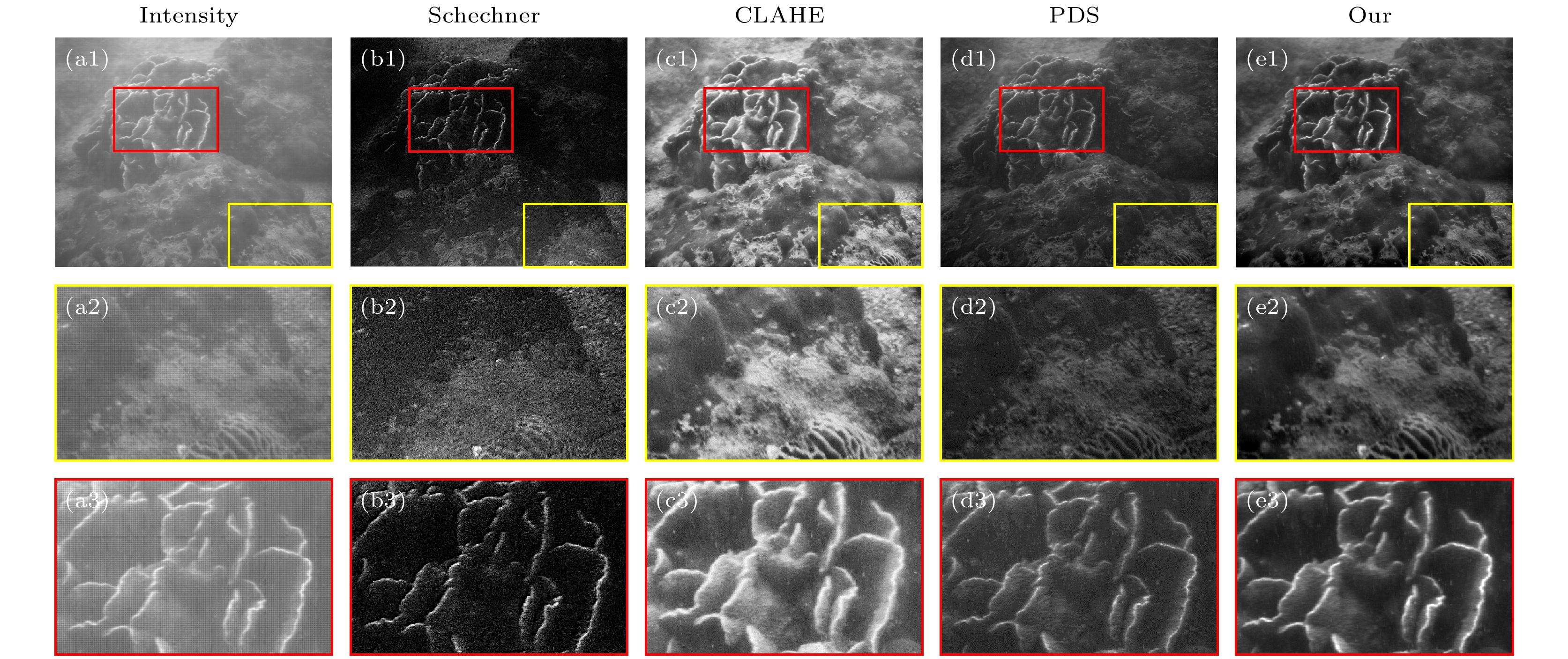 Underwater optical imaging technology possesses broad application prospects in fields such as marine resource exploration, underwater ecological environment monitoring, and seabed topography detection. The technology employs the polarization characteristics of light, particularly those of the background and target, to achieve a clear image. However, the traditional methods rely on target-free regions to compute the backscattered light information, which is infrequently present in the actual scene captured by the camera. Then the full-space resolution of target information light and backscattered light information are required. At this time, the traditional methods may be difficult to adapt in practical application. In this work, an underwater polarization de-scattering method independent of target-free regions is proposed by combining active polarization imaging and transmittance de-scattering model. Initially, the total light intensity within the camera’s field of view is decomposed into its polarized and unpolarized components. By removing the backscattered light with polarized and unpolarized information from the total light intensity, a clear underwater target can be obtained. Based on the active polarization imaging model, the backscattered light with polarization information is calculated, in which the polarization angle of the backscattered light is considered to be zero in the full-space. Thus, the polarization degree of the target information light occupying the camera’s entire field of view can be derived. According to the polarization correlation, the polarization degree of the backscattered light can be characterized, and the intensity of the backscattered light with polarization information in the camera’s entire field of view can also be obtained. Then the unpolarized component is calculated using the minimum intensity image with Stokes vector transformation. Finally, the underwater scene is obtained by combining the transmittance de-scattering principle and introducing adjustment parameters. Experimental and real-world underwater imaging results demonstrate that the proposed method can effectively remove the majority of the backscattered light and improve the image contrast and entropy, regardless of whether there are target-free regions. Additionally, this method possesses a certain rate advantage, which can facilitate the real-time complex underwater imaging technology.