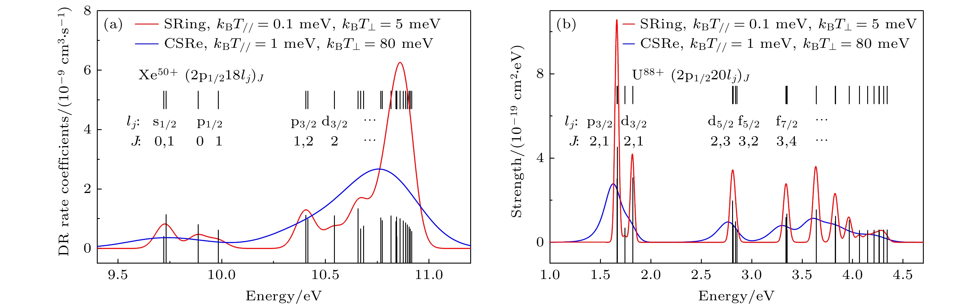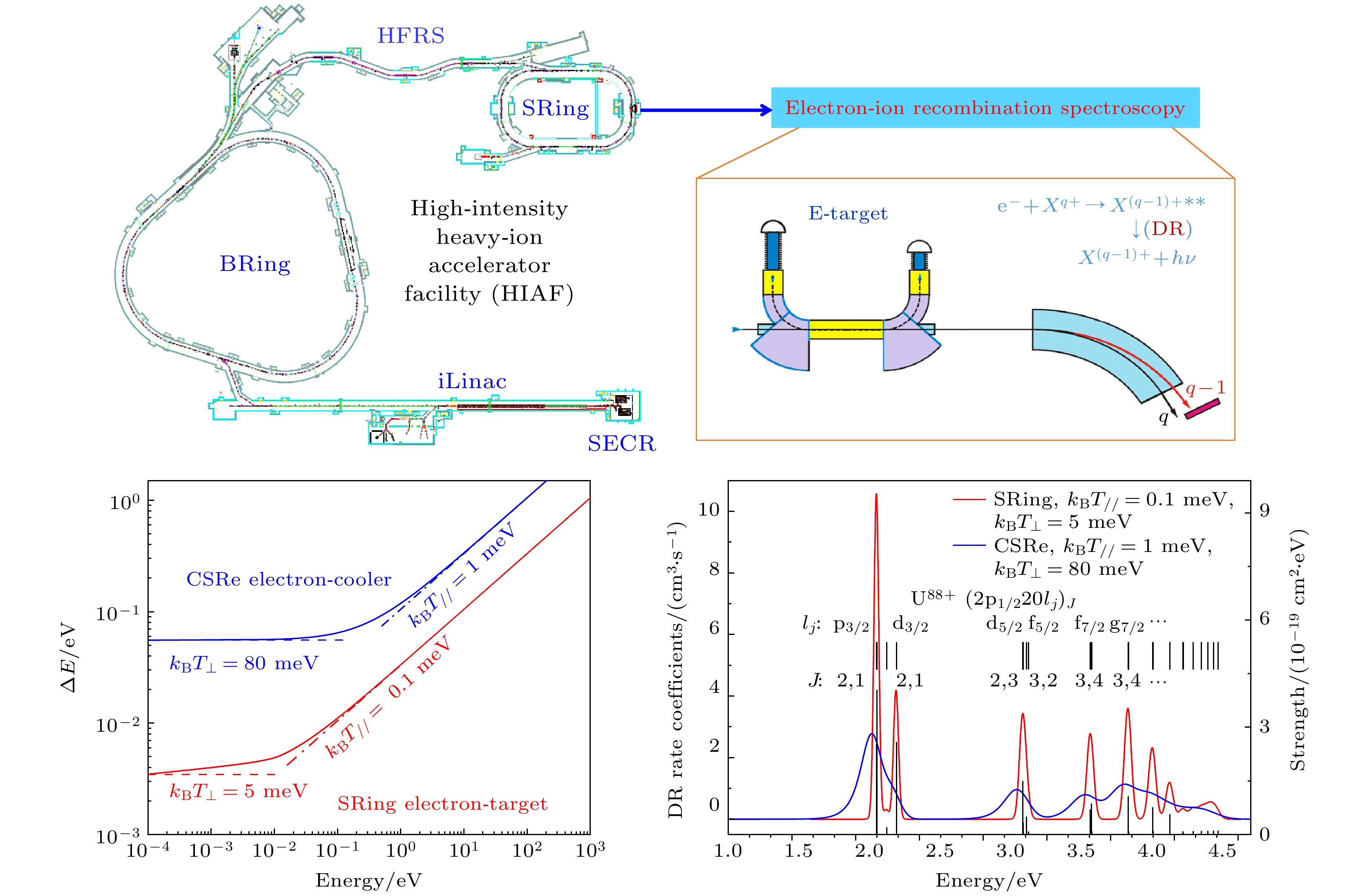 Dielectronic recombination (DR) experiments of highly charged ions not only provide essential atomic benchmark data for astrophysical and fusion plasma research but also serve as a stringent test for strong-field quantum electrodynamics (QED) effects, relativistic effects, and electron correlation effects. High-intensity heavy-ion accelerator facility (HIAF), currently under construction at Huizhou, China, will have a high-precision spectrometer ring (SRing) equipped with a 450 kV electron-cooler and an 80 kV ultracold electron-target. This advanced setup facilitates precise measurements of the DR process for highly charged ions in a broad range of center-of-mass energy, from meV to tens of keV. In this work, we carry out the molecular dynamics simulation of the electron beam temperature distribution of the ultracold electron-target at the SRing. The simulation results indicate that after treatment by the designed adiabatic magnetic field and acceleration field, the transverse and longitudinal electron beam temperature generated by the thermionic electron gun can be reduced from 100 meV to below 5 meV and 0.1 meV, respectively. Furthermore, we analyze the influence of this ultracold electron beam temperature on the resonance peak and energy resolution in DR experiment. The resolution gain at the SRing electron-target is particularly pronounced at small electron-ion collision energy, which provides unique experimental conditions for the DR experiments. Taking lithium-like\begin{document}$ {}_{~\,54}^{129}{{\mathrm{X}}{\mathrm{e}}}^{51+} $\end{document} and \begin{document}$ {}_{~\,92}^{238}{{\mathrm{U}}}^{89+} $\end{document} ions for example, we simulate the DR resonance spectra at the SRing and compare them with the simulated results from the experimental cooler storage ring CSRe. The results reveal that the SRing experiments can resolve fine DR resonance structures with ultra-high energy resolution compared with those from the CSRe. This work lays a solid foundation for precise DR spectroscopy of highly charged ions at the SRing to stringent test of strong field QED effect and extraction nuclear structure information.