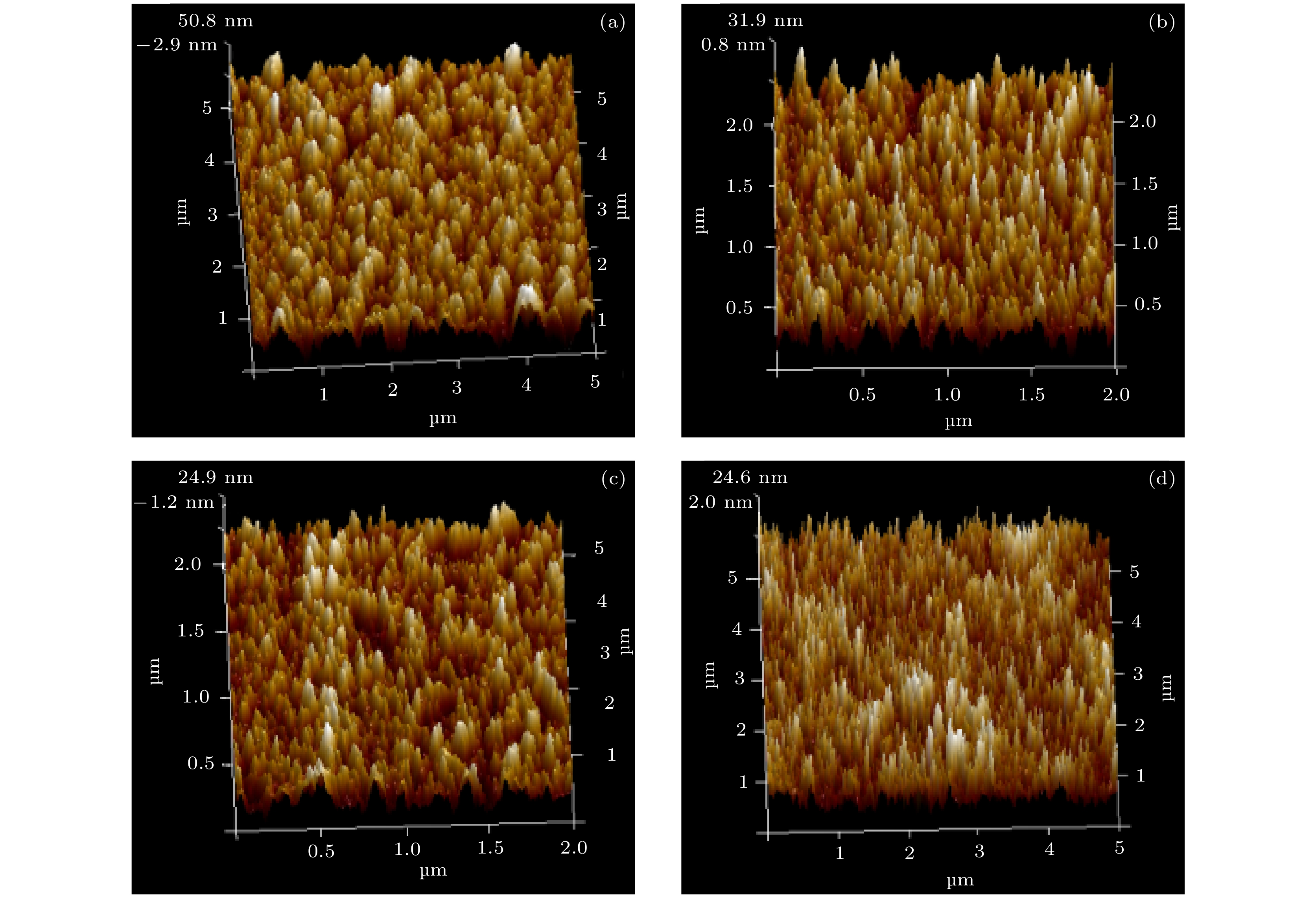 50.91film. In the experiments, with the optimal operating parameters (sputtering power of 150 W and sputtering pressure of 0.23 Pa), TiNi memory alloy film about 852.2 nm in thickness is grown on the fiber at a deposition rate of 0.118 nm/s, and surface root mean square roughness of the unannealed film is 15.1 nm. Annealing at temperatures of 500, 550 and 600 ℃ are respectively tried, and such a thermal treatment evidently refines the crystalline grains inside the film. Surface root mean square roughness of the film annealed at 600 ℃ is reduced to 6.32 nm.