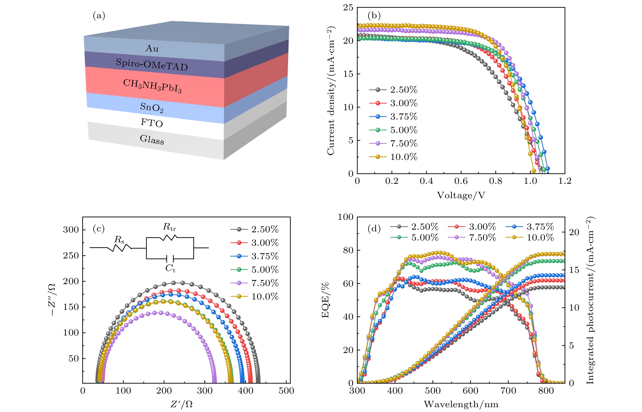 2layer with a concentration of 7.5% is uniform and pinhole-free, has the largest particle size and the best crystallinity, as well as more effective charge extraction capability and transport capability. By analyzing the electrochemical impedance (EIS) and external quantum efficiency (EQE) of the device, the SnO