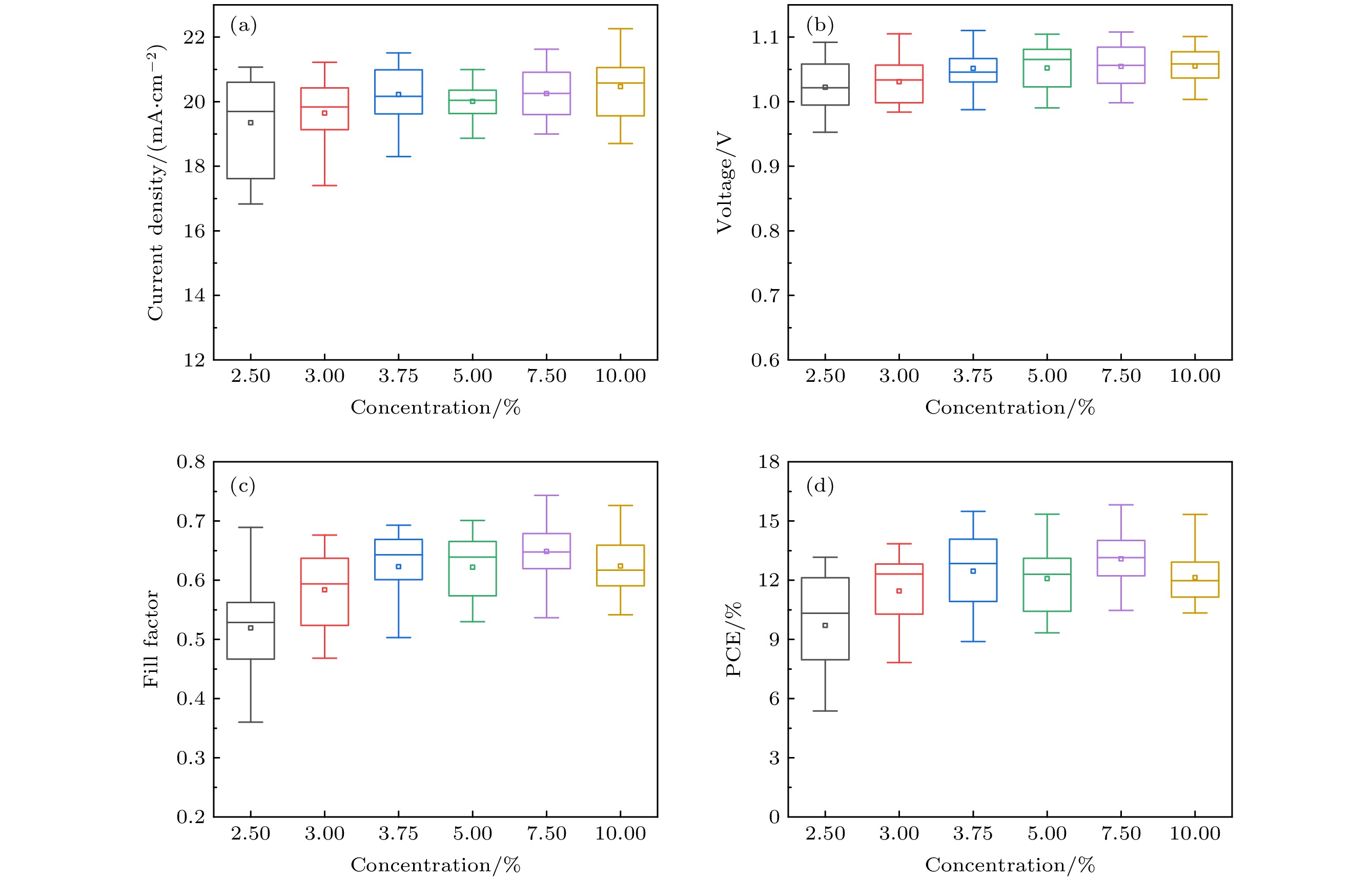2electron transport layers prepared at different concentrations (2.5%–10%) at 150 ℃, and the influences of SnO