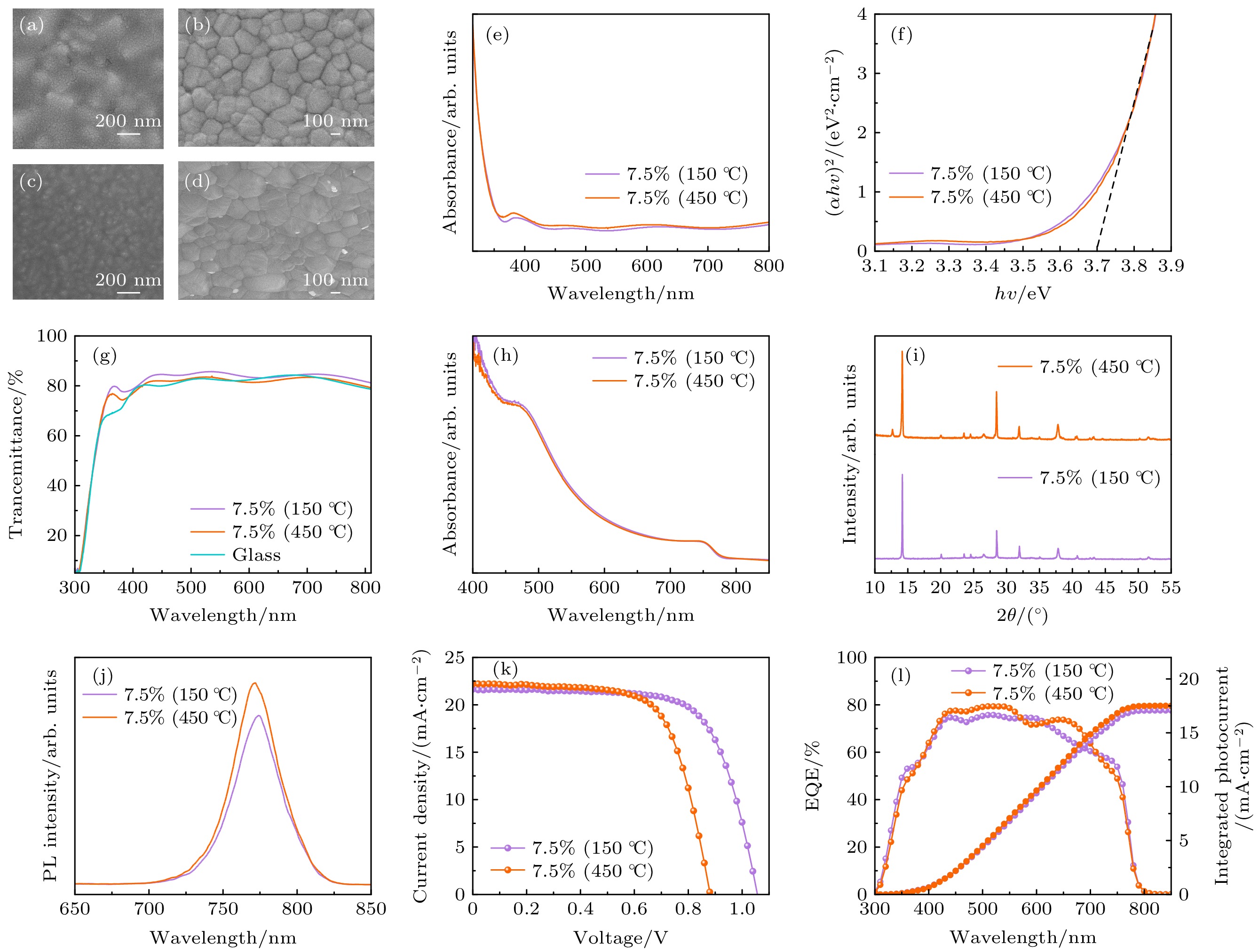 2electron transport layers on the formation of perovskite films and the performances of perovskite solar cells are discussed. By analyzing the scanning electron microscope (SEM), ultraviolet-visible light absorption spectrum (UV-Vis) and transmission spectrum of the SnO