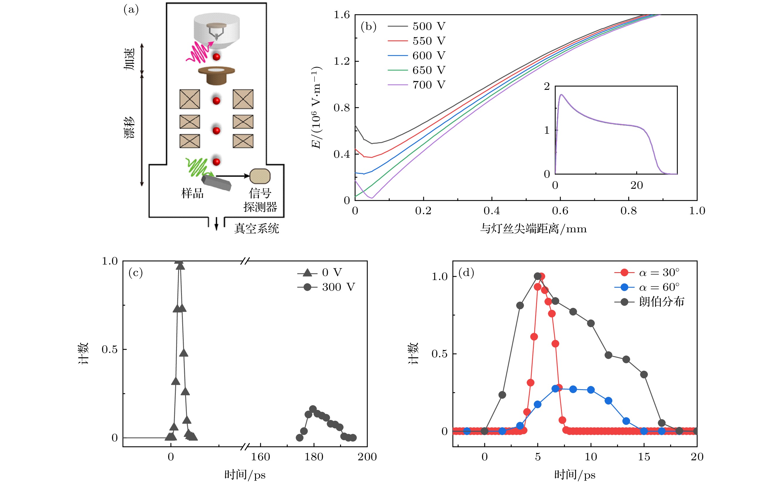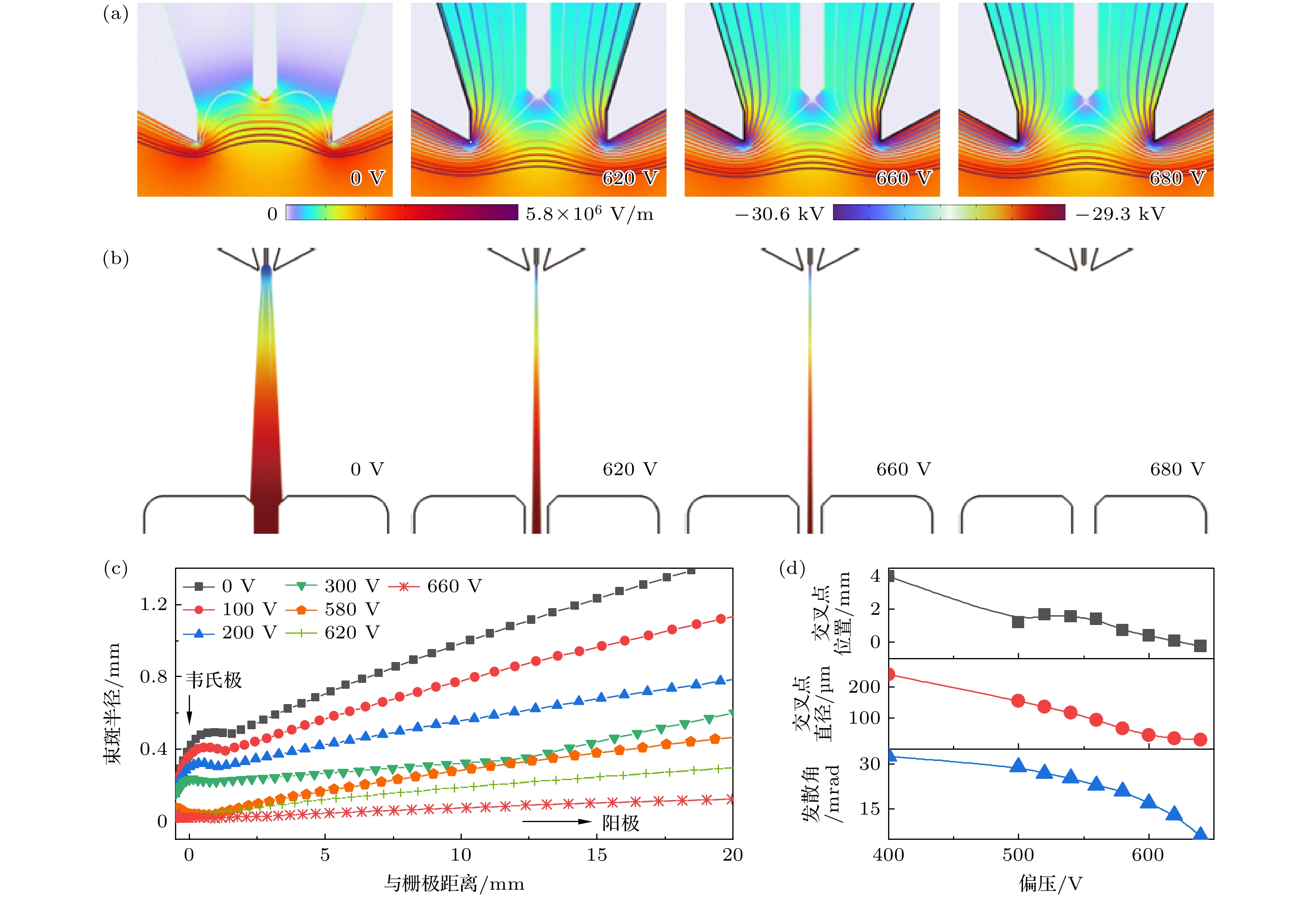 Ultrafast scanning electron microscope (USEM) integrates pump-probe technique with microscopic imaging, enabling the visualizing of photon-induced surface charge dynamics with high spatial and temporal resolution. This capability is crucial for high-resolution detection of semiconductor surface states and optoelectronic devices. This work discusses the parametric design of a thermionic emission electron gun that has been modified into a photoemission electron gun, based on a home-built ultrafast scanning electron microscope. Given that the dose of the photoemitting electron beam is usually much lower than that of thermionic emission, the transition to photoemission requires the removal of the self-bias voltage function of the original electron microscope power supply to ensure the normal operation of the Wehnelt electrode. We quantitatively analyze the dependence of bias voltage, cathode, Wehnelt electrode, and anode on the position, size and divergence angle of crossover, which helps to improve the parameter adjustment of the modified electron gun. The analysis results indicate that if the distance between the Wehnelt electrode and the anode is adjusted from 8 to 23 mm, the distance between the filament and wehnelt can be changes from 0.65 to 0.45 mm to cooperate with the bias adjustment, so that the normal use of high-resolution thermionic emission mode, low voltage mode and photoemission mode can be realized. Subsequently, the effect of the mirror’s position on the electron optical path is analyzed. It is found that when the anode is raised 1.4 mm above the mirror, the influence on the electron optical path can be ignored. Additionally, the zero-of-time and temporal broadening of the photo-electron pulse are further simulated. The results indicate that with the increase of bias voltage, the time zero of photoemission will be delayed and the temporal broadening will become larger. This study lays a foundation for the future development of ultrafast electron microscope and the design of photoemission electron sources.
