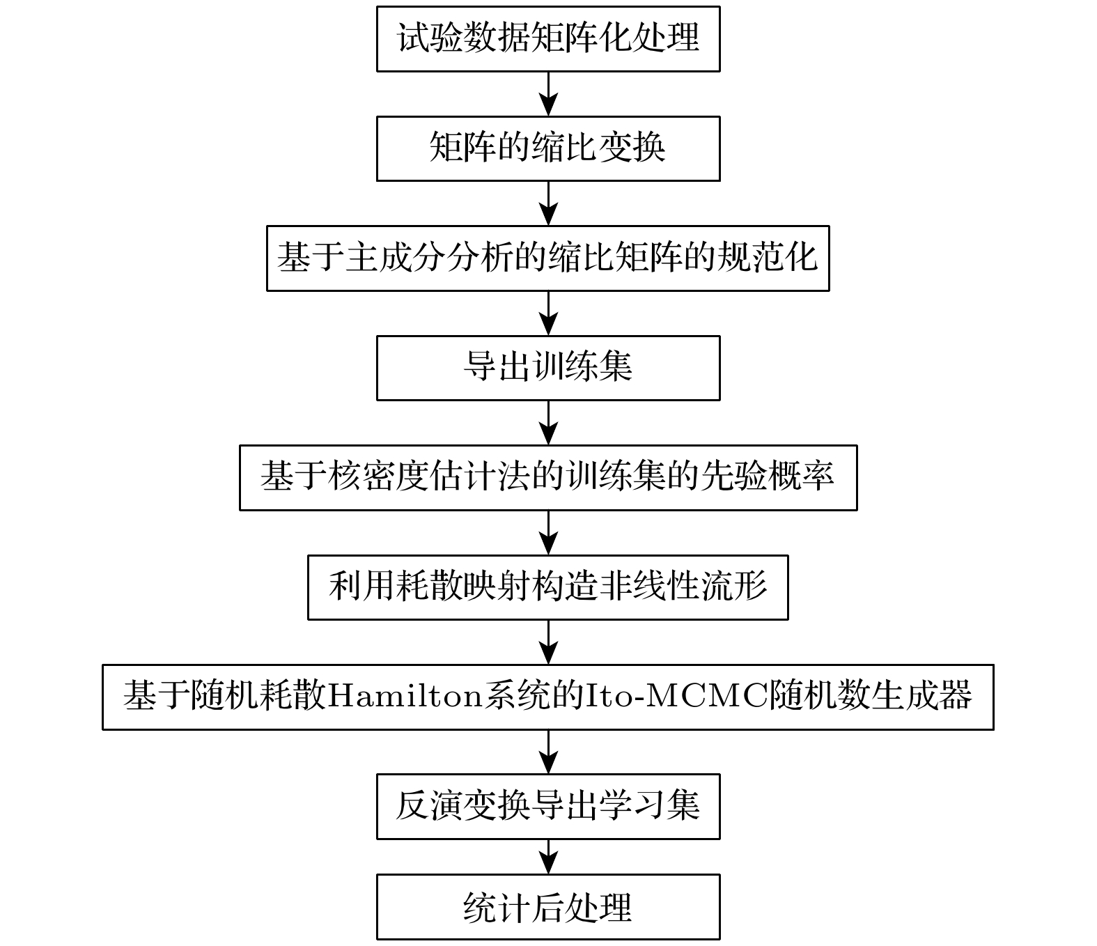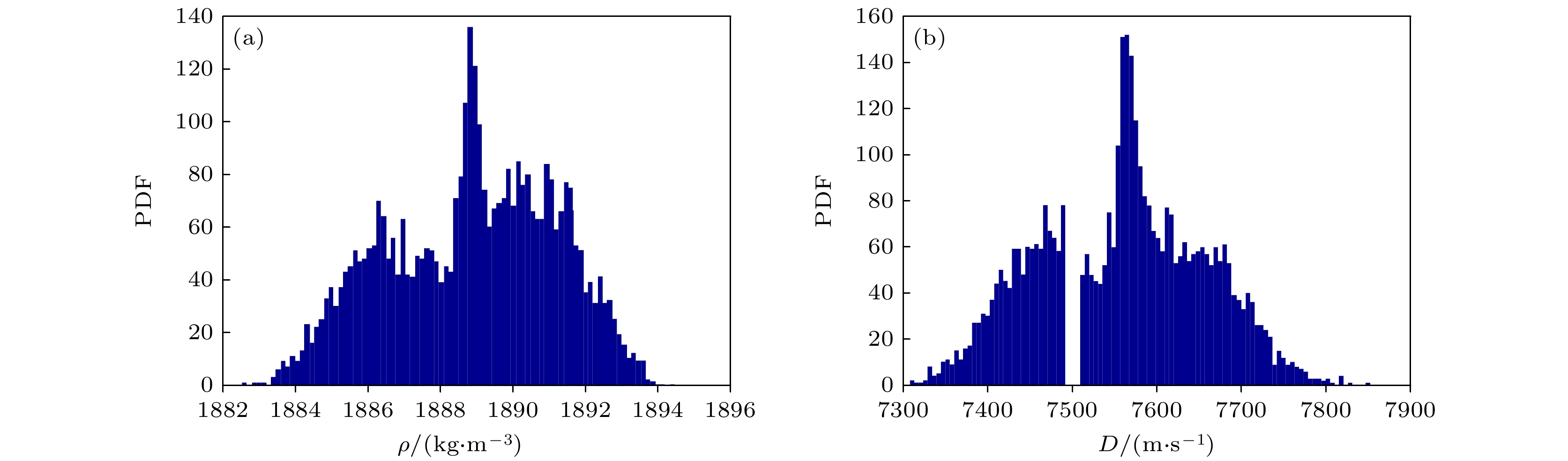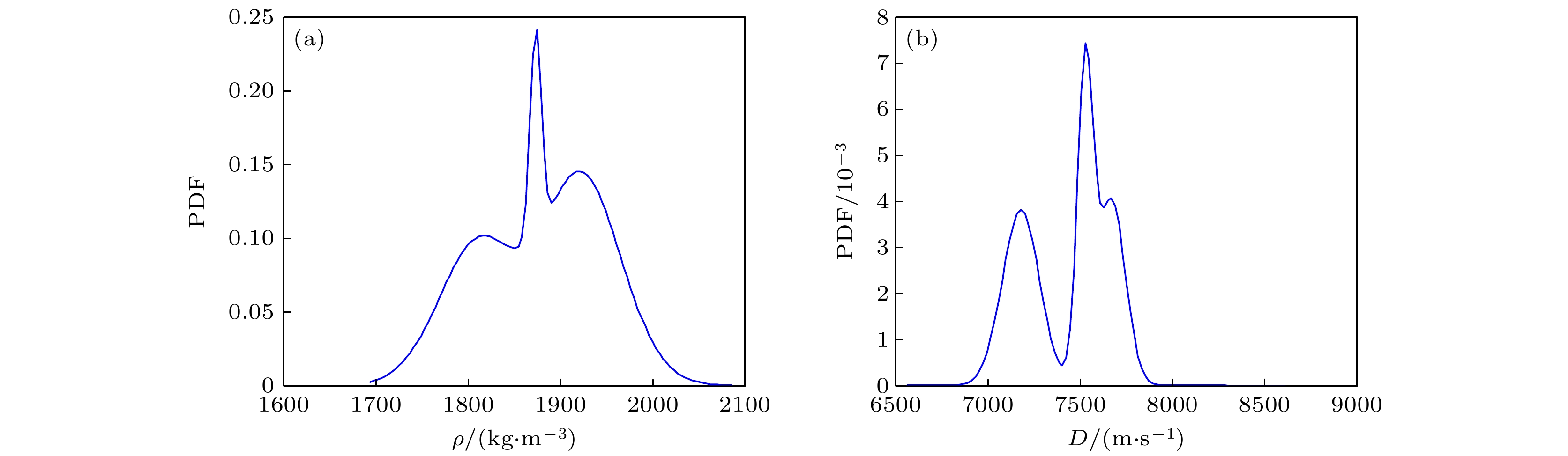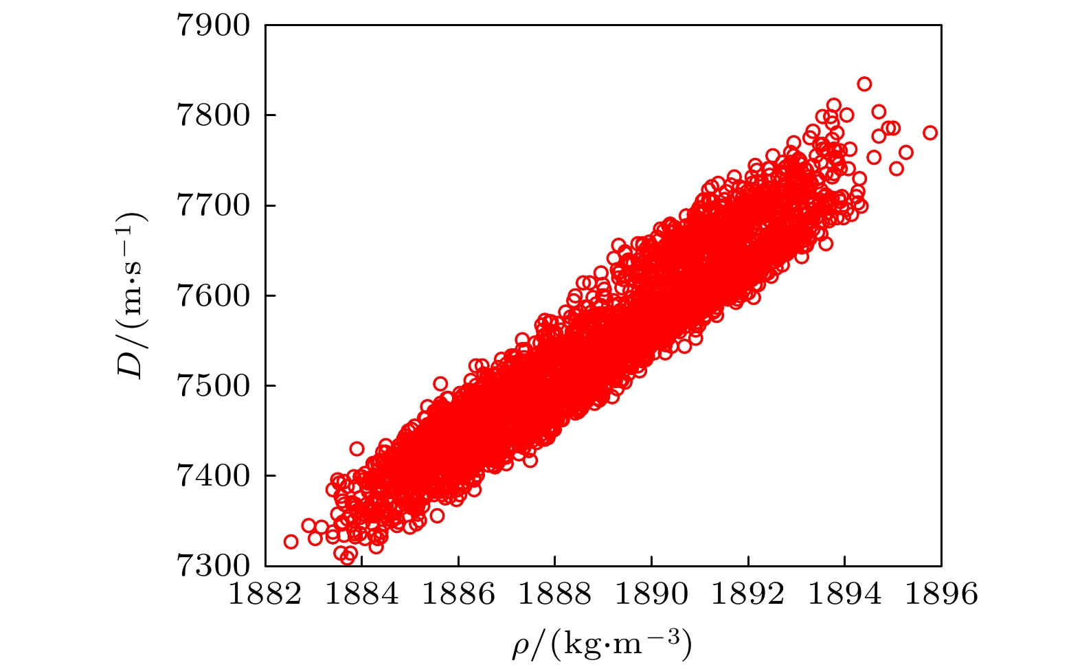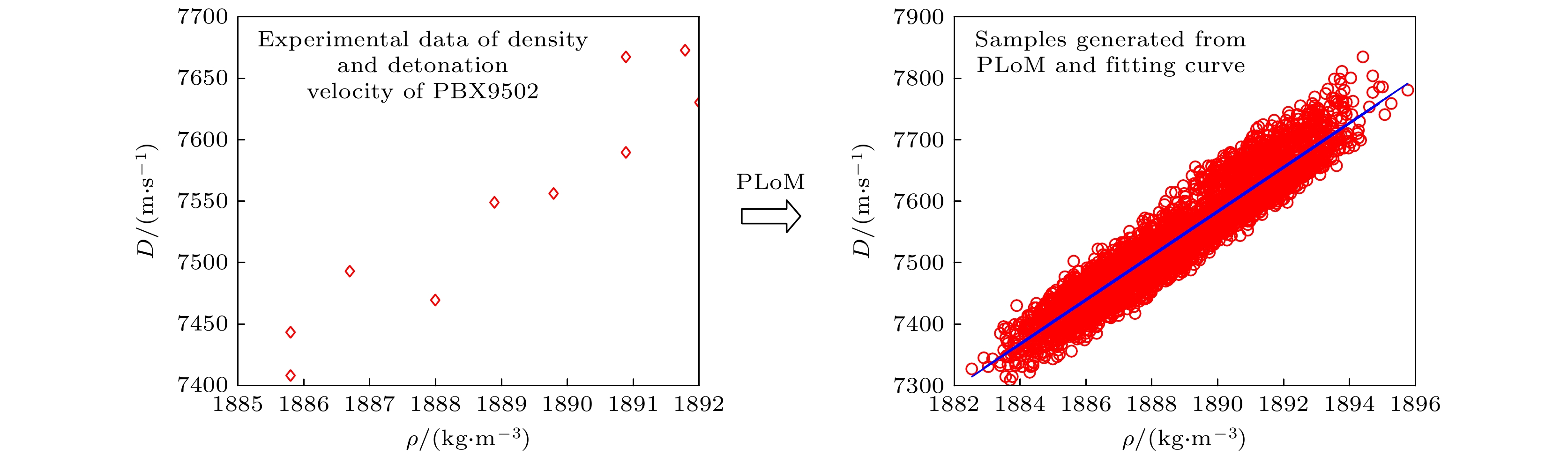 Detonation test is affected by small experimental datasets due to high risk of implementation and the huge cost of sample production and measurement. The major challenges of limited data consist in constructing the probability distribution of physical quantities and application of machine learning. Probability learning on manifold (PLoM) can generate a large number of implementations that are consistent with practical common knowledge, while preserving potential physical mechanism these generated samples. So PLoM is viewed as an efficient tool of tackling small samples. To begin with, experimental data are assumed to be concentrated on an unknown subset of Euclidean space and can be treated as the sampling of random vector to be determined. Meanwhile, experimental problem is solved in the framework of matrix and the scaling transformation is conducted on the datasets of PBX9502 with multi-physics attributes. Then the principal component analysis is utilized to normalize the scaling matrix, and the normalization matrix is labeled as training sets. Moreover, the altered multi-dimensional Gaussian kernel density estimation is utilized for estimating the probability distribution of training set. Furthermore, diffusion map is used to discover and characterize the geometry and structure of dataset. In other words, nonlinear manifold based on the training set is constructed through diffusion map. Specifically, the first eigenvalue and corresponding eigenvector is related to the construction of diffusion basis and diffusion maps. Further, Itô-MCMC sampler is associated with dissipative Hamilton system driven by Wiener process, for which the initial condition is set to be training set, and prior probability is conceived as invariant measure. Störmer-Verlet scheme is used for solving the stochastic dissipative Hamilton equations. Finally, additional realizations of learning dataset are fulfilled through the inversion transformation. The result shows that random number generated from PLoM satisfies the requirements of industrial and high fidelity simulation. The 95% confidence interval of density is included in the range calibrated by Los Alamos National Laboratory. And the value of detonation velocity calibrated by Prof. Chengwei Sun [) p224] also falls into 95% confidence interval of detonation velocity generated by PLoM. It is also deduced from the learning set that density and detonation velocity satisfies the affine transformation. Furthermore, detonation pressure has nonlinear relationship with density. Tiny variation of density can lead to magnificent fluctuation of detonation pressure and detonation velocity. Detonation pressure has the largest discreetness in all the physical quantities through the comparison of variation coefficients of learning set, which coincides with the existing research results. The method used is universal enough and can be extended to other detonation systems.