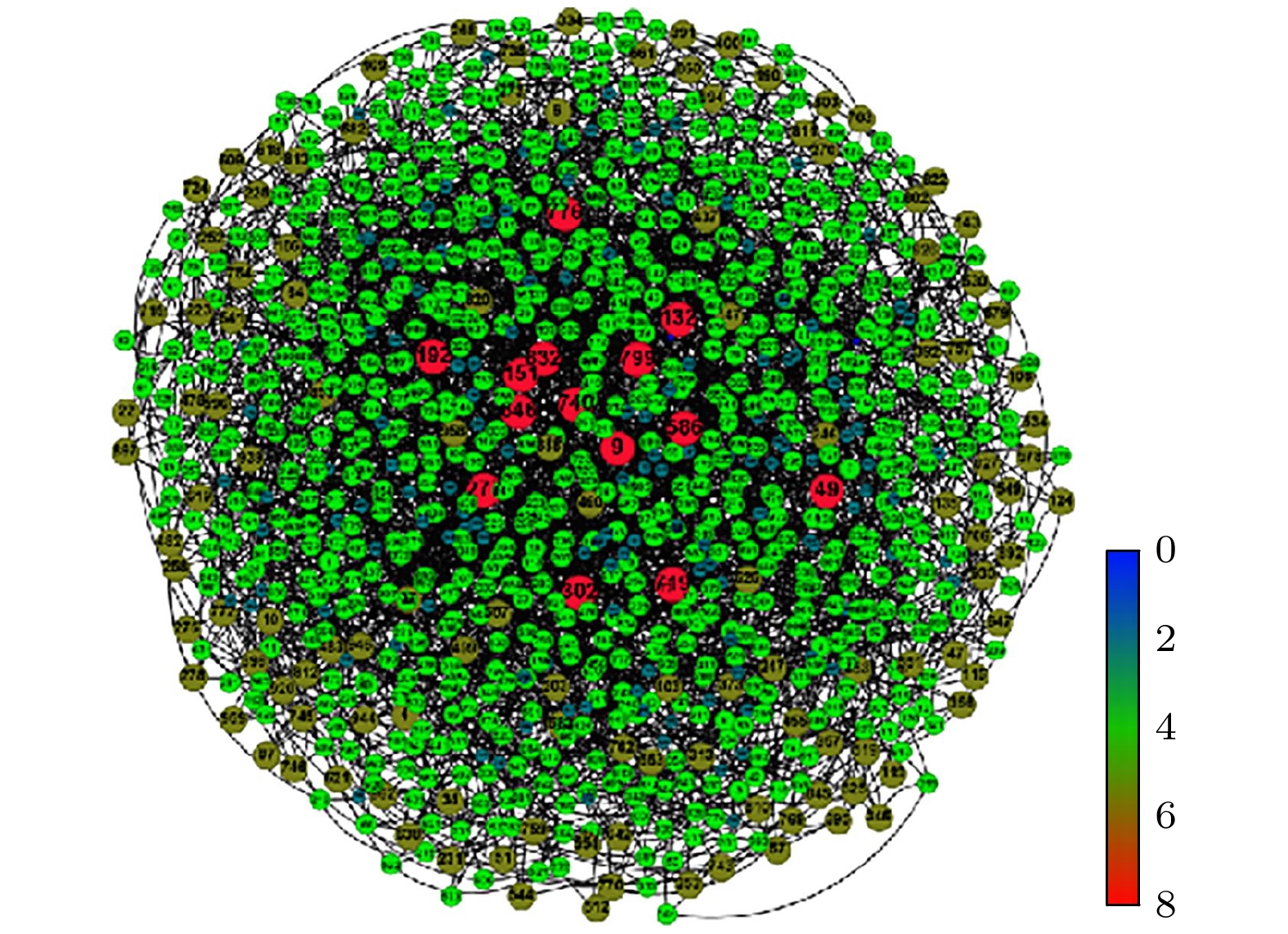 算法161 161 22 161 161 161 161 122 87 29 122 122 87 87 83 6 82 83 83 83 6 108 83 115 108 108 63 83 87 122 129 63 63 14 122 63 108 130 87 250 6 378 435 14 161 435 435 122 14 14 378 170 250 184 108 108 167 63 213 184 130 65 334 184 65 250 167 167 534 435 6 212 304 130 129 302 63 65 534 372 65 87 167 167 受控节点组规模k 度中心性算法 介数中心性算法 K-Shell算法 NPE算法 AGM算法 HVGC算法 MFG算法 1 0.0137 0.0137 0.0061 0.0056 0.0137 0.0137 0.0137 2 0.1507 0.1507 0.0061 0.0209 0.1507 0.1507 0.1507 3 0.2262 0.2262 0.0061 0.0286 0.2262 0.2262 0.2262 4 0.2263 0.2262 0.0061 0..0341 0.3674 0.5315 0.5789 5 0.2263 0.5789 0.0061 0.0399 0.5899 0.6987 0.7033 6 0.2263 0.7028 0.0061 0.0481 0.7675 0.7543 0.8032 7 0.2263 0.7035 0.0061 0.0540 0.8236 0.9275 1.0000 8 0.2263 0.7288 0.0061 0.0661 1.0000 1.0000 1.0000 9 0.2263 1.0000 0.0061 0.0665 1.0000 1.0000 1.0000 10 0.2263 1.0000 0.0061 0.0666 1.0000 1.0000 1.0000 11 0.2263 1.0000 0.0061 0.0667 1.0000 1.0000 1.0000 12 0.2263 1.0000 0.0062 1.0000 1.0000 1.0000 1.0000 -