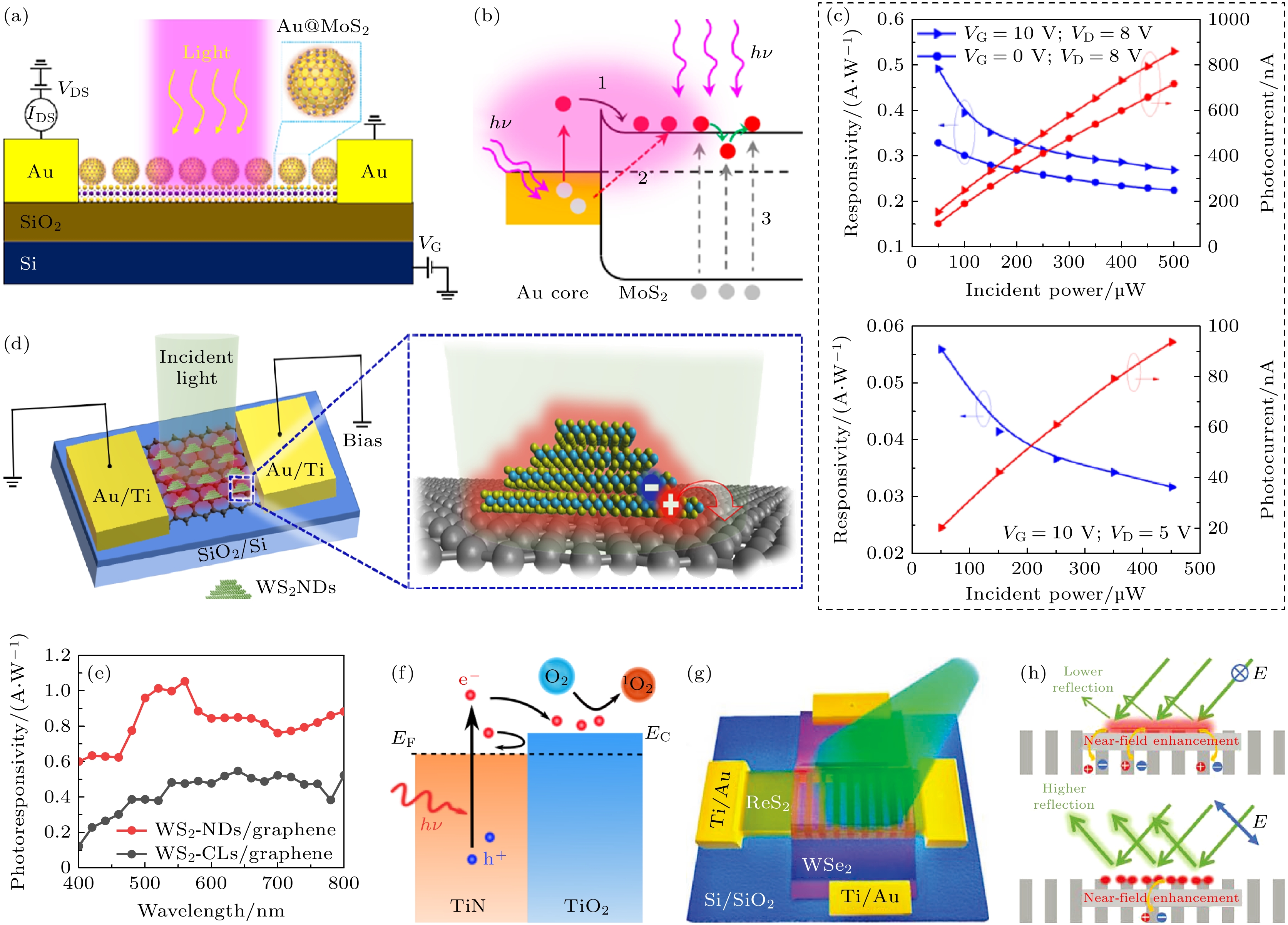 下降: 222 ns1.88 近红外波段 [68] 周期性光栅 ReS2/WSe2 Mie scattering 27.3 — 3.7 ms 12.6 405—532 nm [59] 石墨烯 SPPs 2.95 0.28×107 上升: 39 ms