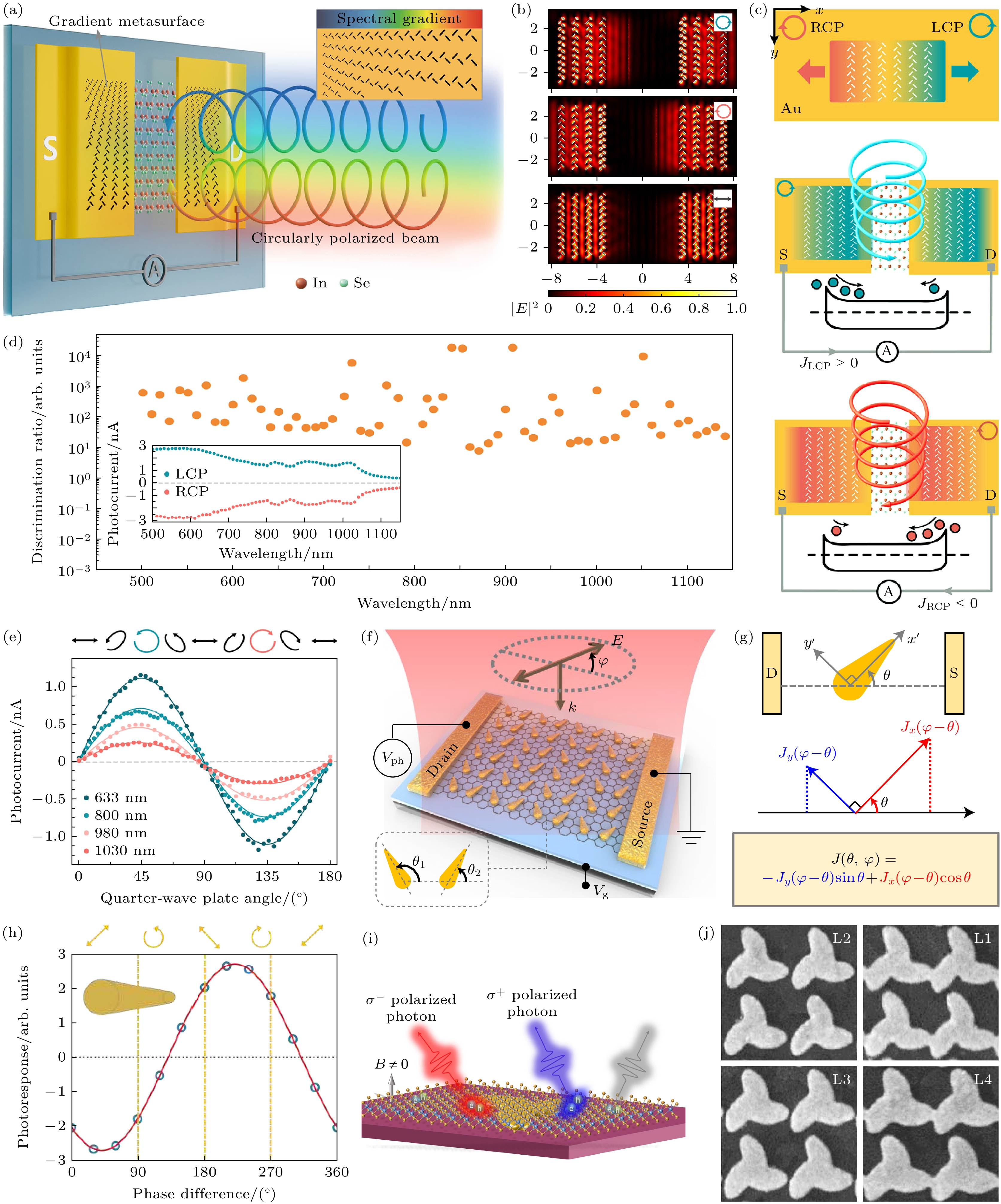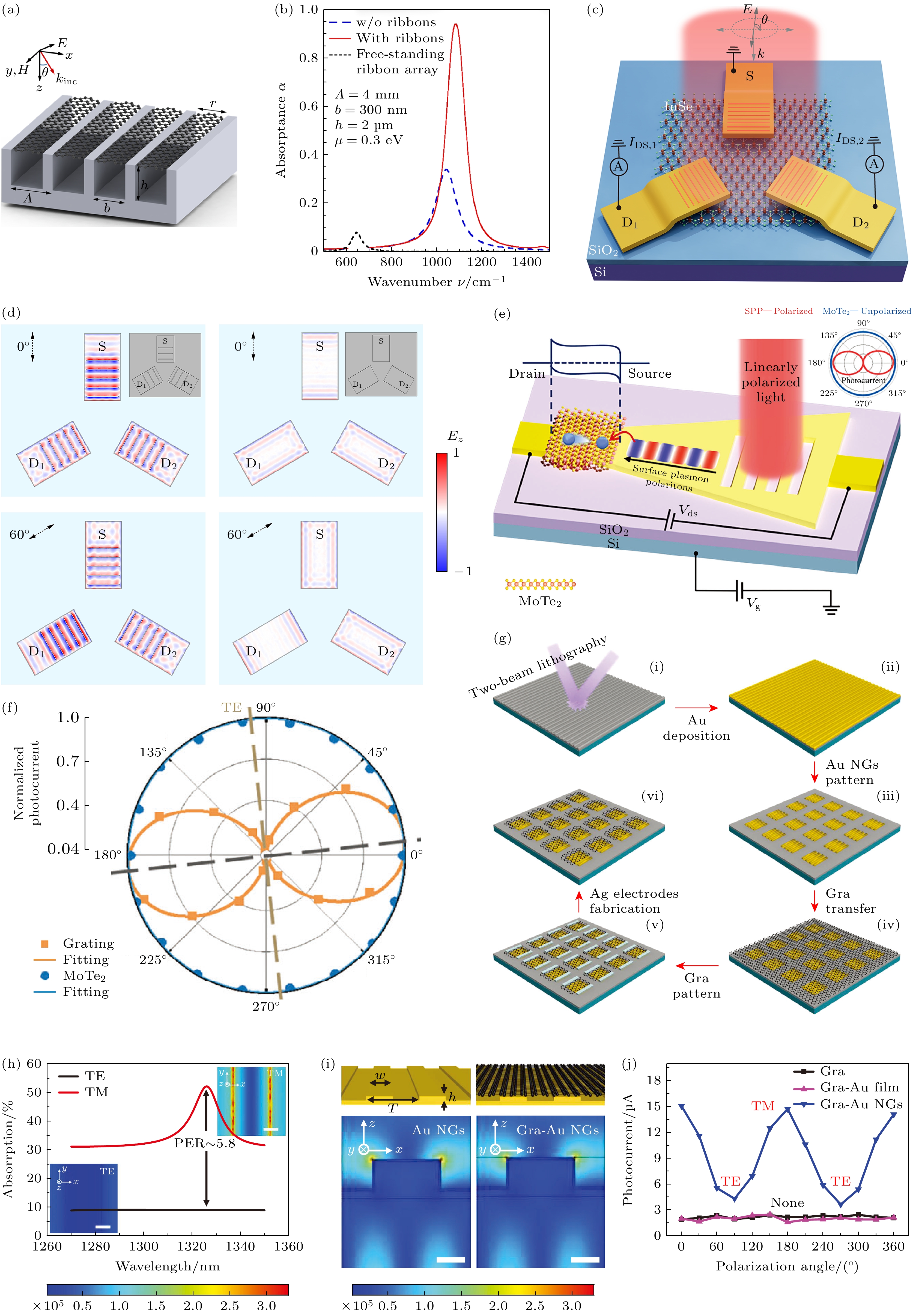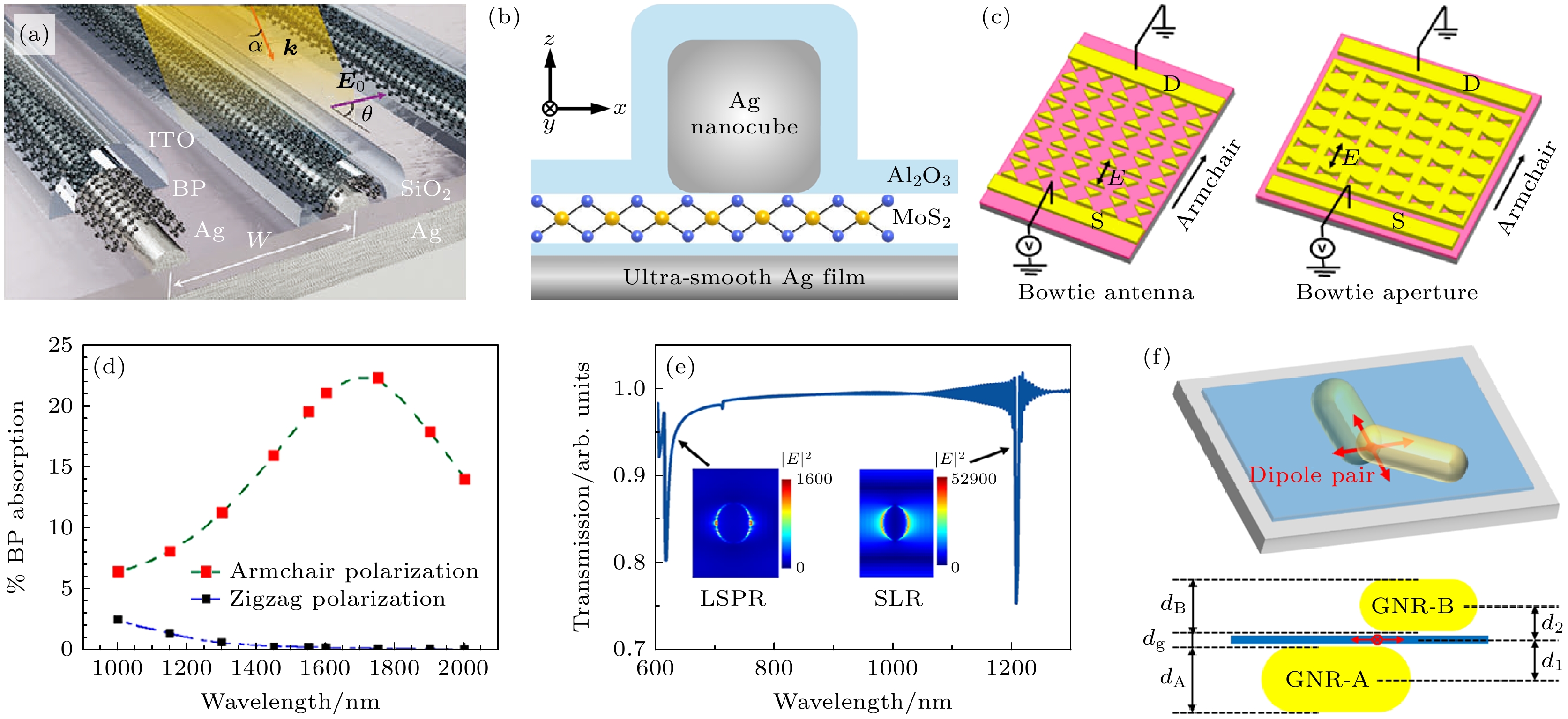 等离激元结构 二维材料 增强机制 响应度/(A·W–1) 探测率D*/Jones 响应时间 偏振比 响应光谱范围 文献 各向异性纳米结构 BP LSPR 802.42 — 6.36 ps 118.4 615—740 nm