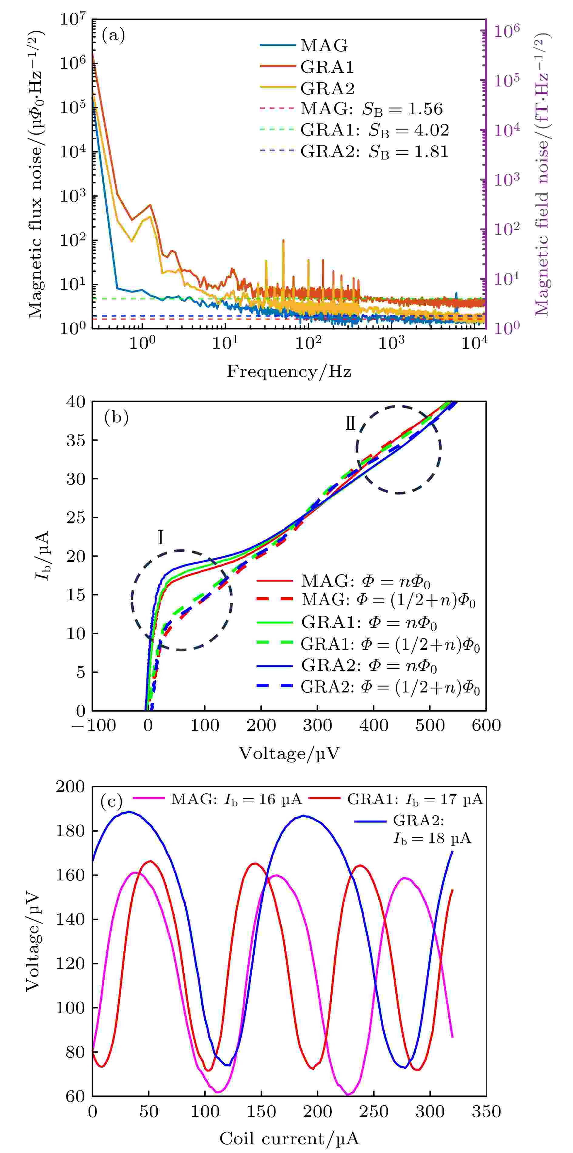 Superconducting quantum interference device (SQUID) is one of the most sensitive flux sensors and is critical in fields such as biomagnetism, low-field nuclear magnetic resonance (NMR), and geophysics. In this paper, an integrated magnetoencephalography (MEG) SQUID chip is investigated in detail, which consists of a magnetometer and two gradiometers. The SQUID and pick-up coils are fabricated on different-sized wafers. The SQUID is fabricated on a commercial silicon substrate using micro- and nano-fabrication processes, including thin-film growth, i-line stepper photolithography, and reactive ion etching (RIE). The sub-micron Josephson junction technology is employed to achieve a junction size of 0.7 μm×0.7 μm with a junction capacitance of only 0.05 pF. The pick-up coil is designed as a single-turn coil for a magnetometer and a planar first-order gradient coil for a gradient sensor. The MEG SQUID chips are tested in a well-shielded chamber with the helium-liquid temperature (4.2 K). Customized low-voltage noise readout circuit and source measure units are used to characterize the magnetic field white noise, current-voltage (I-V) characteristics, and voltage modulation amplitude of 171 SQUID channels. The results show that 81% of the SQUID chips exhibit the lower magnetic field noise (< 5 $ {\text{fT/}}\sqrt {{\text{HZ}}} $), and the high modulation amplitudes (in a range of 80–120 μV) with the low working currents of 15–20 μA, yielding a wafer yield rate of 78%. In summary, the SQUIDs show excellent performance in terms of magnetic field white noises, modulation amplitudes, and working currents, which are suitable for the very weak magnetic signal detection. One of future studies will focus on optimizing the SQUID chip fabrication process to minimize performance variations between chips on the same wafer.