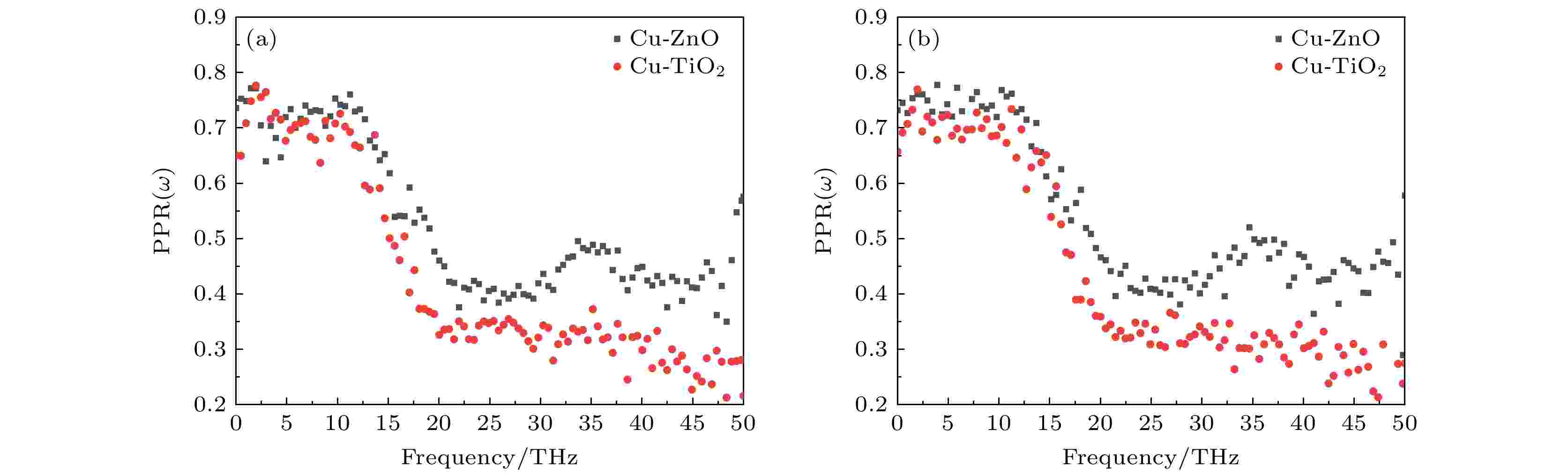 Plasmonic solar water splitting is produced on the composite electrode with plasmonic metal nanoparticles loaded on semiconductor, where the localized heating generated by relaxation of the metal’s localized surface plasmon resonance (LSPR) under light excitation enhances hydrogen production efficiency. To optimize composite photoanodes for photoelectrochemical water splitting system, the non-equilibrium molecular dynamics simulations are conducted to obtain the interfacial thermal conductivity between plasmonic metals (Cu, Ag, Au) and semiconductors (TiO2, ZnO, MoS2) at varying temperatures. The relationship between interfacial thermal conductivity and phonons at different frequencies is investigated via vibrational density of states which is calculated from the velocity autocorrelation functions and subsequent phonon participation ratio. The results indicate that as he temperature increases, the interfacial thermal conductivity of all composite electrode configurations is enhanced. When Cu and Ag are combined with TiO2 into Cu-TiO2 and Ag-TiO2, respectively, the thermal transport performances of Cu-TiO2 and Ag-TiO2 are superior to Au-TiO2, and the interfacial thermal conductivity of Cu-TiO2 reaches 973.56 MW·m–2·K–1 at 800 K. With Au as the fixed plasmonic component, Au-ZnO shows that its interfacial thermal conductivity reaches 324.44 MW·m–2·K–1 at 800 K, which is higher than those of Au-MoS2 and Au-TiO2. Based on the obtained interfacial thermal conductivity of different composite photoanodes, it is predicted that Cu-ZnO is the optimal composite, but its interfacial thermal conductivity is 547.69 MW·m–2·K–1 at 800 K, second only to Cu-TiO2. The analysis of vibrational density of states and phonon participation ratio shows that the low-frequency region (0—10 THz) is the main region for thermal transport, and both interfaces exhibit a high phonon participation ratio range of 0.7—0.8. However, the Cu-TiO2 possesses much higher vibrational density of states than Cu-ZnO within this critical band. Although Cu-ZnO exhibits a higher phonon participation ratio range in the high-frequency range, its lower overall interfacial thermal conductivity is attributed to the minimal contribution of high-frequency phonons to interfacial thermal conductance. The findings provide optimization strategies based on interfacial thermal transport mechanisms for constructing efficient photoanodes for solar water splitting.