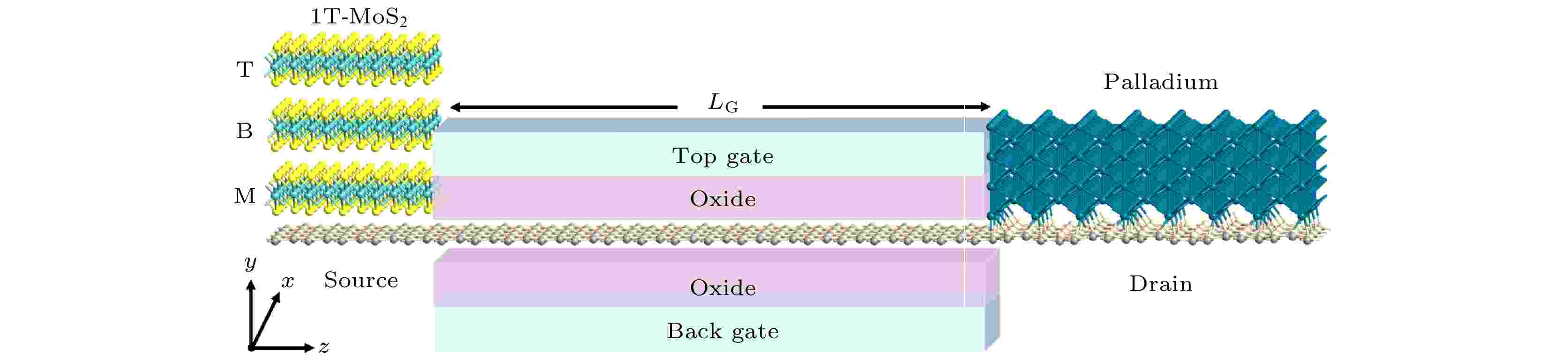 By using the first-principles method based on density functional theory and non-equilibrium Green’s function, the transport properties of 5-nm two-dimensional SiC field-effect transistors with asymmetric metal phase 1T-MoS2 sources and Pd drain electrodes are investigated. The influence mechanism of increasing the electrode layers of 1T-MoS2 and reducing the working electrical compression on the device performance is systematically analyzed. The Schottky barriers extracted from the zero bias and zero gate voltage transport spectra show that the valence band maximum of SiC in the channel regions of MFET, BFET and TFET are closer to the Fermi level after the source drain electrode has been balanced. Therefore, these three devices belong to P-type contact, and the height of the hole Schottky barrier increases with the increase of the number of 1T-MoS2 layers in the source electrode, which are 0.6, 0.76, and 0.88 eV, respectively. In addition, the increase of 1T-MoS2 layers will also lead to the increase of the density of states in the source electrode, thereby improving the transport coefficient at the band edge. The effects of the two on the transport capacity of the device are opposite, and there is a competitive relationship. The transfer characteristics of devices show that the wide band gap of SiC can significantly suppress the short channel effect, so that all devices can meet the requirements of Off-state. More importantly, the subthreshold swings of all devices at an operating voltage of 0.64 V are all close to the physical limit of 60 mV/dec. The ON-state currents of MFET, BFET and TFET can reach 1553, 1601 and 1702 μA/μm under the more stringent IRDS HP standard, and the three performance parameters, i.e. intrinsic gate capacitance, power-delay product and delay time, can greatly exceed the standards in the international road map of equipment and systems (IRDS) for high-performance devices. In addition, the working voltage of MFET can be reduced to 0.52 V, and the corresponding power-delay product and delay time are as low as 0.086 fJ/μm and 0.038 ps, which are only 14% and 4% of the IRDS standard. The asymmetric source drain electrode design strategy proposed in this work not only solves the problems about low On-state current and short channel effect restricting Off-state current of existing two-dimensional material field-effect transistors, but also provides an important solution for developing ultra-low power nano electronic devices in the post Moore era.